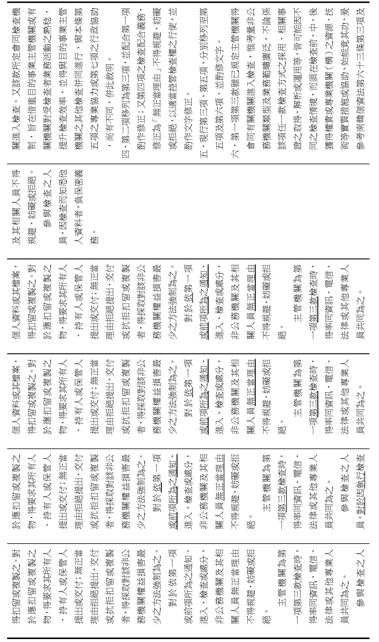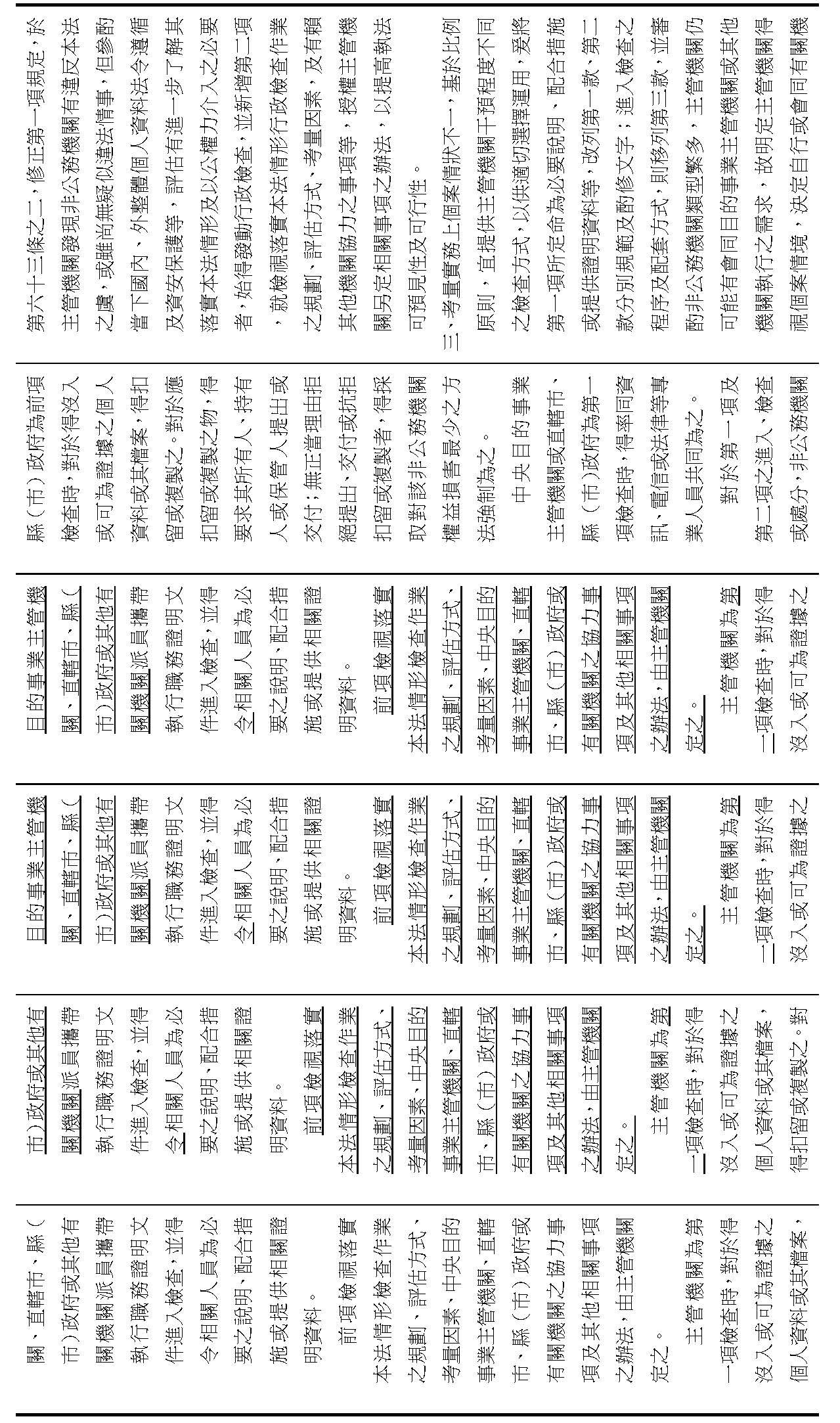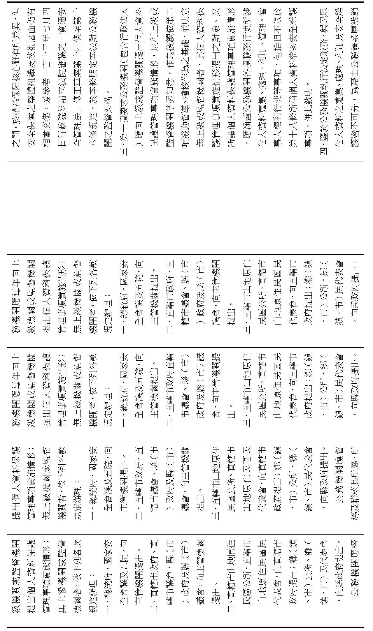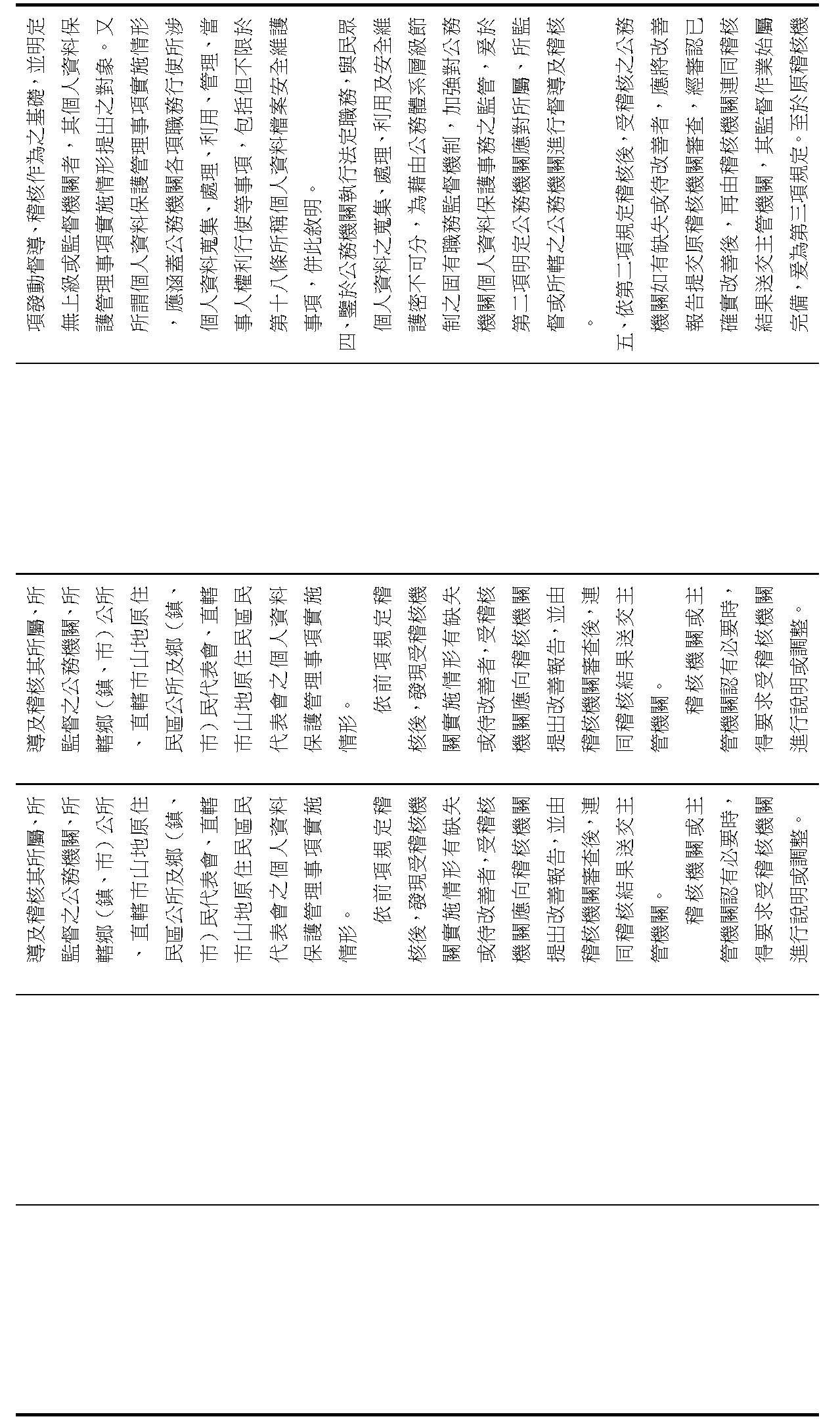 (五)增訂情報機關以外公務機關個人資料保護事務之行政監督規定,包括主管機關得應每兩年定期或不定期稽核公務機關之個人資料保護管理事項實施情形,以及稽核之結果,應每年定期主動公開,另個人資料保護管理事項實施情形之提出、稽核、缺失改善、實地檢查、違法改正及公布違法情節、機關名稱,等權限。(修正條文第二十一條之一至第二十一條之五)