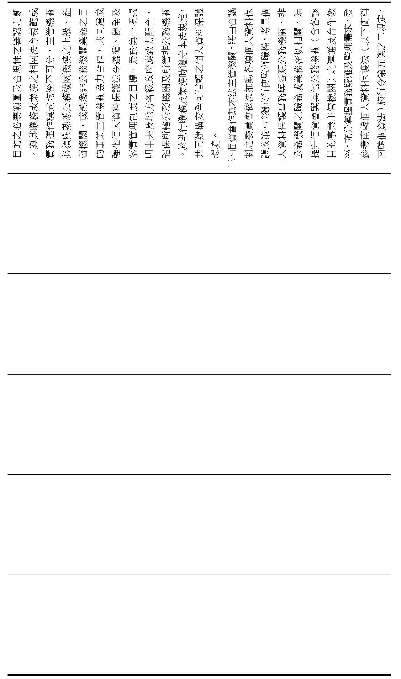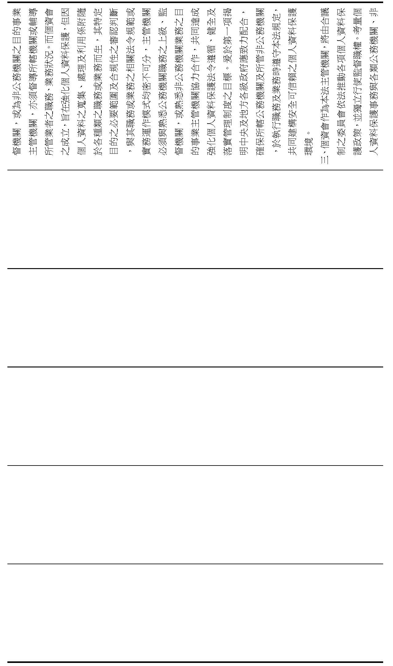 此外,個資會亦將訂定共通版之個人資料保護管理辦法供非公務機關及其目的事業主管機關有所依循,召開「個人資料保護政策推進會議」,與各該目的事業主管機關建立協調聯繫平台,並在過渡期間受理訴願案件,對目的事業主管機關之行政處分進行適法性及妥適性之審查,構築實質有效之獨立監督機制,以符合前開憲法法庭判決意旨。