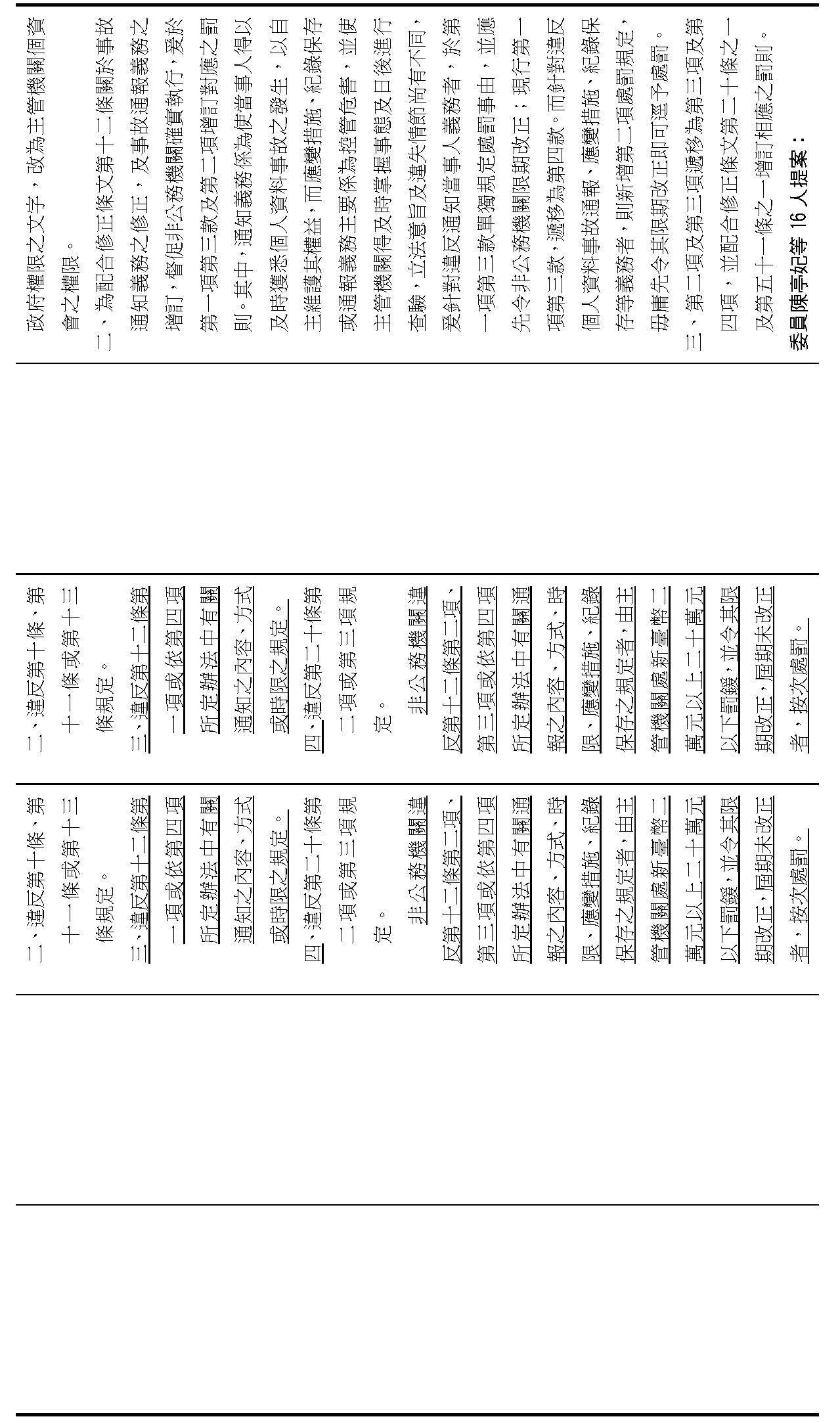 九、委員陳亭妃等16人擬具「個人資料保護法第十二條、第二十七條及第四十八條條文修正草案」提案要旨(參閱關係文書11012015號):