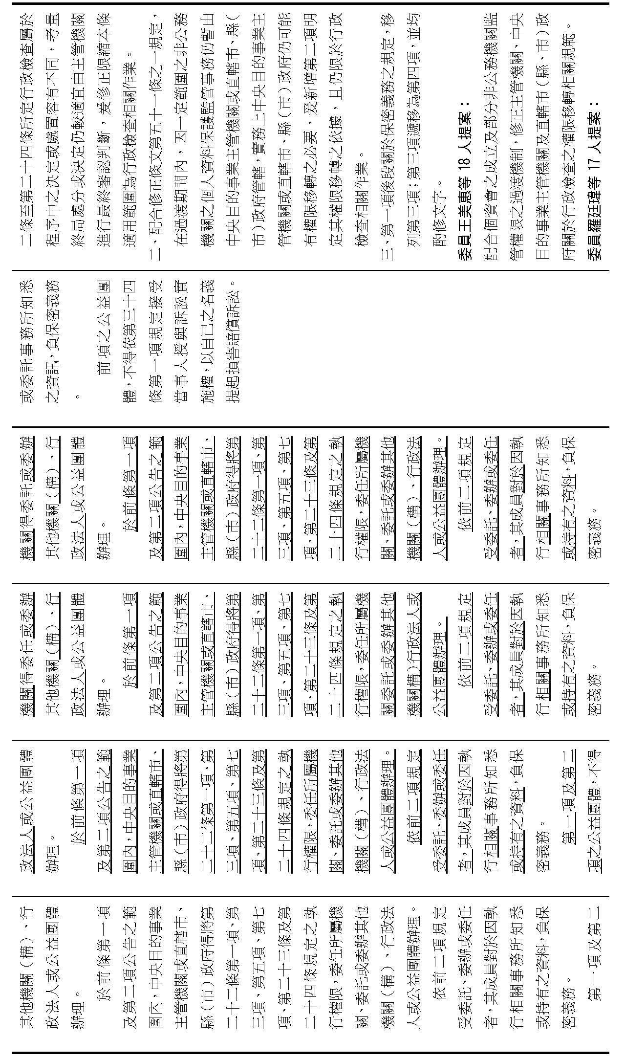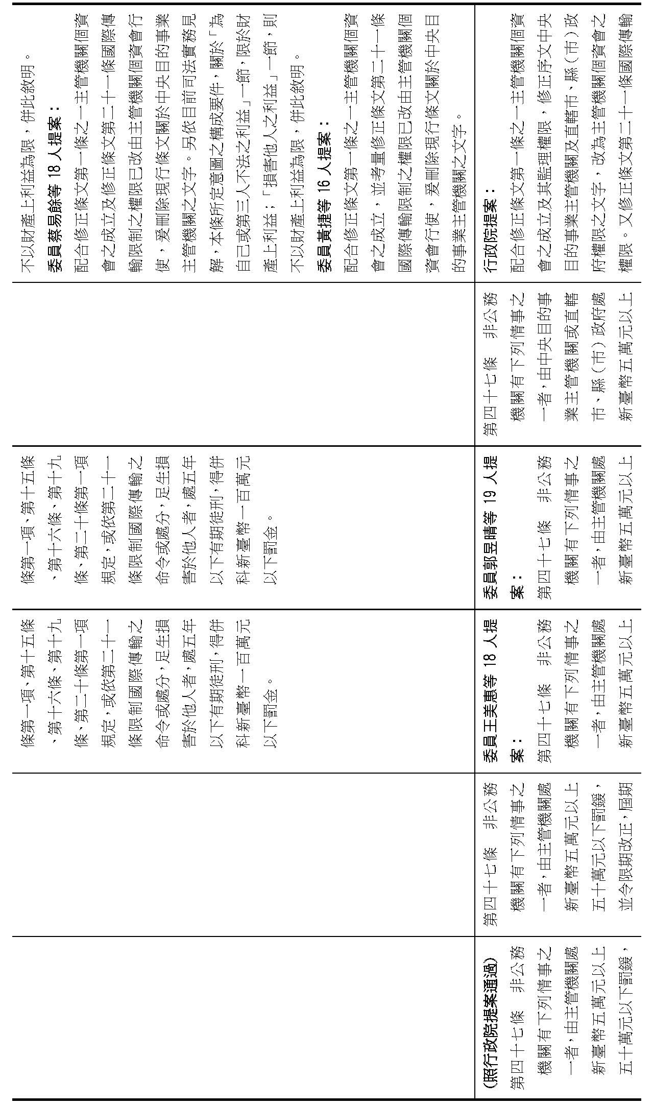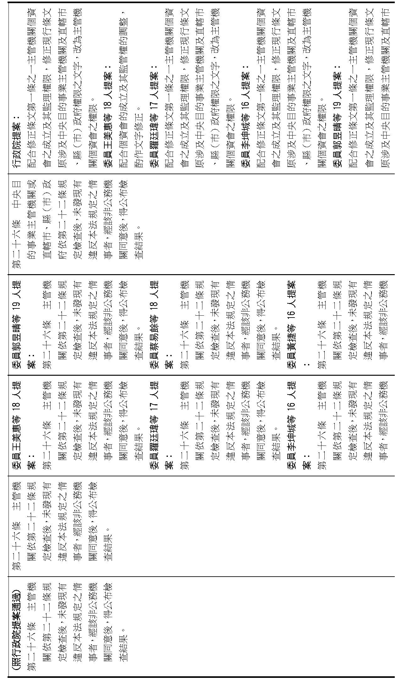 (二)有關大院委員所擬具之修正案,本籌備處說明如下: