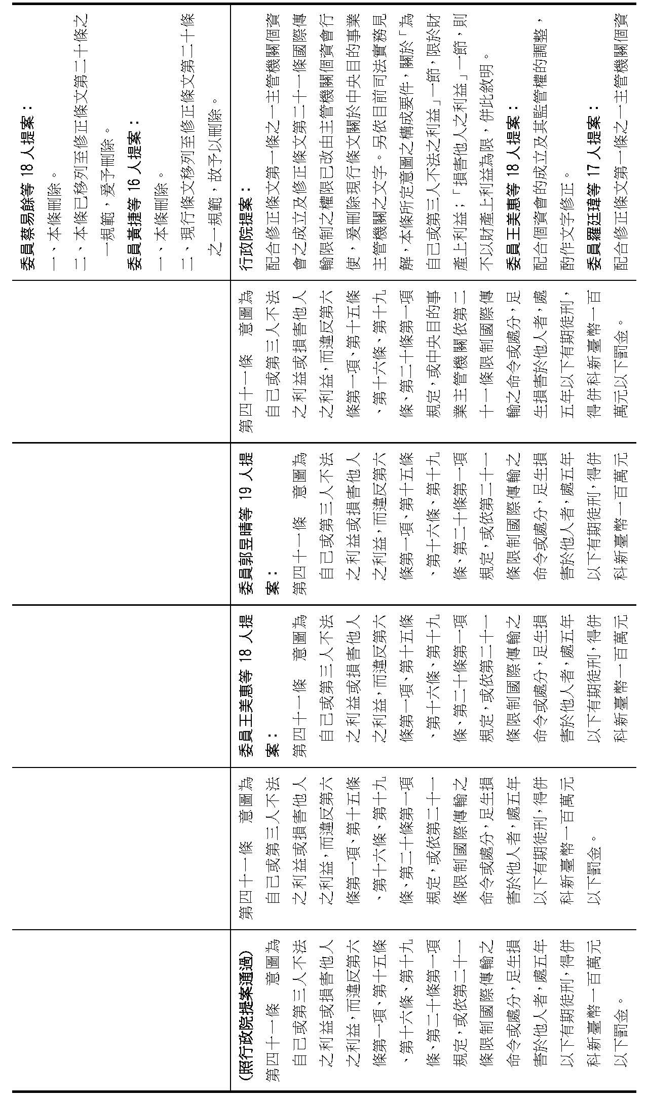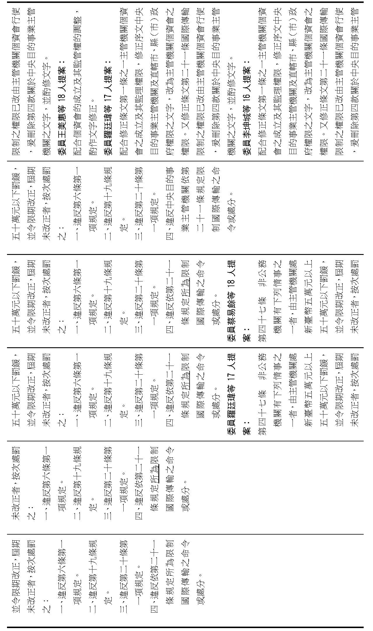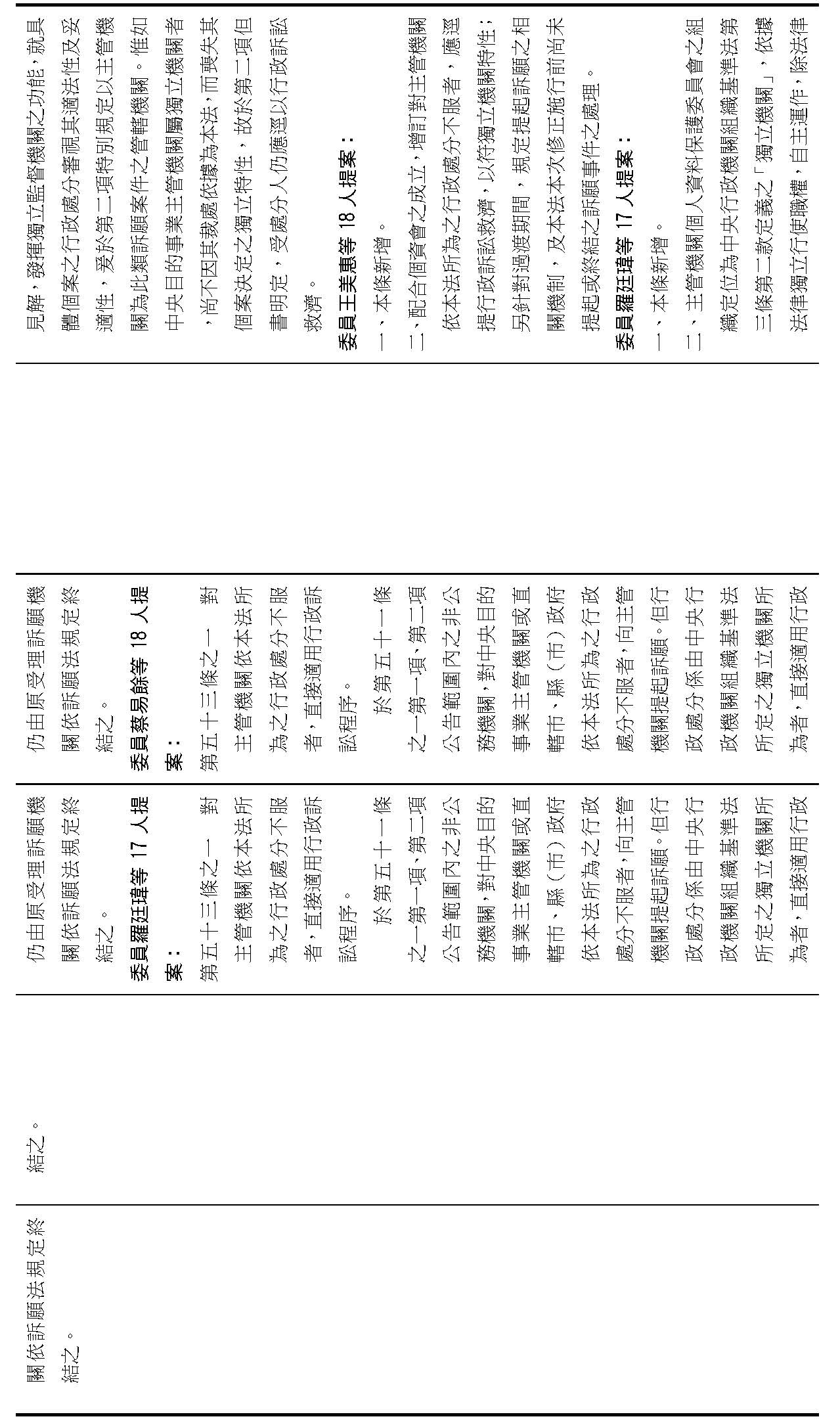 (二)有關大院委員所擬具之修正案,本籌備處說明如下: