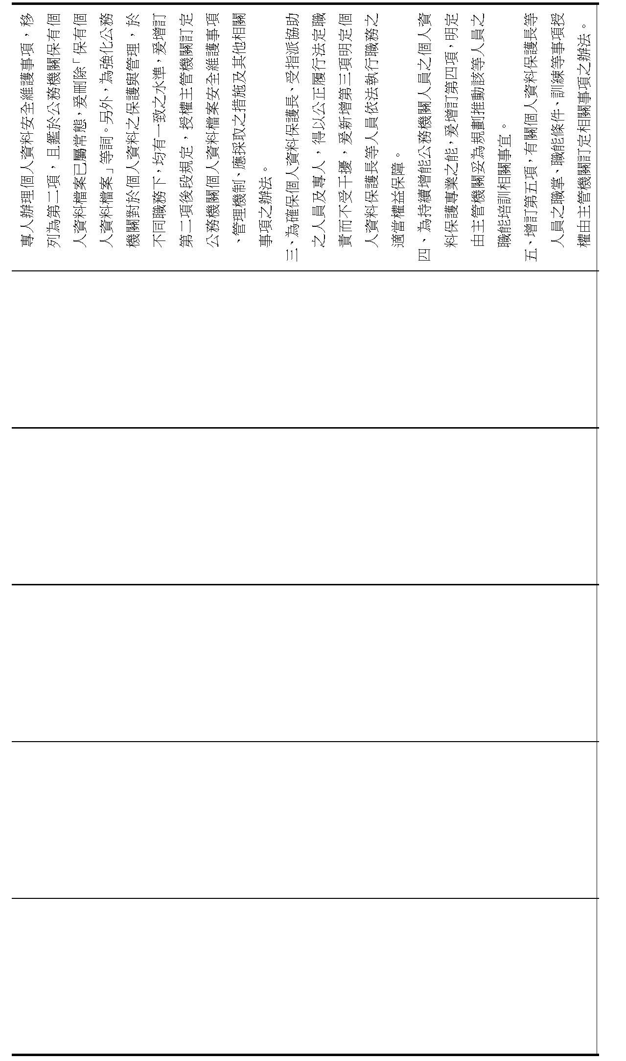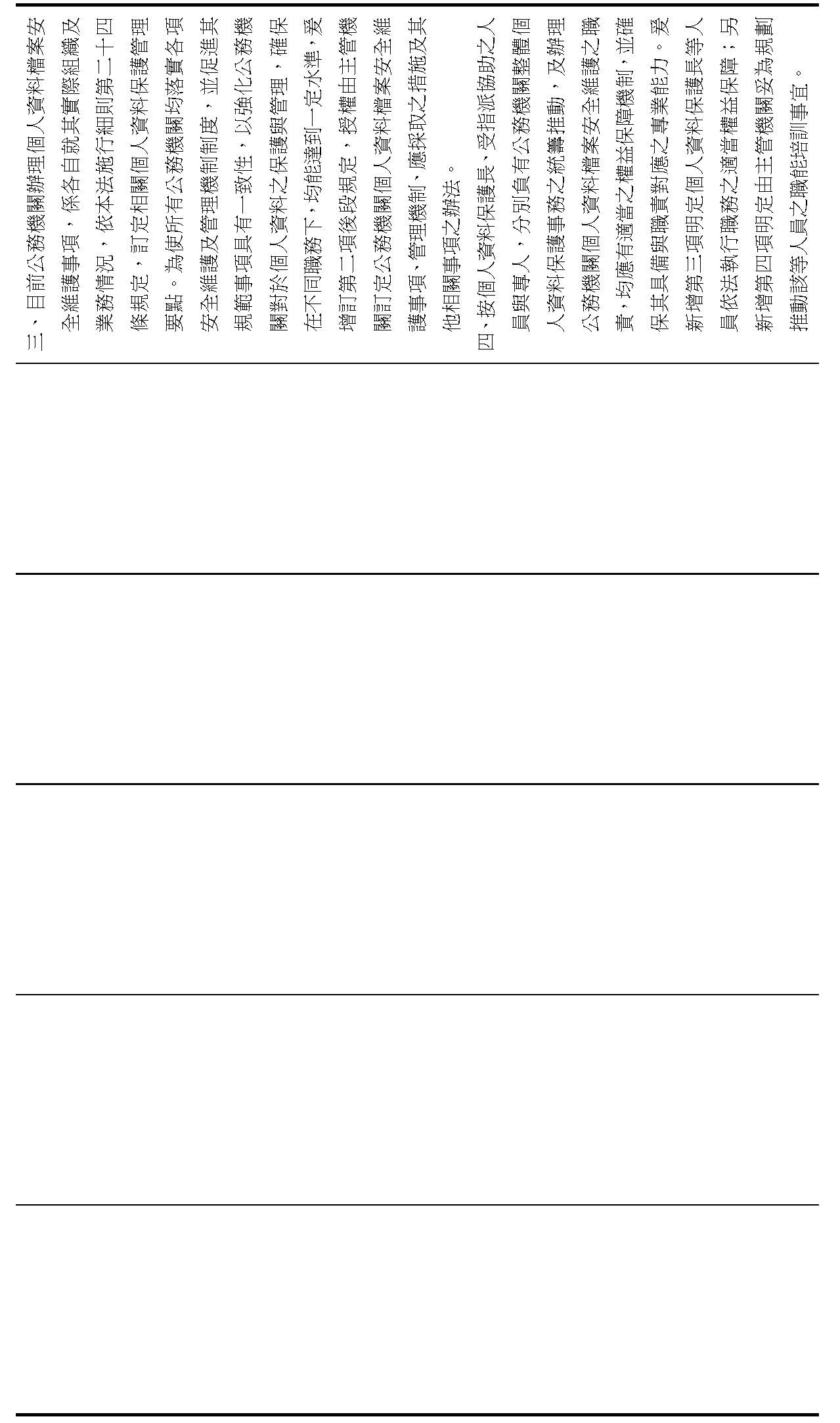 (三)增訂公務機關應置個人資料保護長,負責統籌推動及督導考核機關內部及所屬之個人資料保護事務,並授權主管機關分別就相關人員之職掌、訓練等相關事項,及公務機關之個人資料檔案安全維護事項、管理機制等訂定辦法。(修正條文第十八條)
