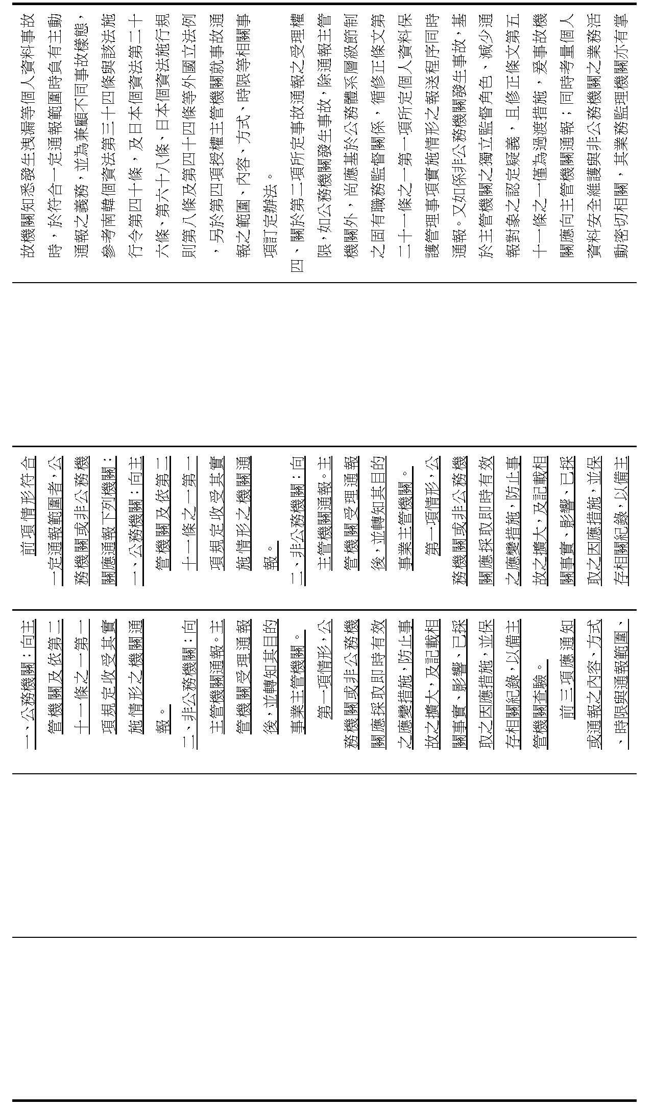 (二)增訂公務機關或非公務機關遇有個人資料洩漏等事故,有採行應變措施、保存事故紀錄之義務,於符合一定通報範圍時並應通報主管機關;另修正事故機關應通知當事人之個人資料事故樣態。(修正條文第十二條)