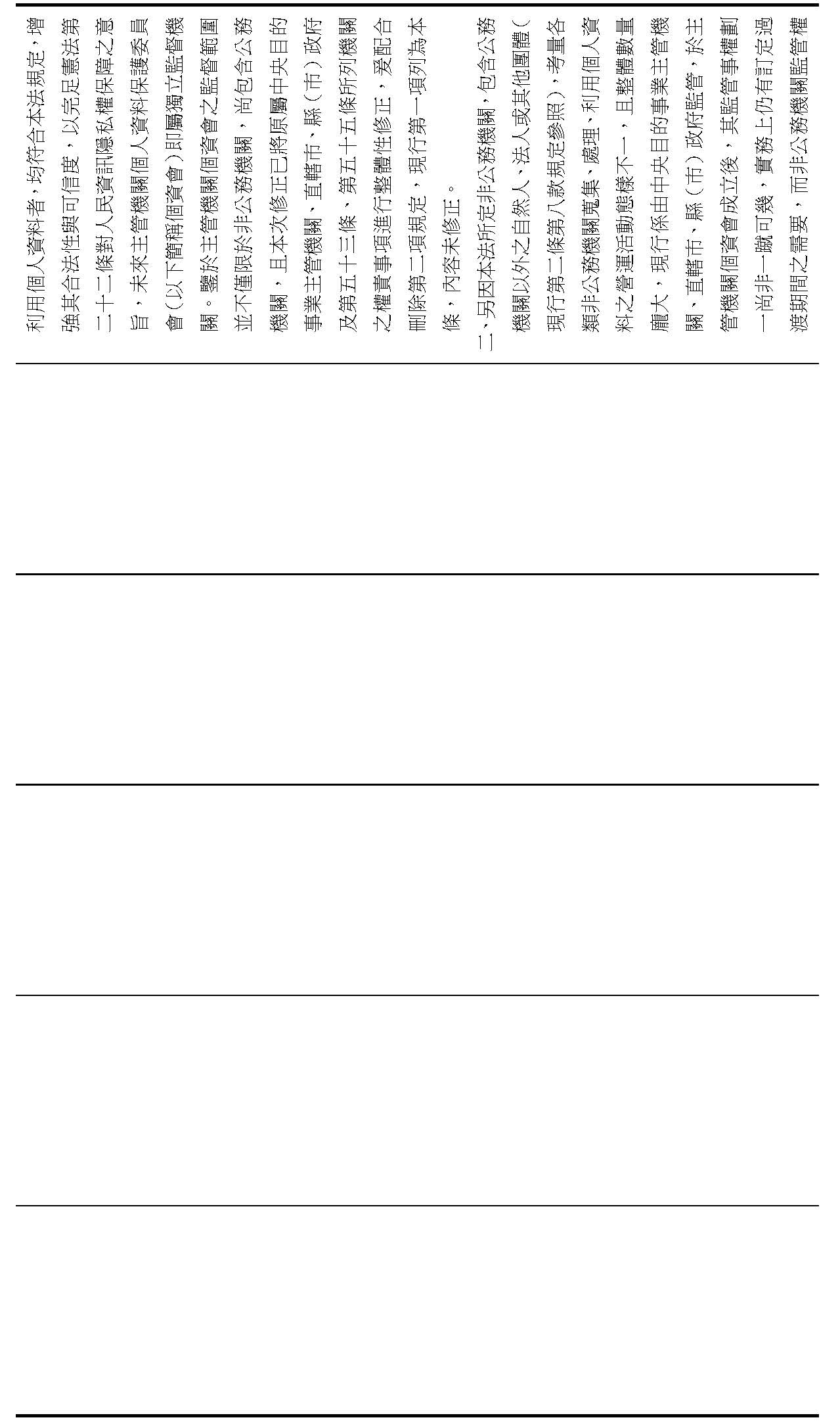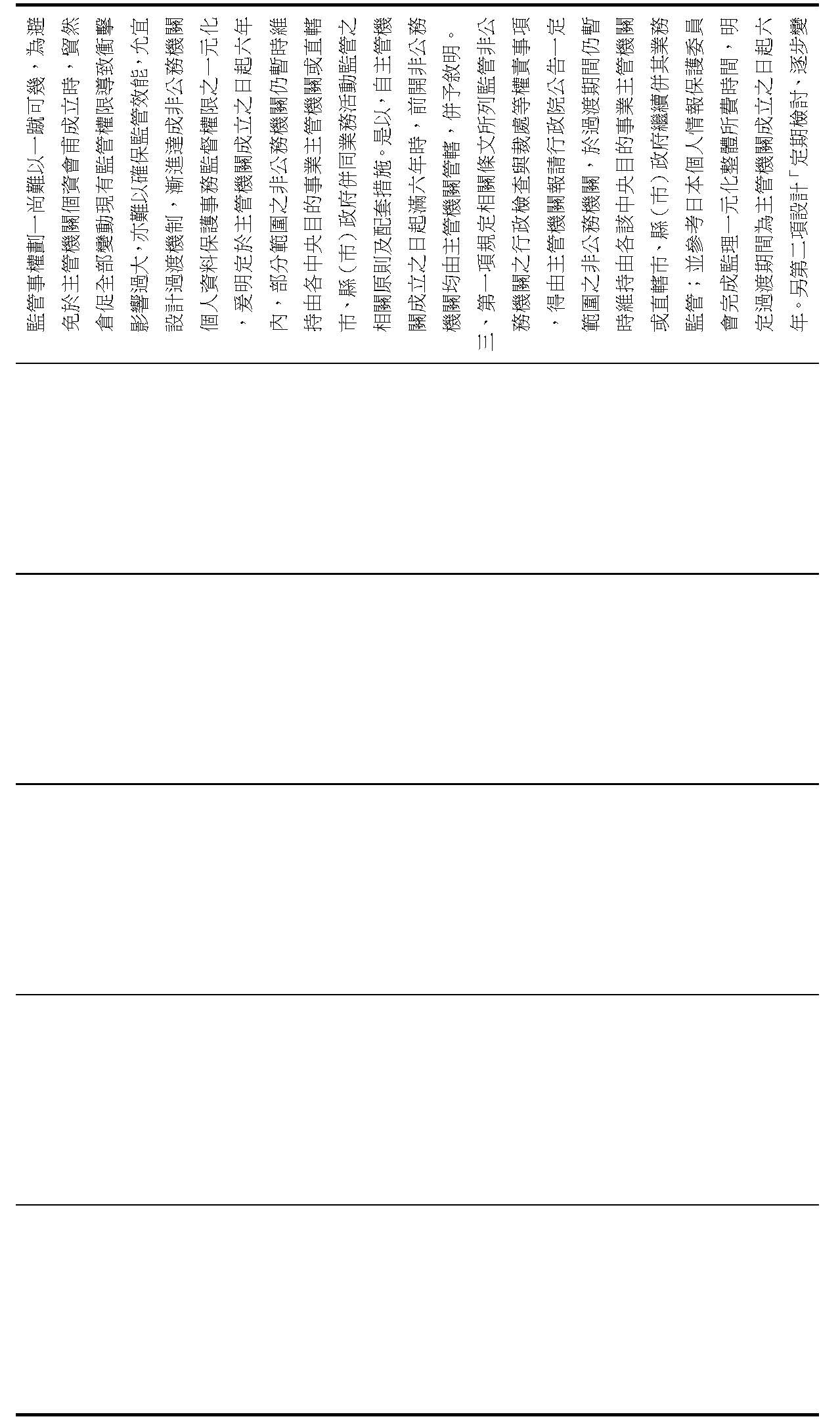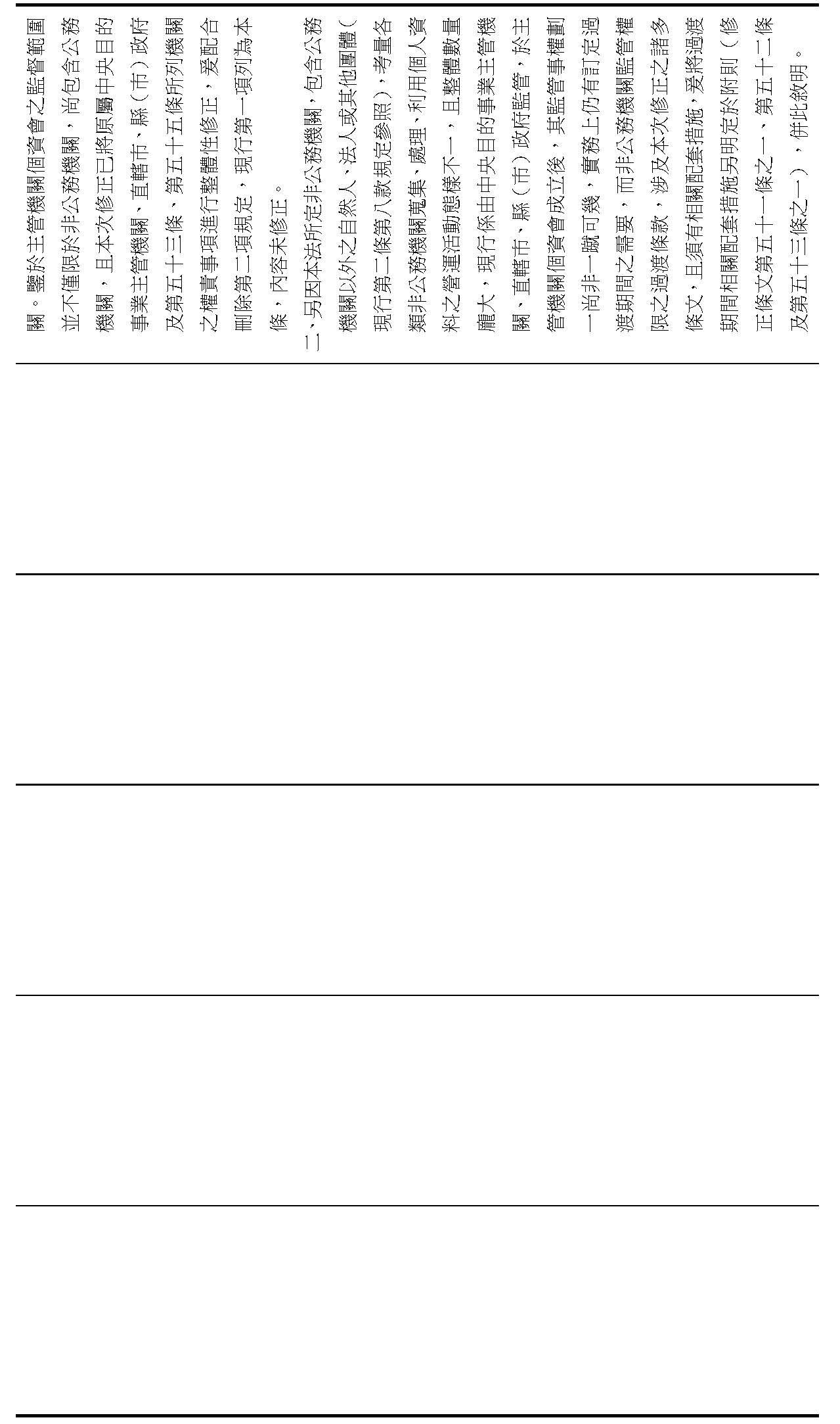 (八)為因應漸進達成非公務機關個人資料保護事務監督權限之一元化,增訂權限變動之過渡條款,明定主管機關得報請行政院公告一定範圍之非公務機關,於四年之過渡期間,仍暫時維持由中央目的事業主管機關或直轄市(縣、市)政府監管其個人資料保護事項,分階段將該監管權限逐步改由個資會管轄,及各該目的事業主管機關於過渡期間之相關執法配套機制。(修正條文第五十一條之一)