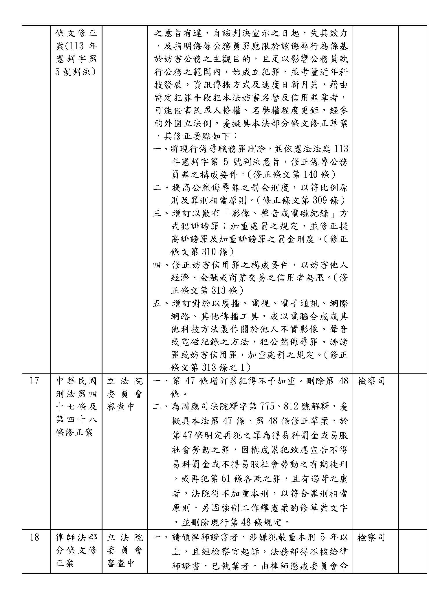立法院司法及法制委員會第11屆第4會期第2次全體委員會議列