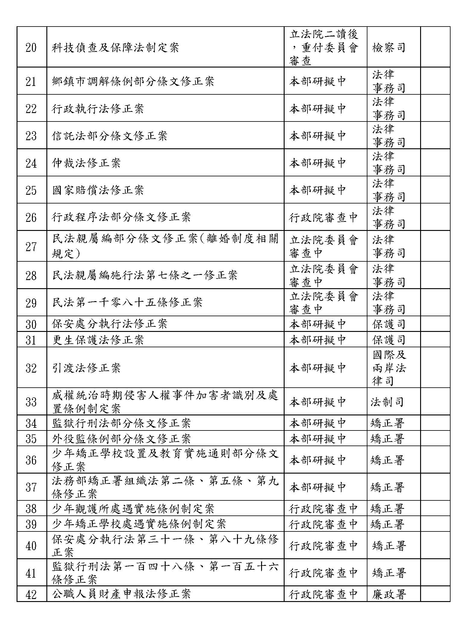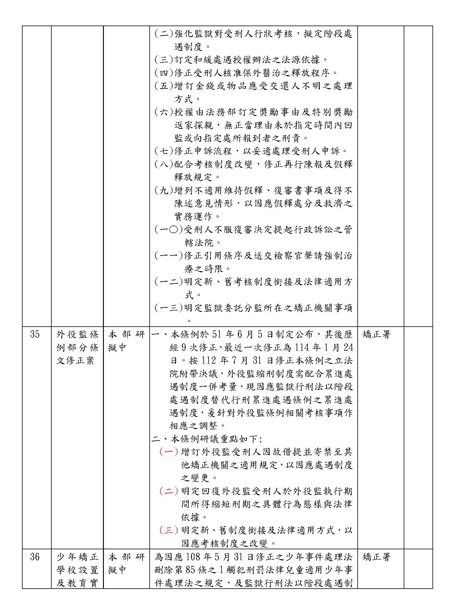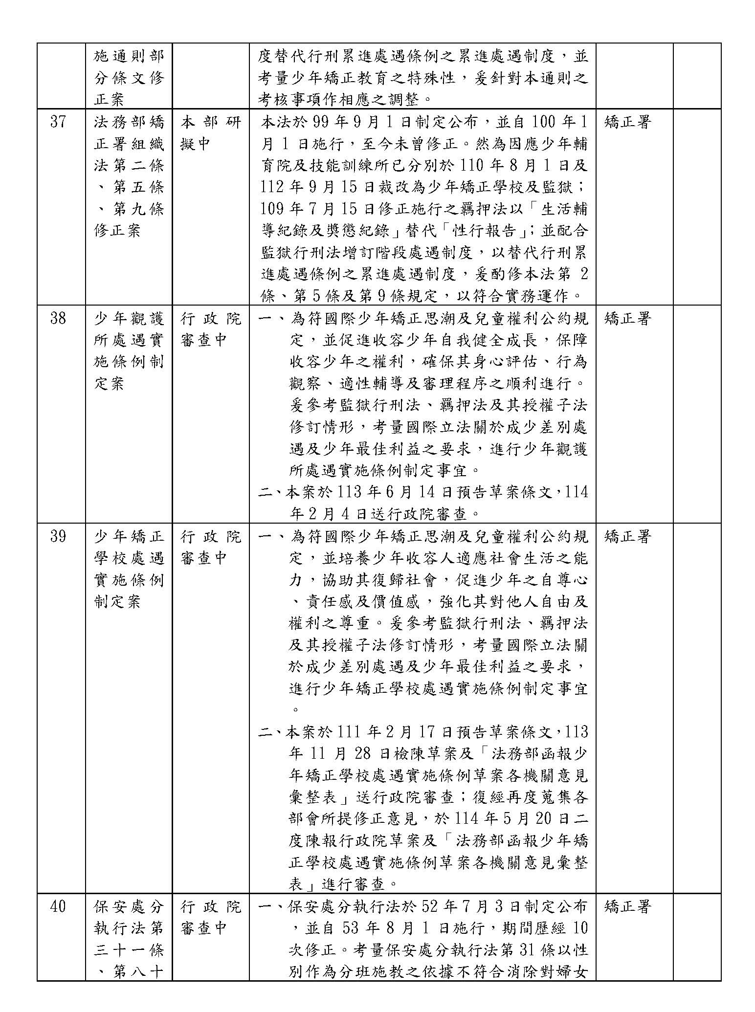 林委員倩綺:所以矯正署送到法務部、法務部也已經送出法務部、到行政院了,目前是這個階段,是嗎?