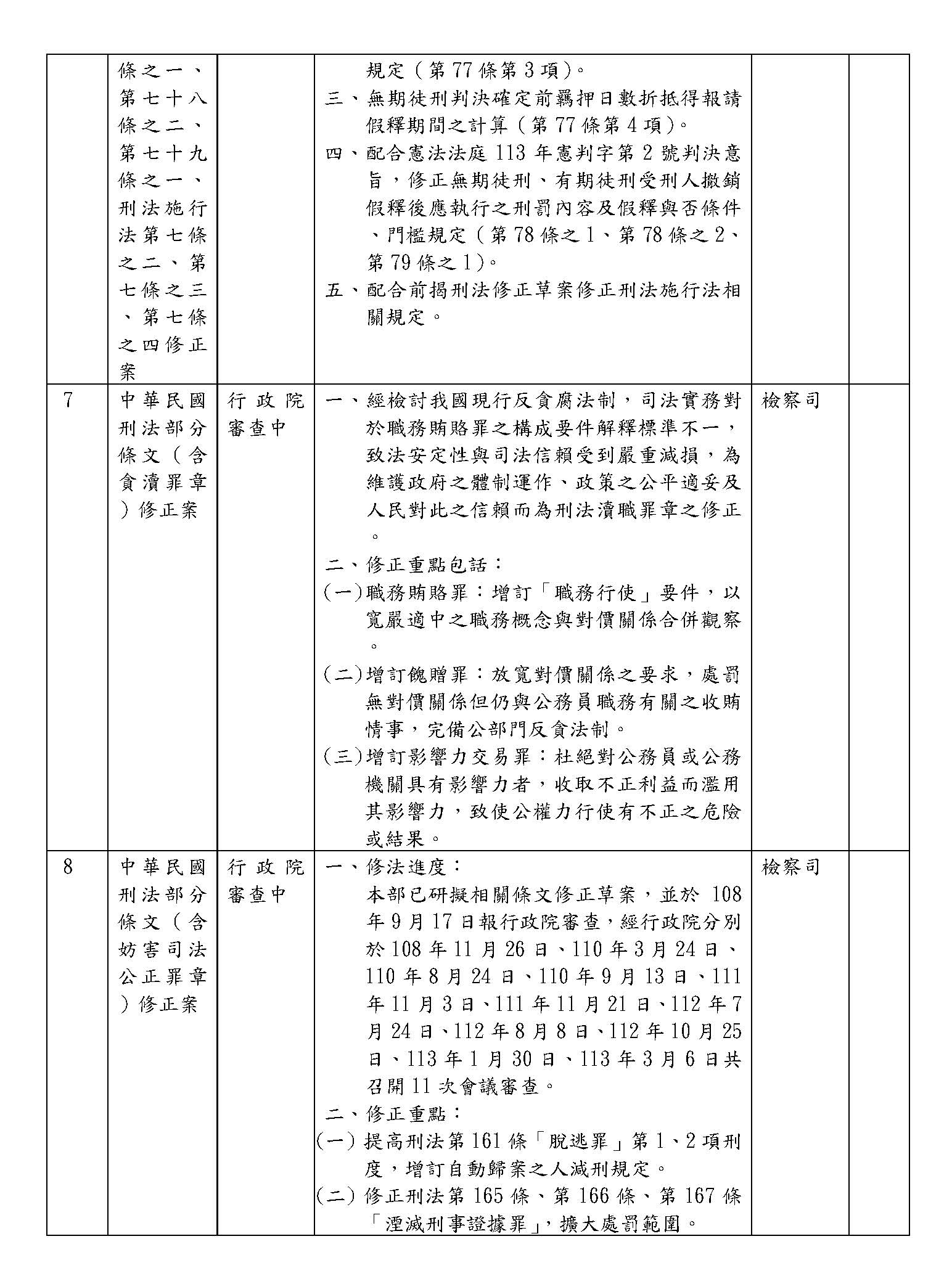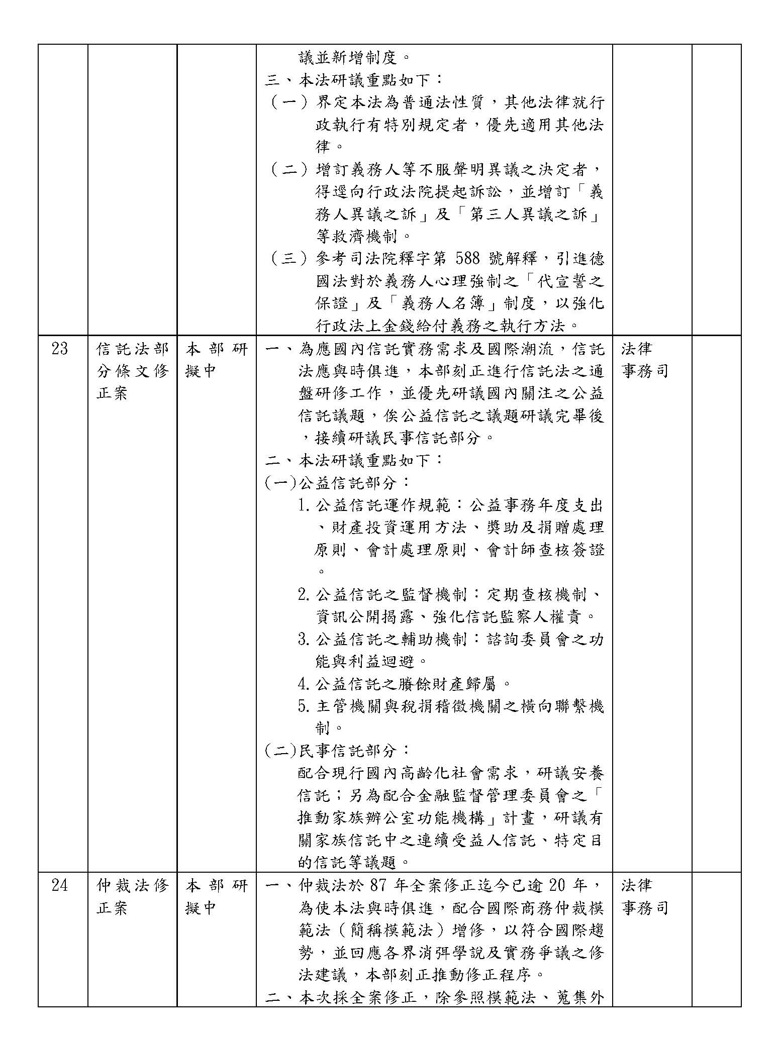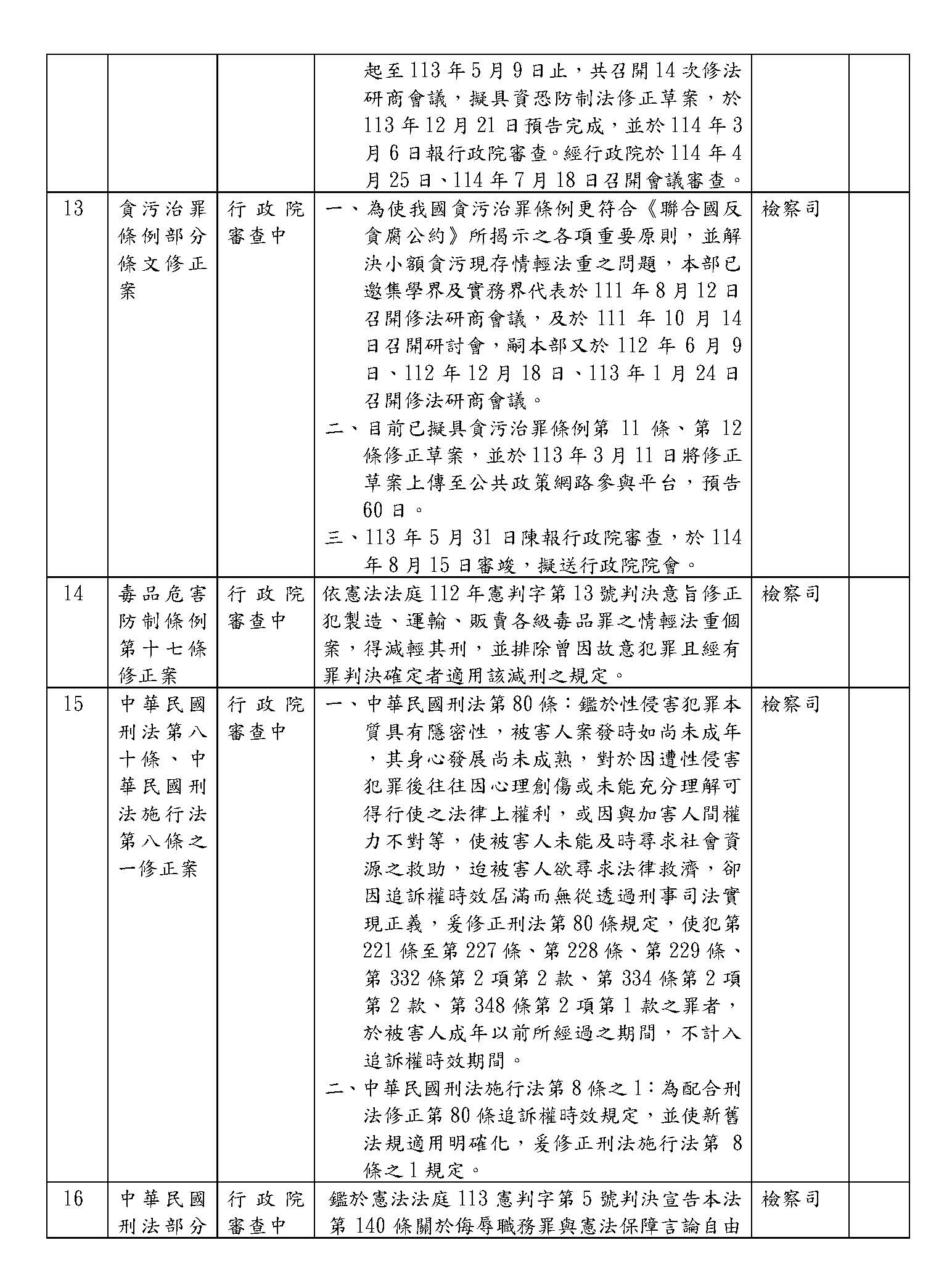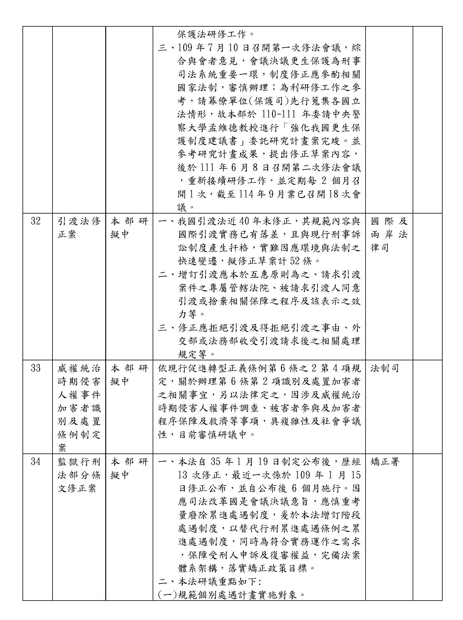 林委員倩綺:所以矯正署送到法務部、法務部也已經送出法務部、到行政院了,目前是這個階段,是嗎?