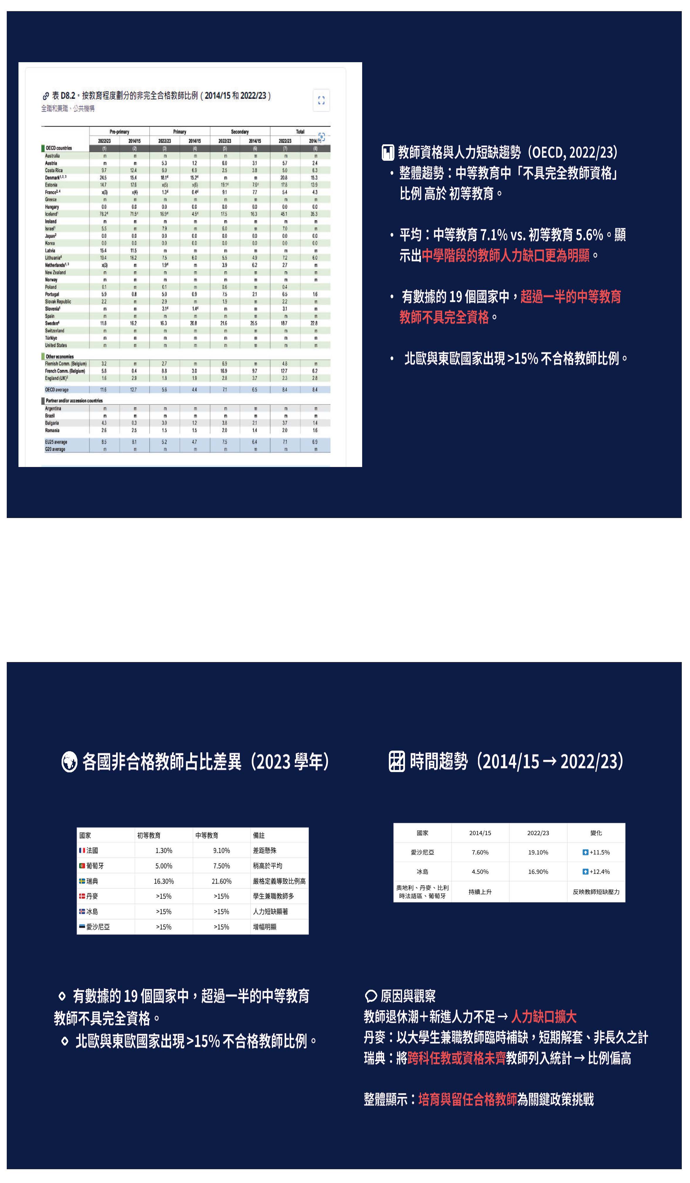 大家可以看一下,薪資缺乏吸引力、親師衝突頻繁、勞動條件不佳,已經有7.4萬名具有教師證的準教師選擇不投入教職了,這個情勢其實相當嚴峻。