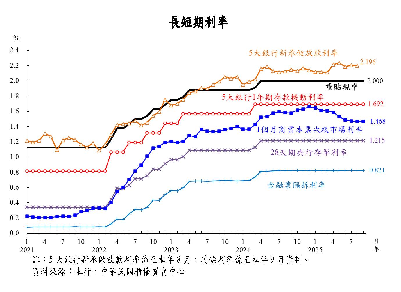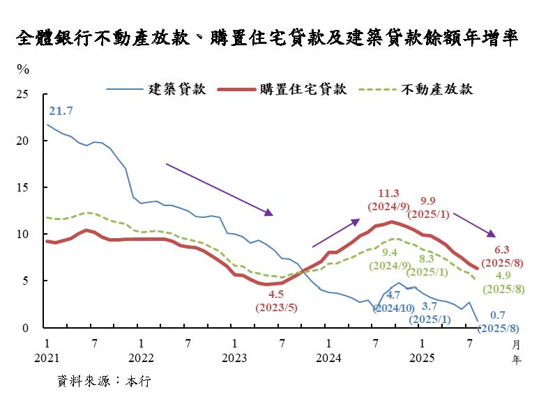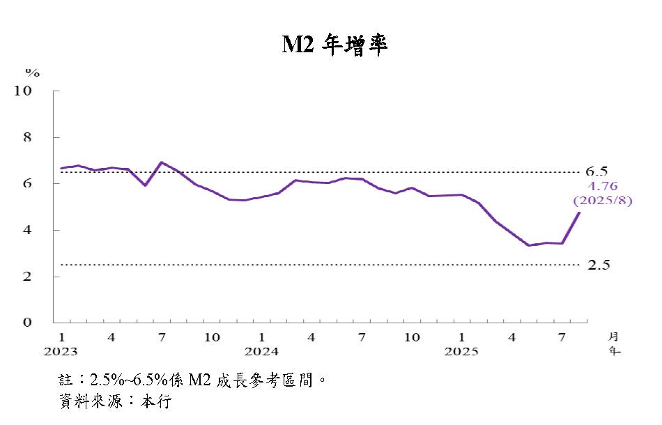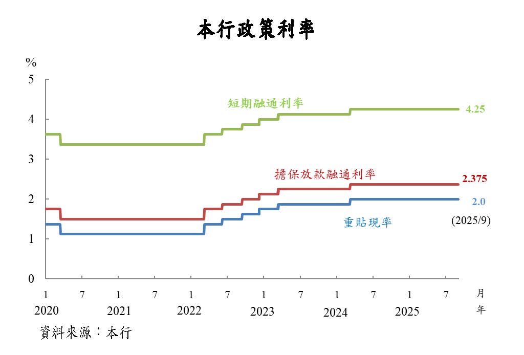 本年4月以來,日本央行(BoJ)考量關稅對經濟與物價影響之不確定性仍高,5月、6月、7月及9月均決議維持政策利率不變。惟BoJ總裁植田多次表示,若關稅不確定性下降,薪資成長與通膨之良性循環符合預期,將仍持升息立場;另9月決議,在必要的準備工作完成後,於市場出售持有之指數股票型基金(ETF)與不動產投資信託基金(J-REIT)。中國大陸經濟成長趨緩,通膨低迷,中國人民銀行(以下簡稱人行)5月降息降準,並運用多樣政策工具,促進經濟及物價回升,預期貨幣政策持續寬鬆。