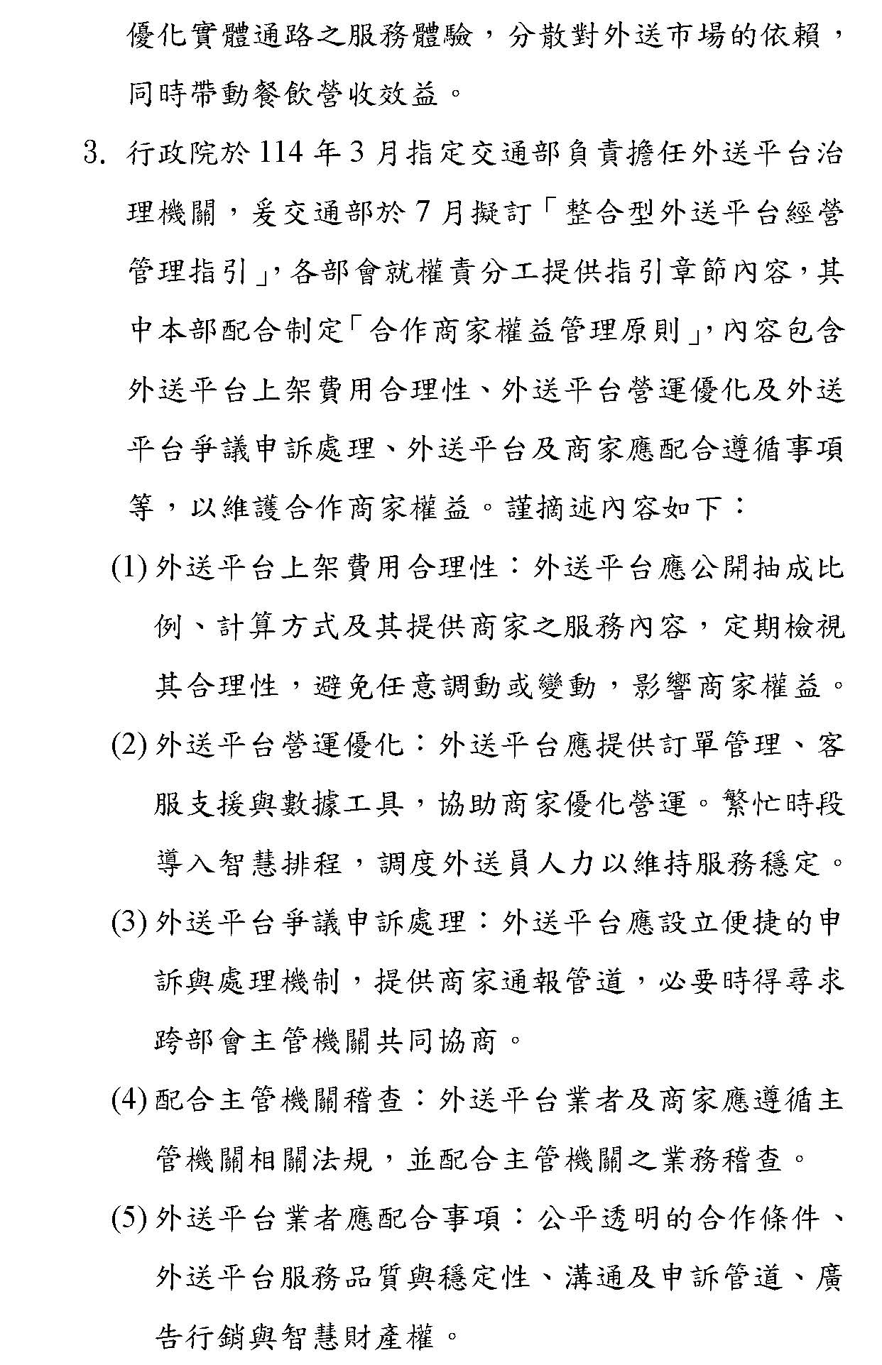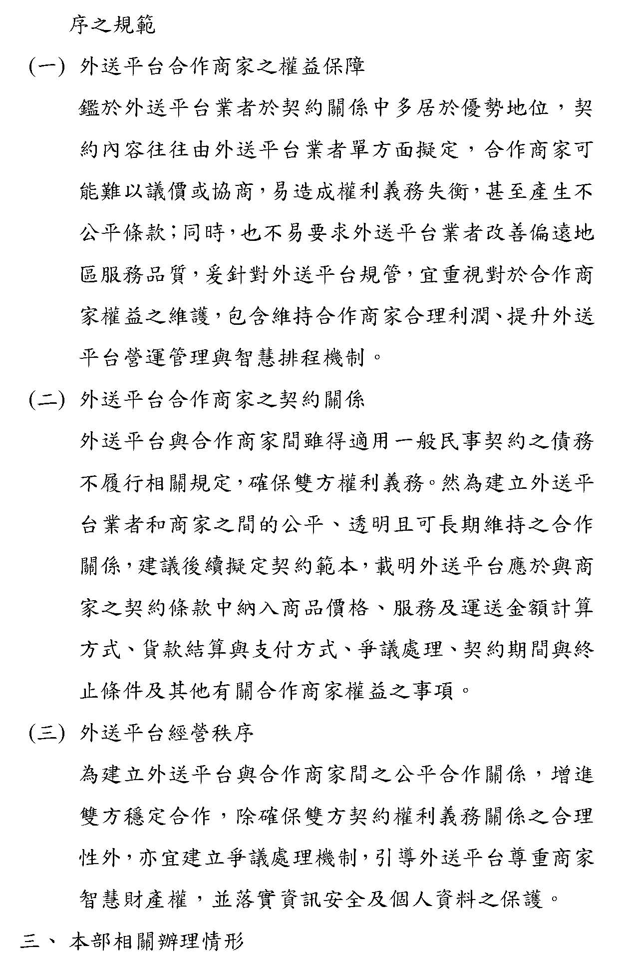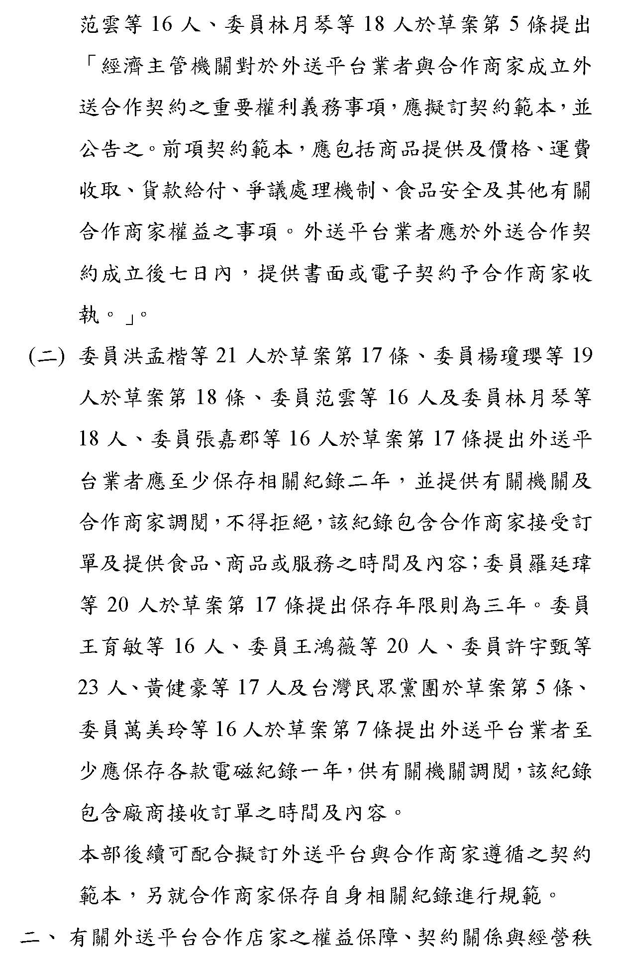 「外送平台管理暨從業人員權益保障法草案」及「外送員權益保障及外送平臺管理法草案」公聽會(書面報告)