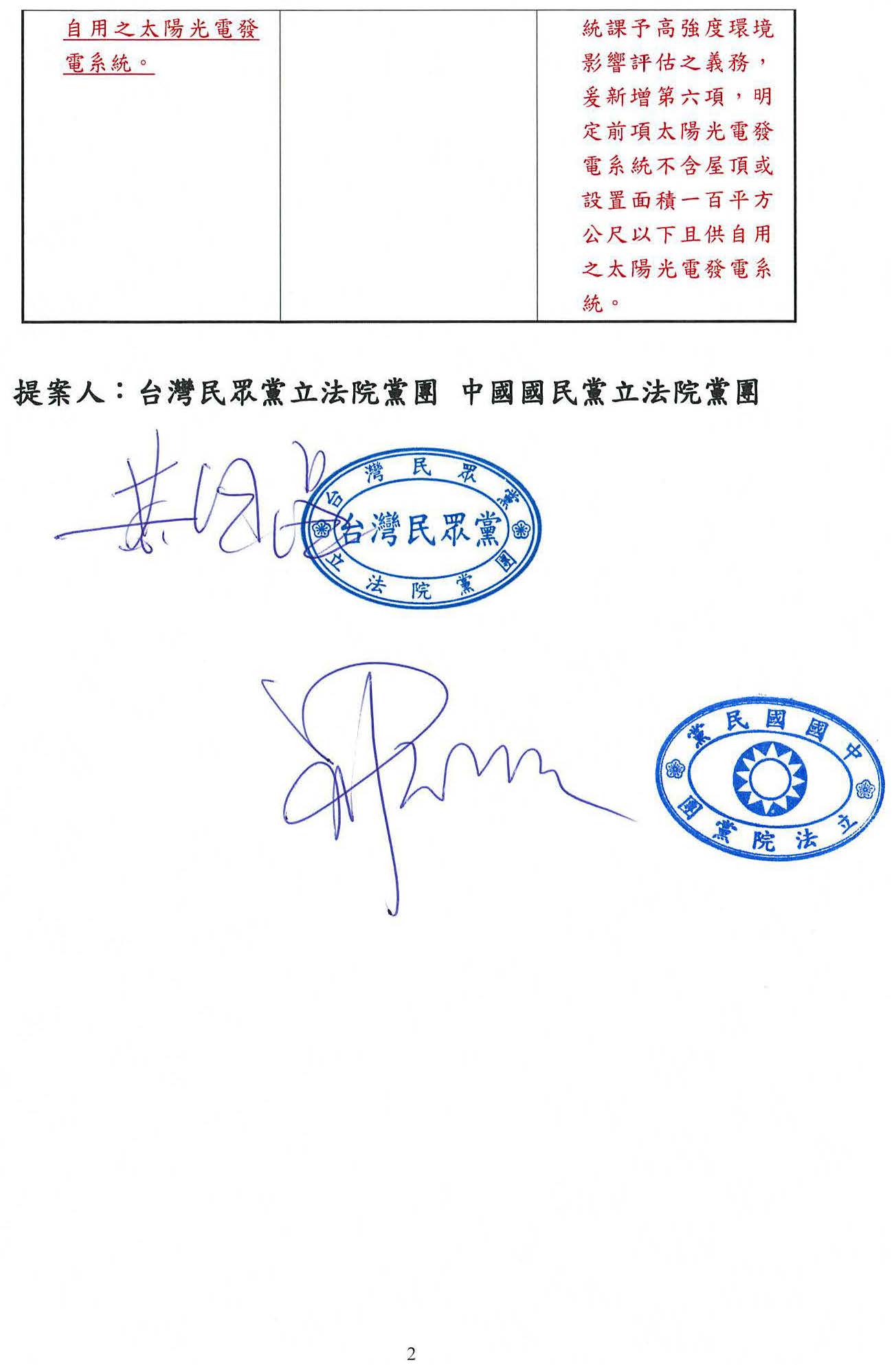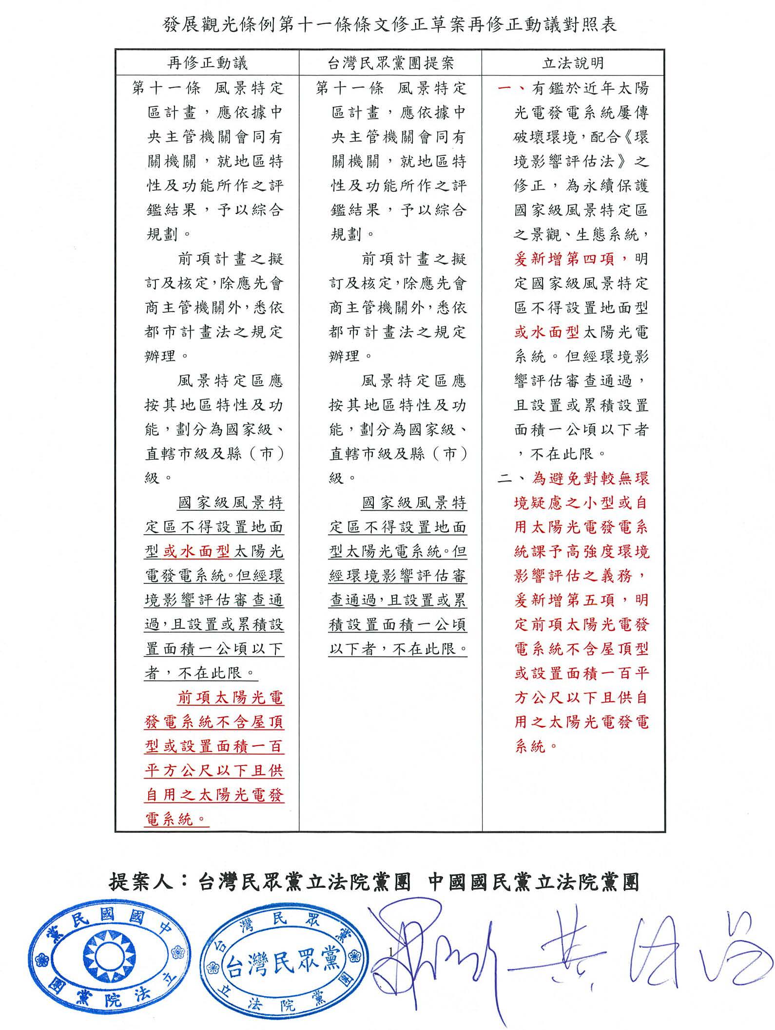 台灣民眾黨黨團、國民黨黨團共同再修正動議: