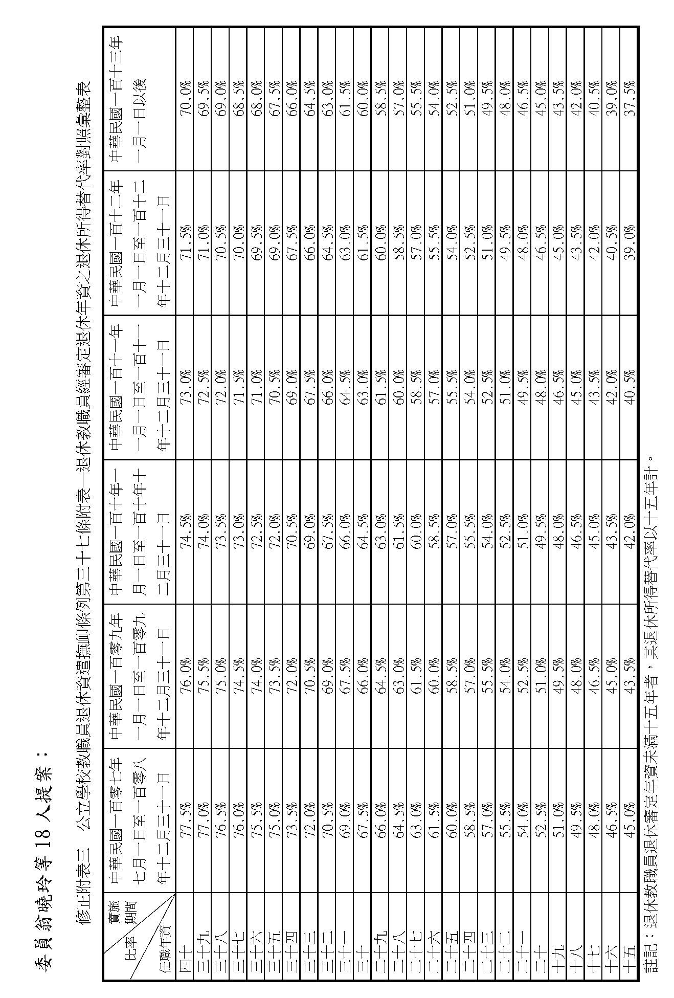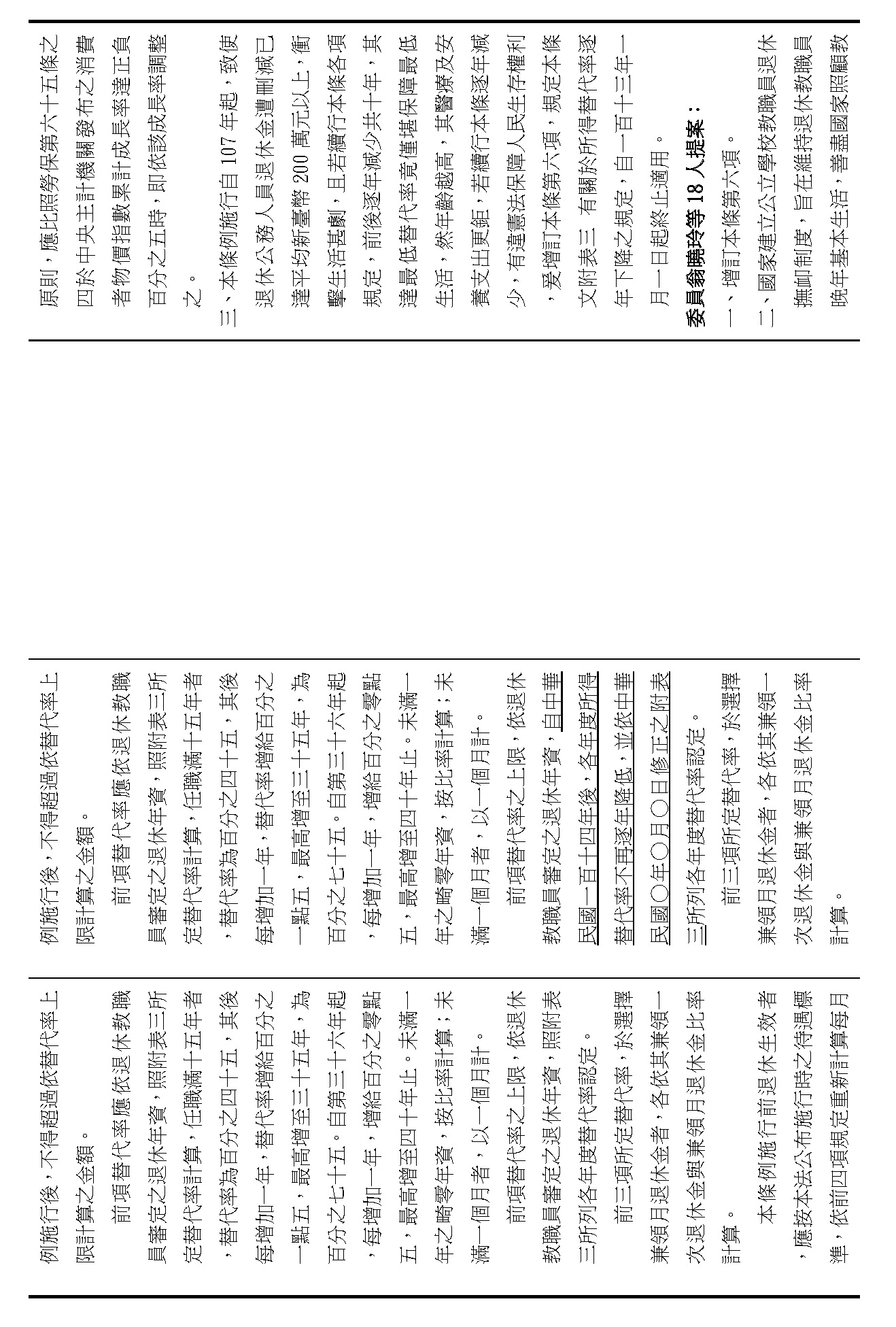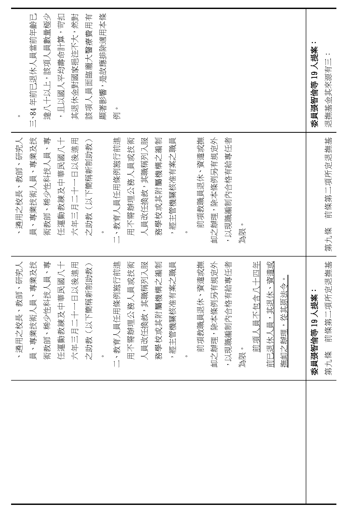 (九)委員翁曉玲等18人擬具「公立學校教職員退休資遣撫卹條例第三十七條條文修正草案」案。