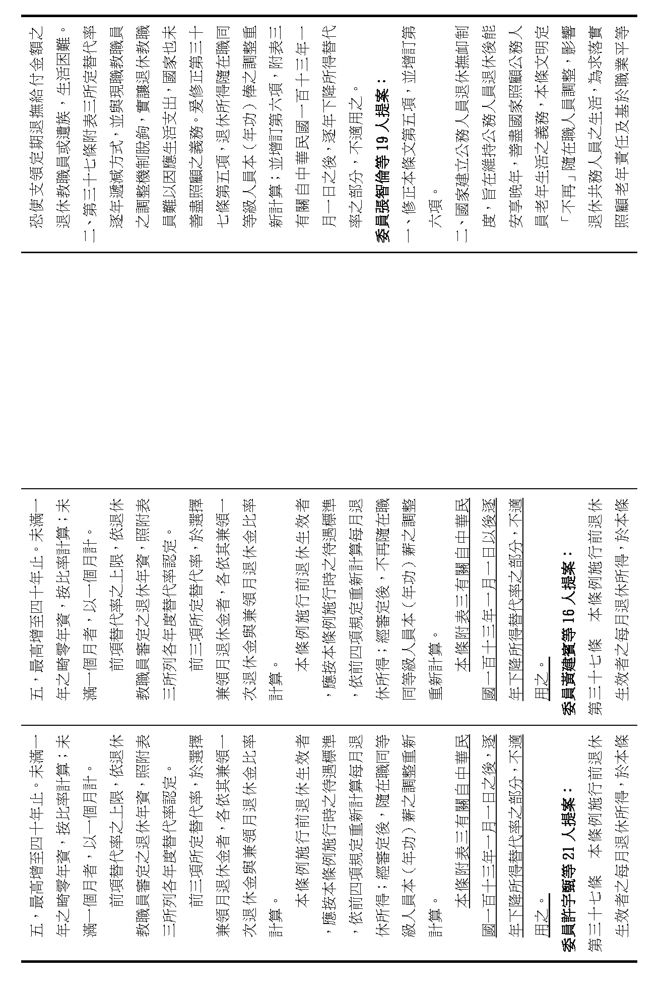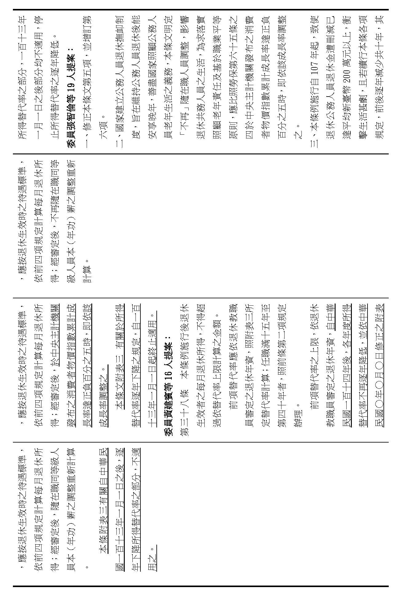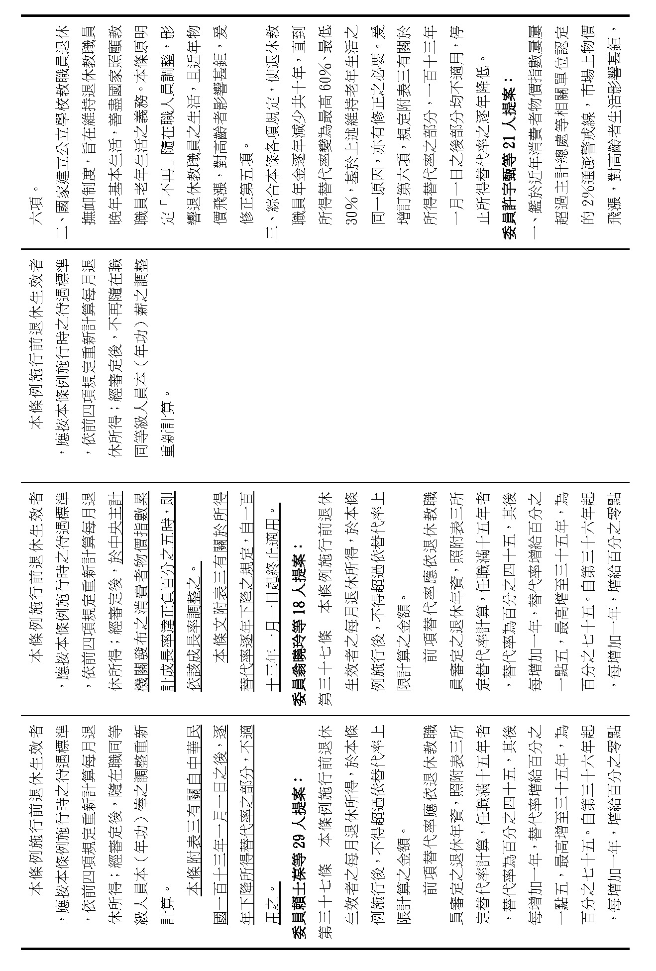 (九)委員翁曉玲等18人擬具「公立學校教職員退休資遣撫卹條例第三十七條條文修正草案」案。