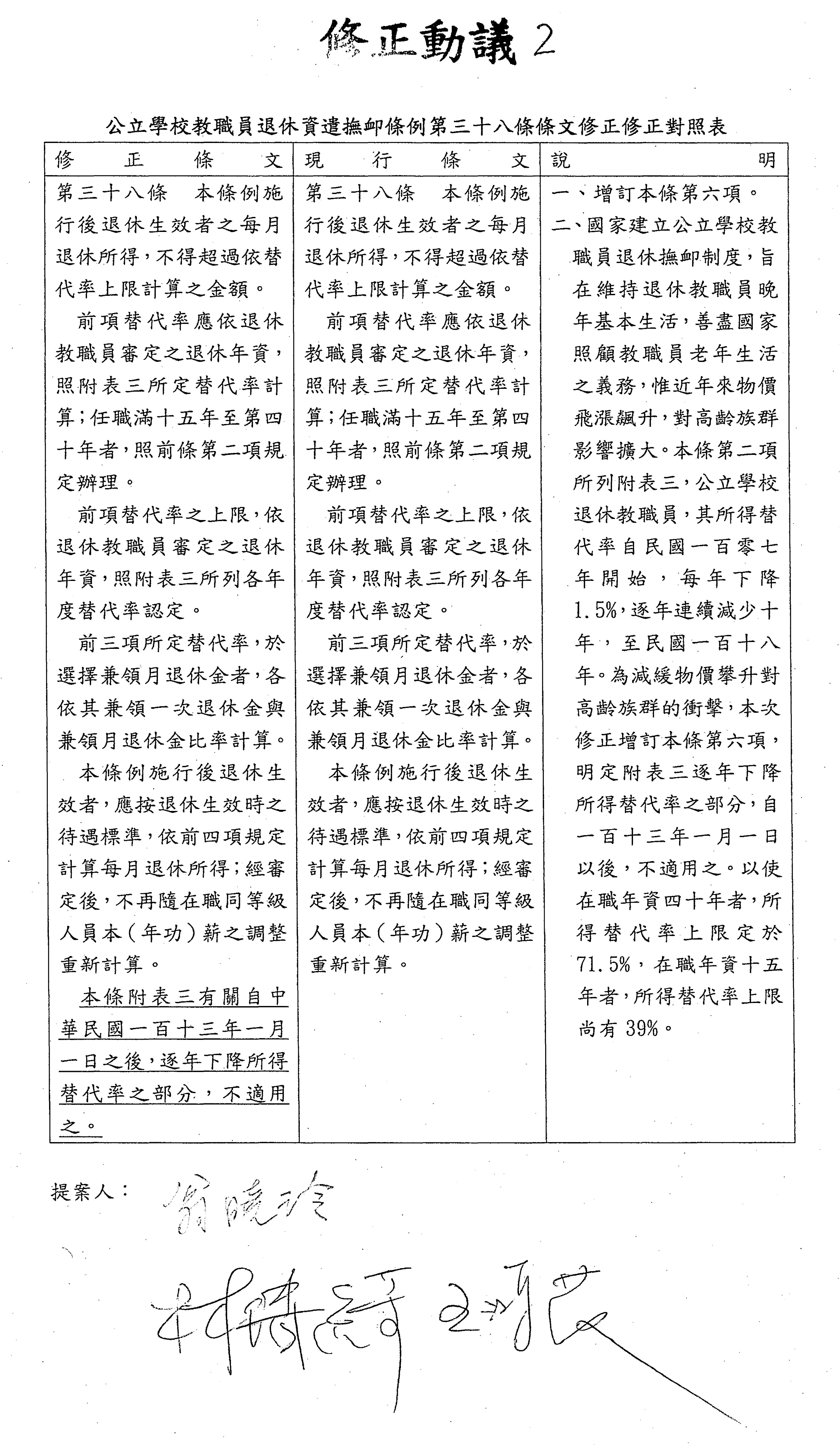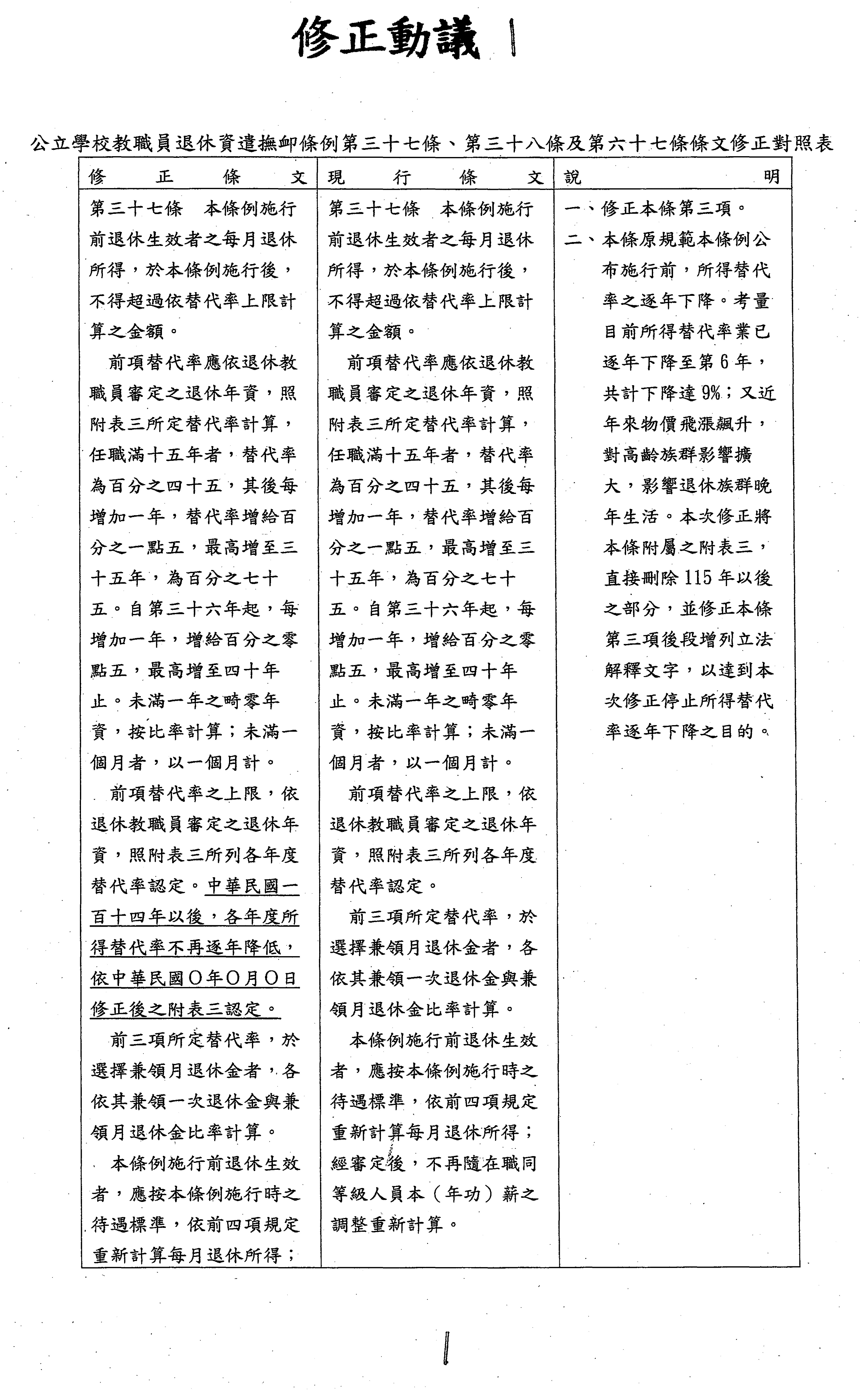 (二)國民黨黨團擬具「公立學校教職員退休資遣撫卹條例第三十七條條文修正草案」案。