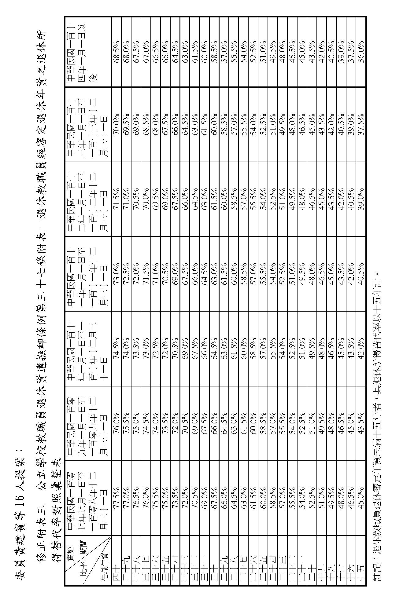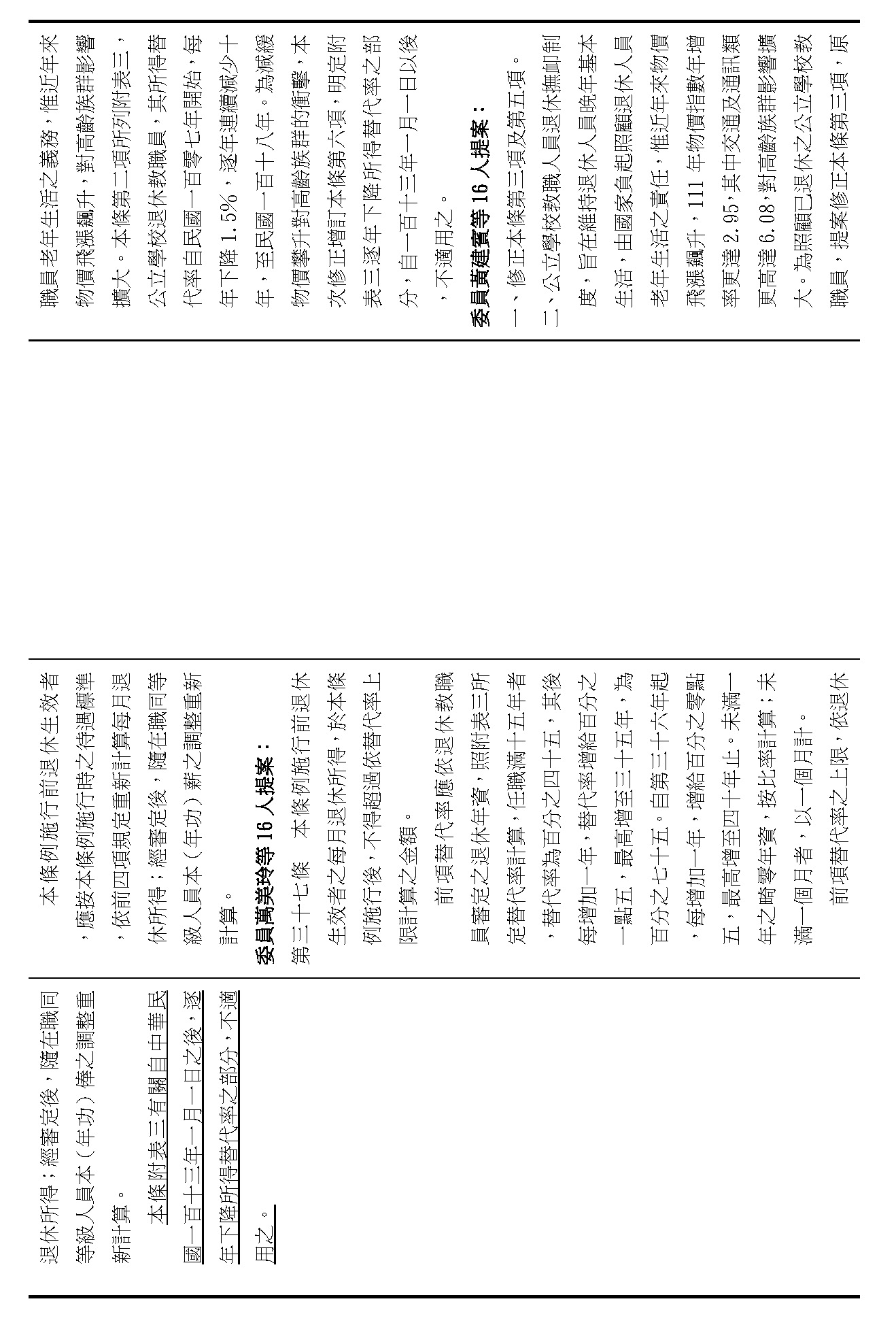 (十一)委員黃建賓等16人擬具「公立學校教職員退休資遣撫卹條例第三十七條、第三十八條及第六十七條條文修正草案」案。