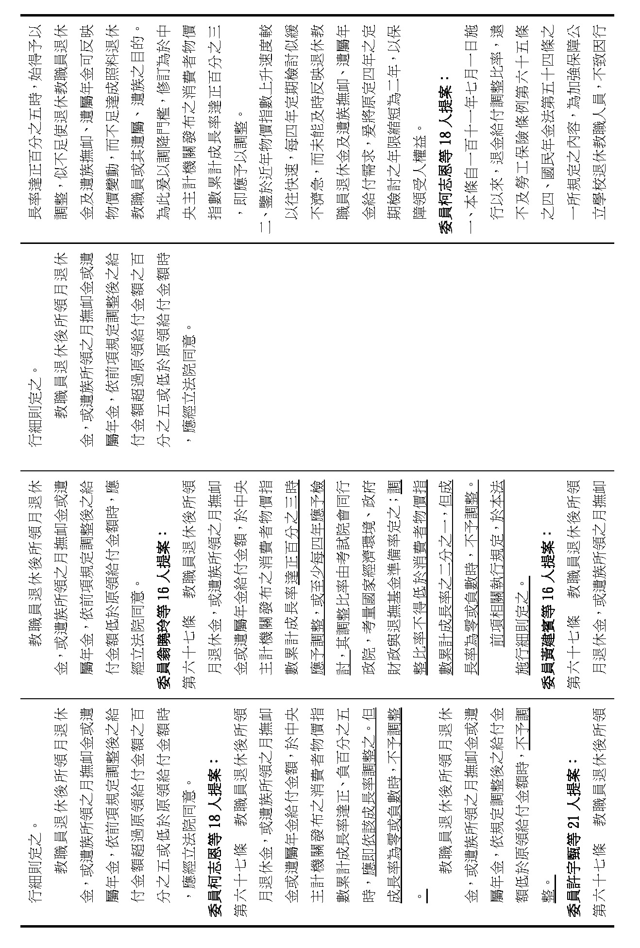 (四)委員柯志恩等18人擬具「公立學校教職員退休資遣撫卹條例第六十七條條文修正草案」案。