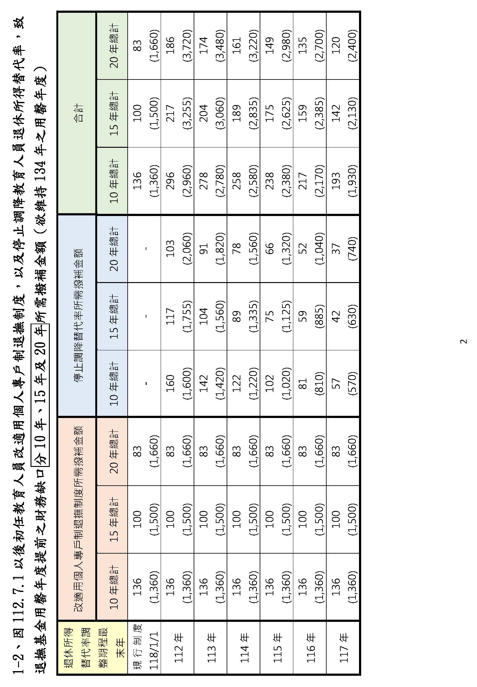 如果回過頭來,真的再不夠怎麼辦?當然政府可以撥補,但是剛剛也有委員提到那就提高費率啊!但我要跟各位報告,根據第9次精算的費率,如果這些未提存的費率真的要完全撥補,公務人員最高、最適費率要23.73%,教育人員要36.06%,這不可能嘛!我一直講,站在任何一個人執政,都不可能把費率提到那麼高,因為沒有那個費率,就不可能支撐那個給付。我是很務實的,精算報告就是那樣講,所以才說大家儘量不要再把它提早啦!我想我是很精確地這樣講,因為這都是根據精算報告來跟各位委員報告。