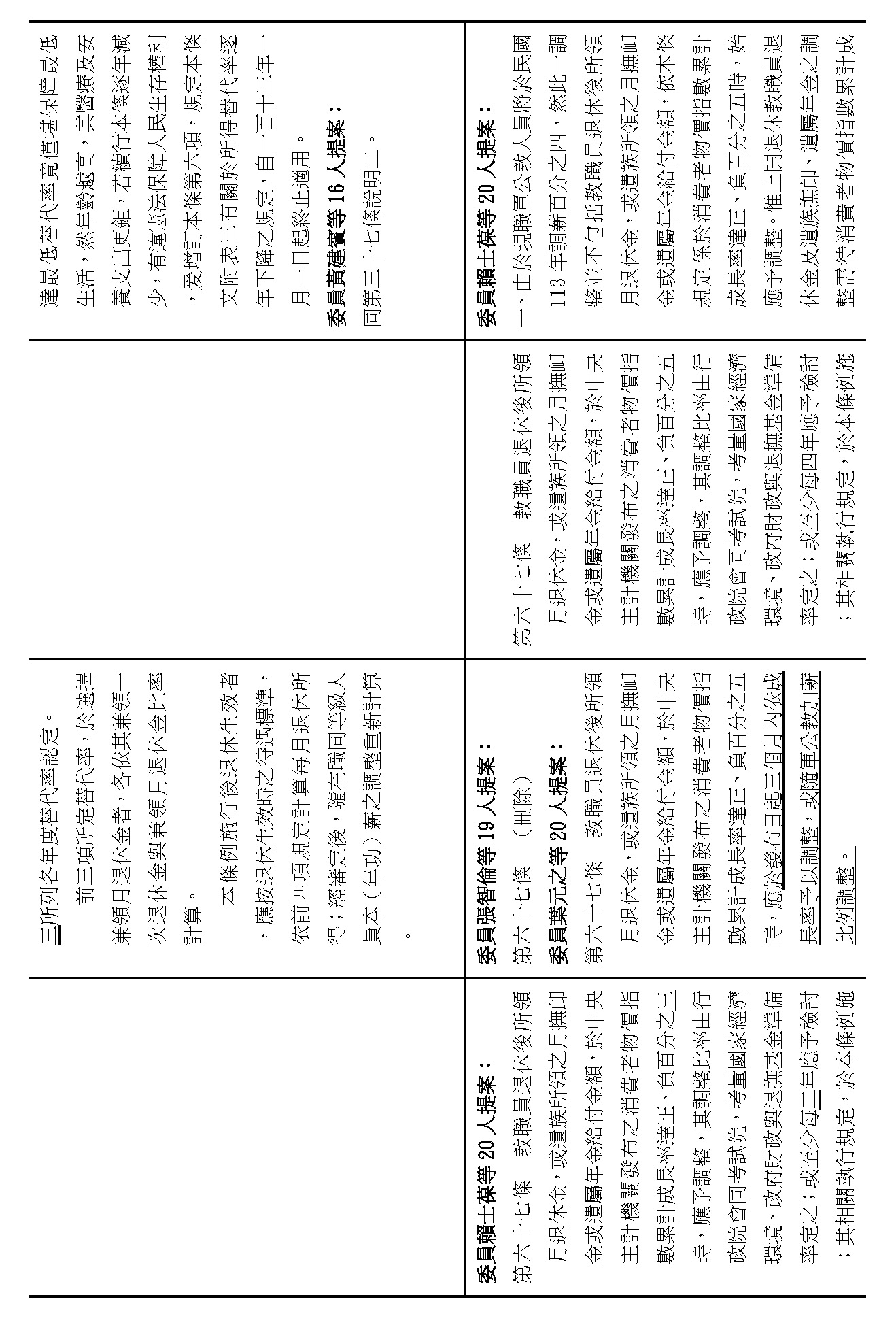 (八)委員葉元之等20人擬具「公立學校教職員退休資遣撫卹條例第六十七條條文修正草案」案。