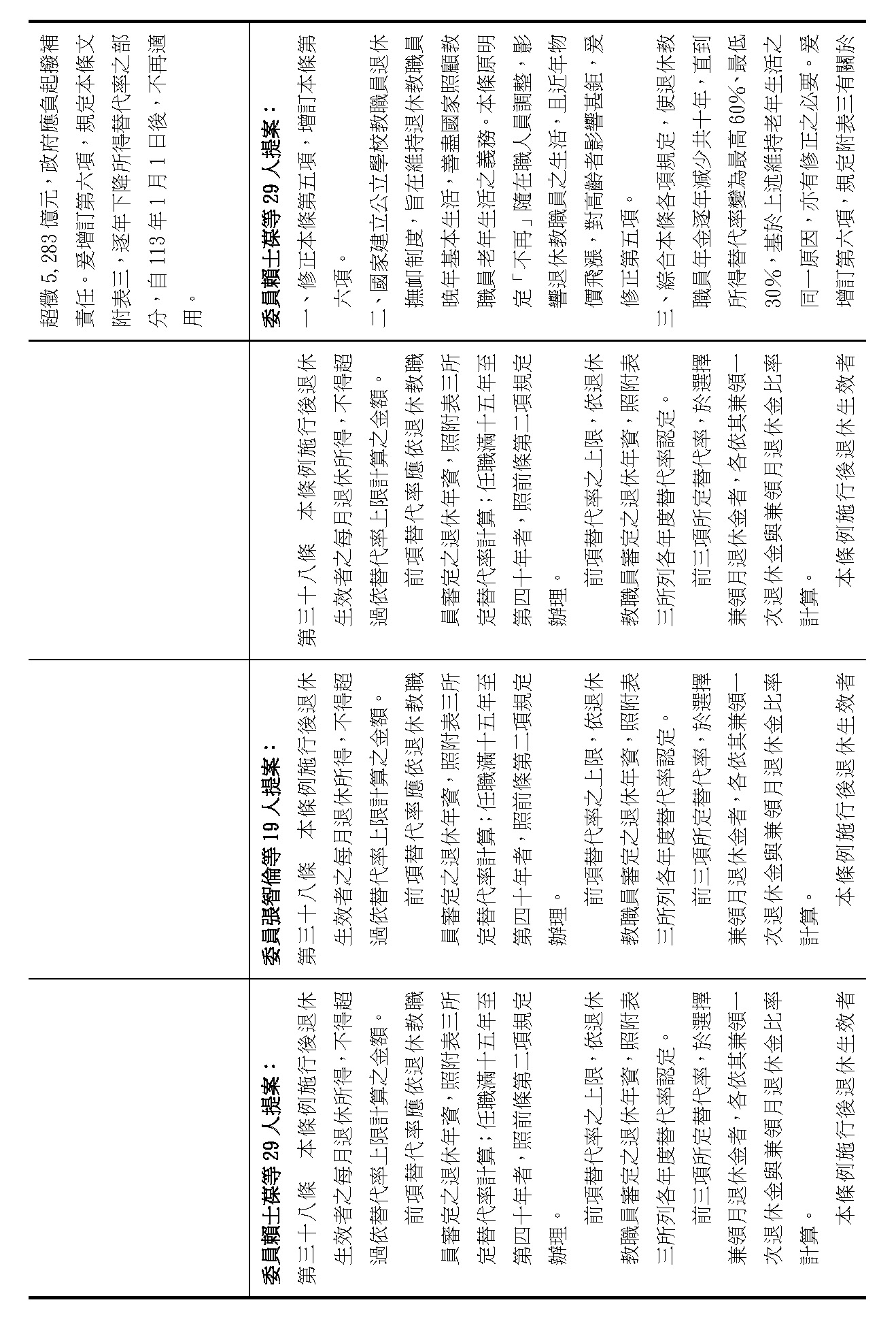 (三)委員賴士葆等29人擬具「公立學校教職員退休資遣撫卹條例第三十七條及第三十八條條文修正草案」案。