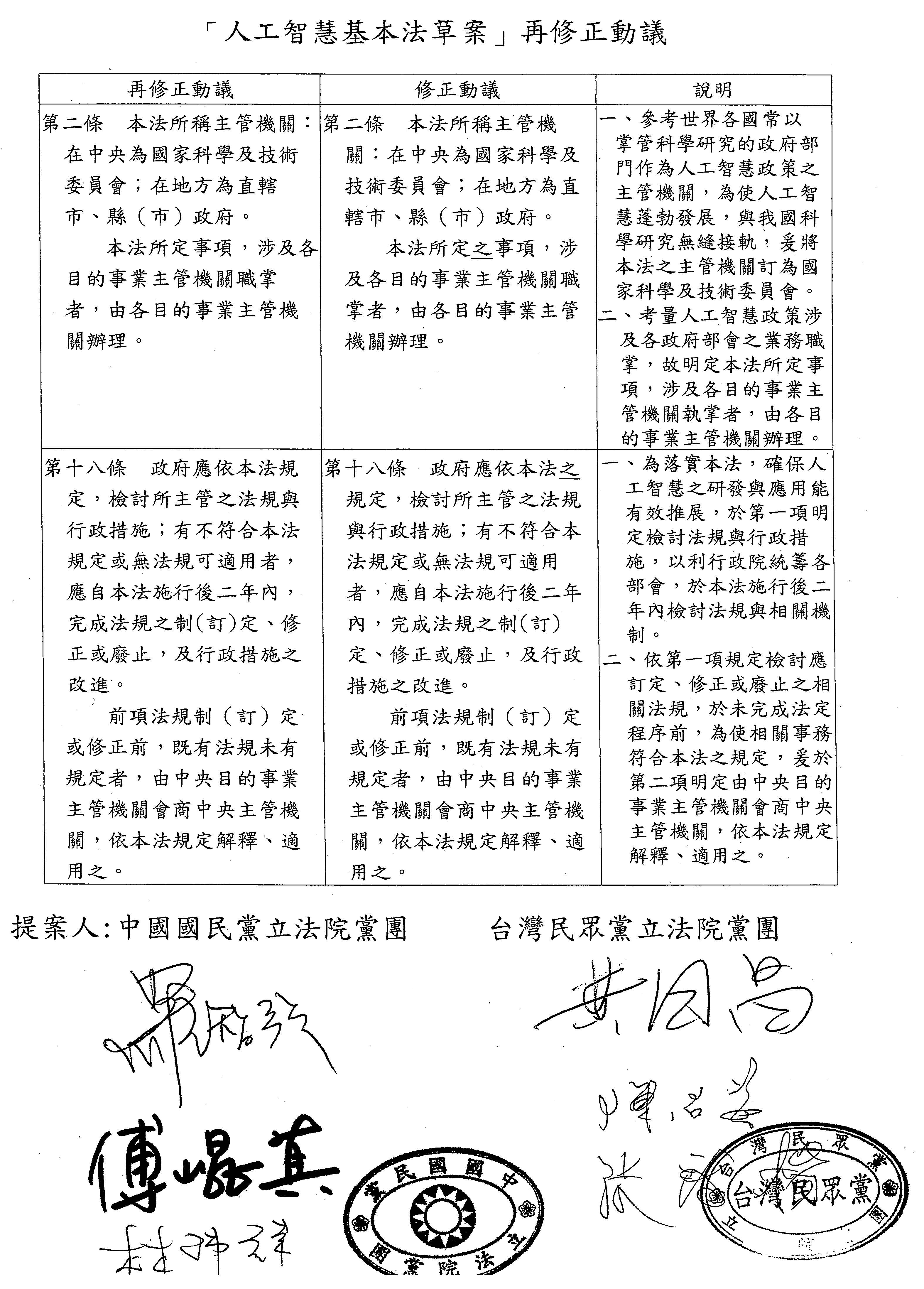 國民黨黨團、台灣民眾黨黨團共同再修正動議: