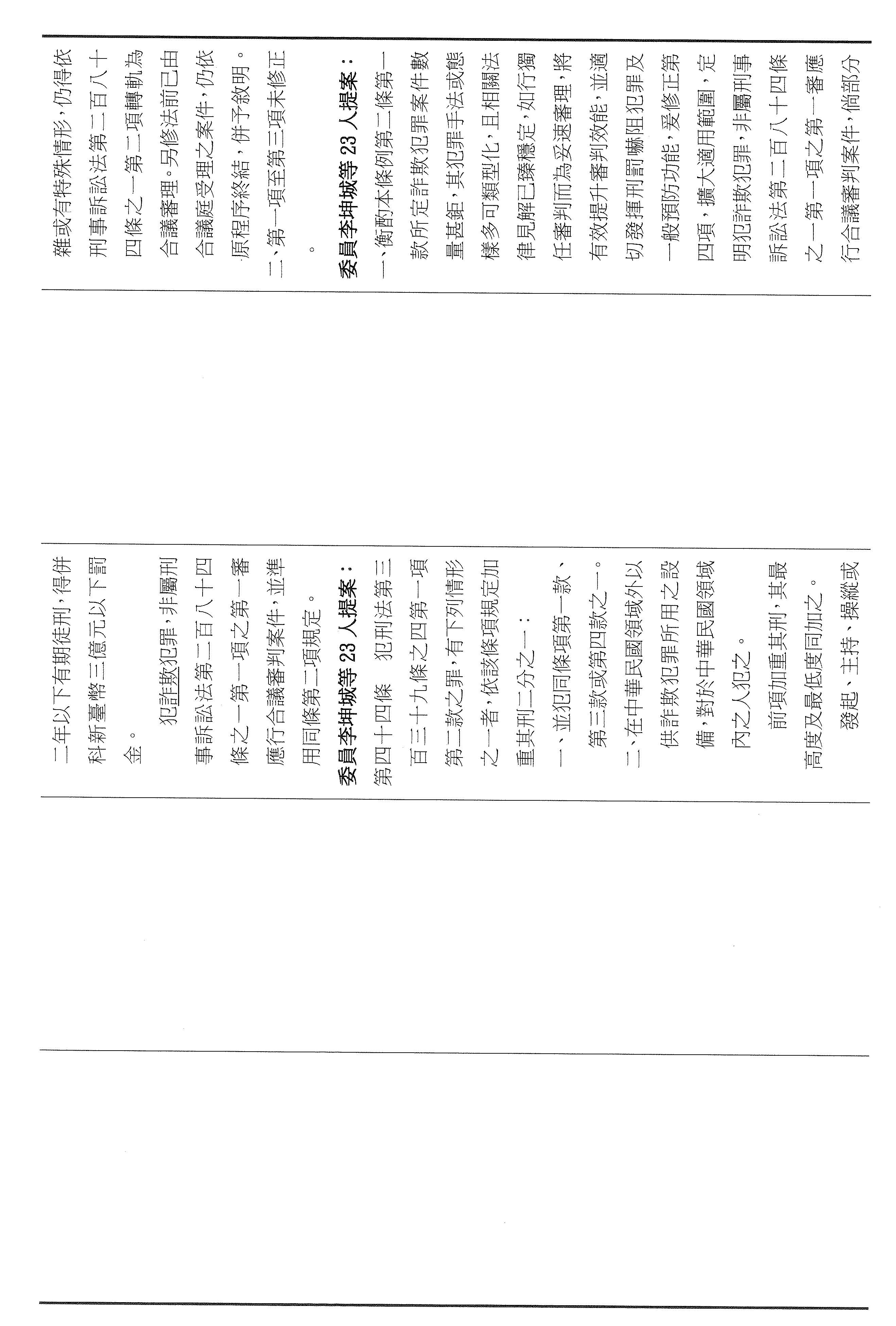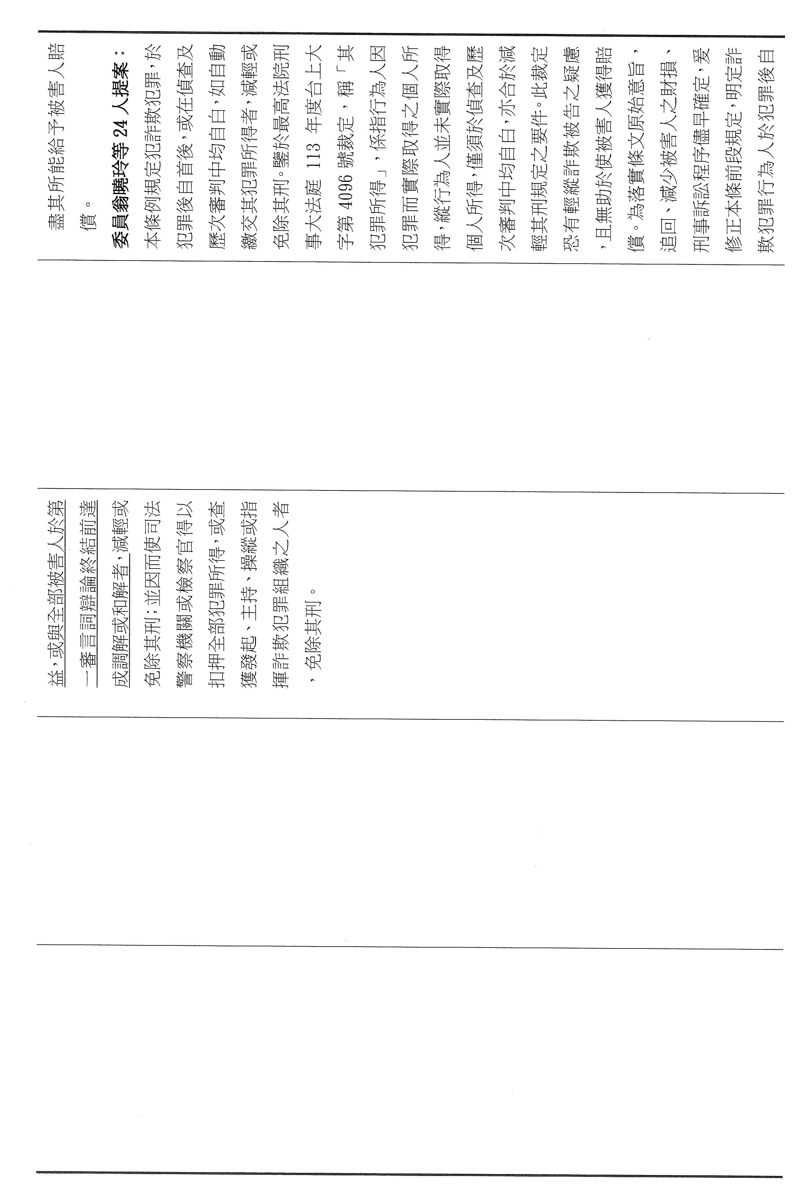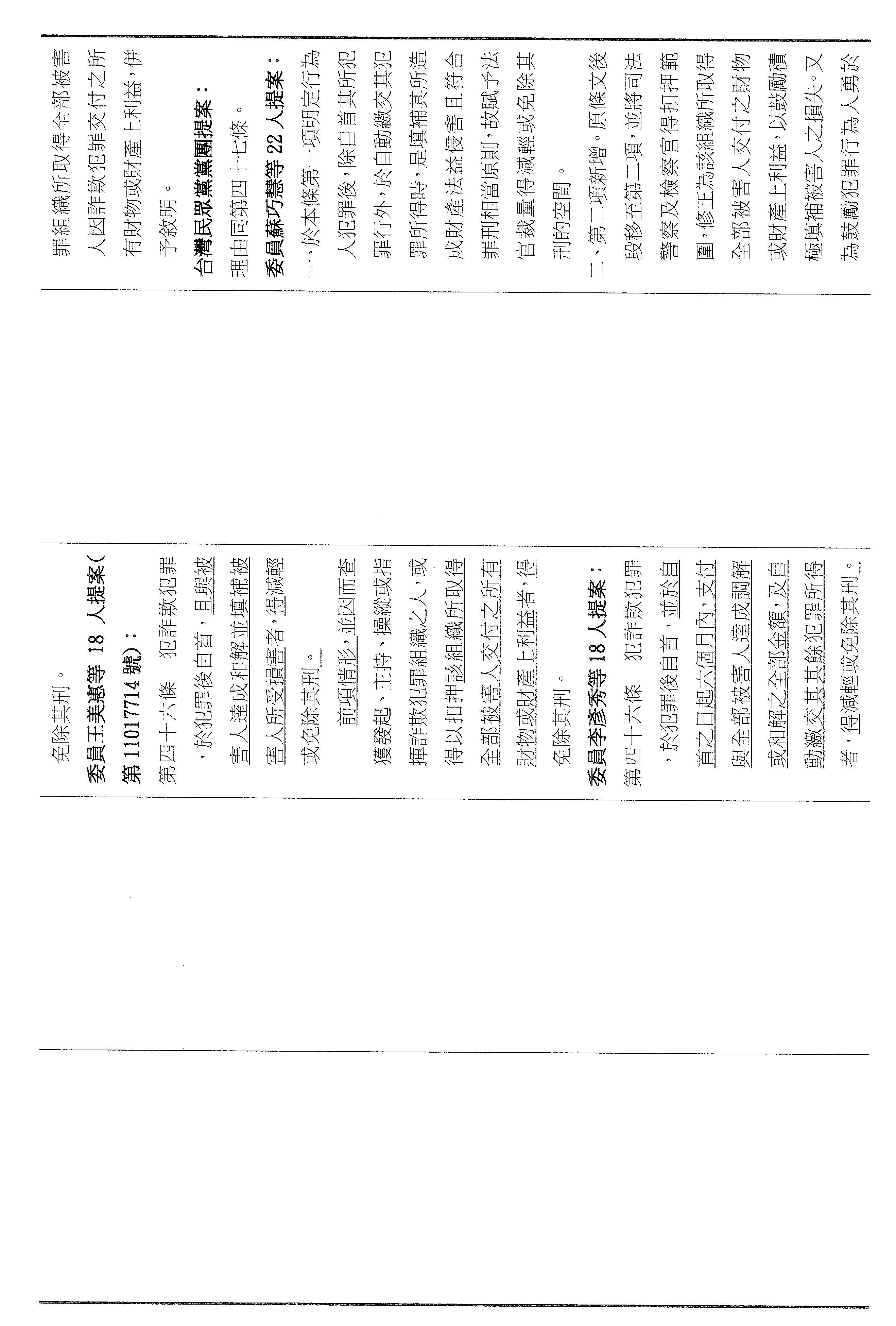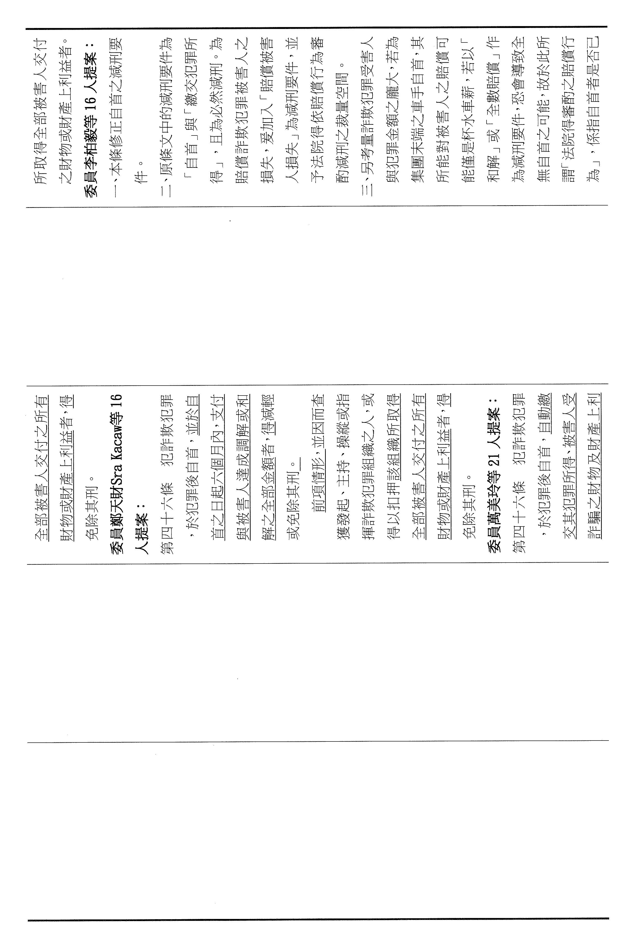 十五、繼續審查委員翁曉玲等24人擬具「詐欺犯罪危害防制條例第四十六條及第四十七條條文修正草案」案。