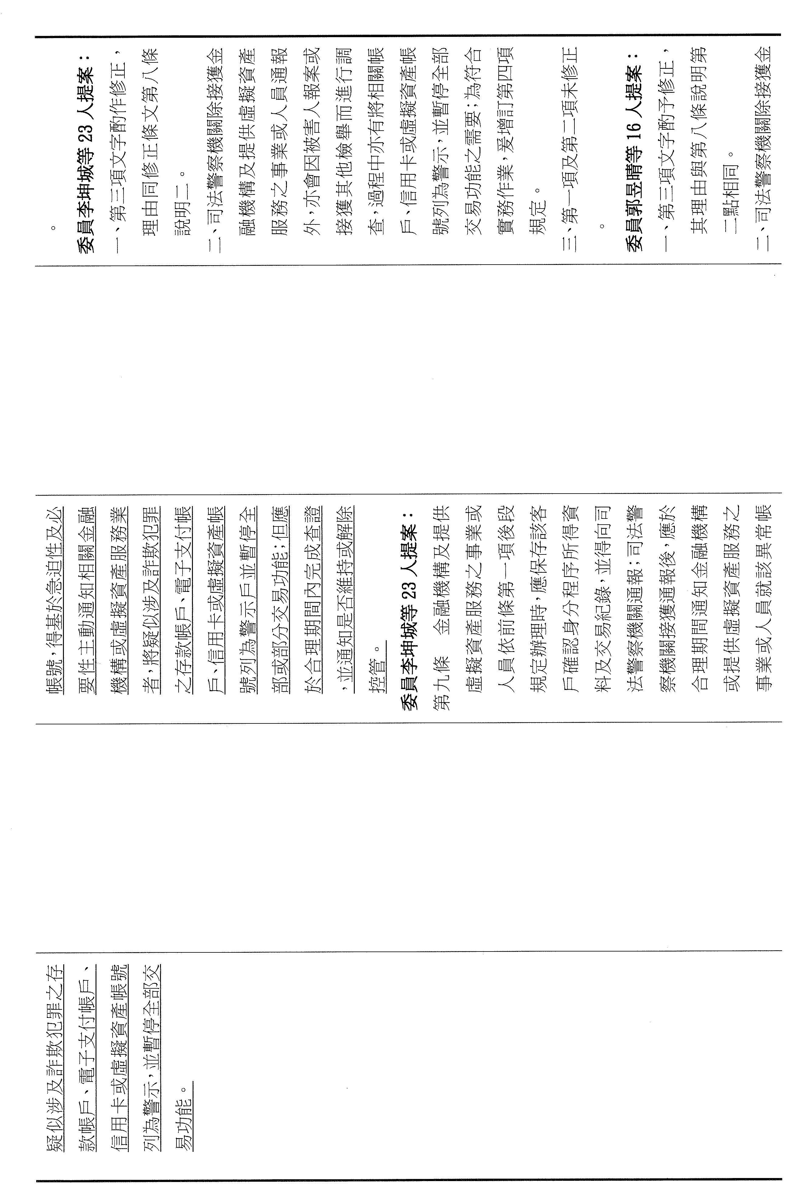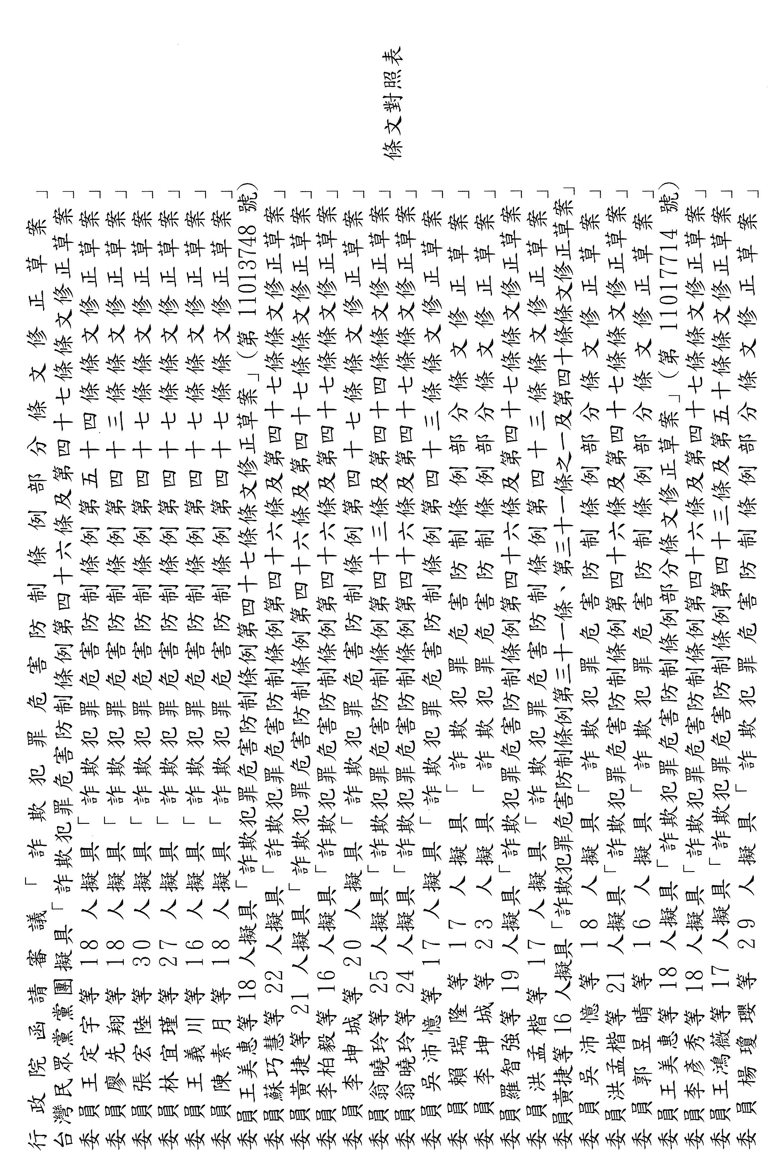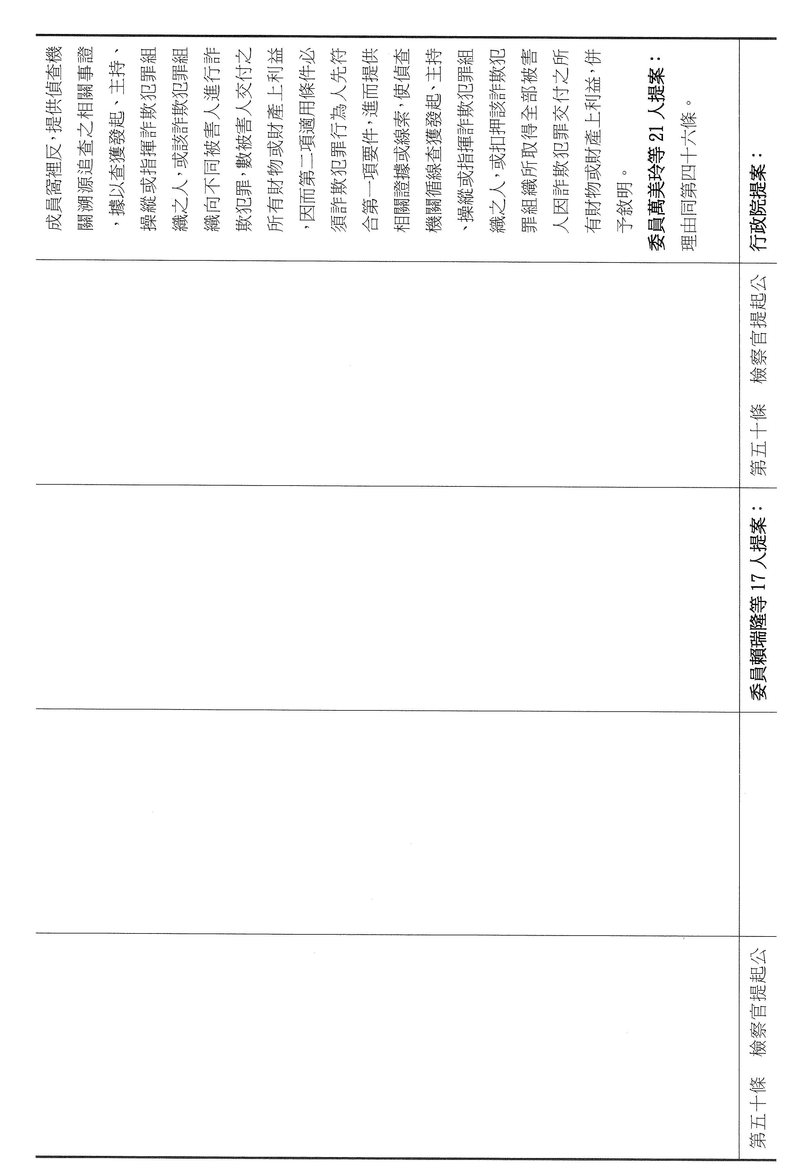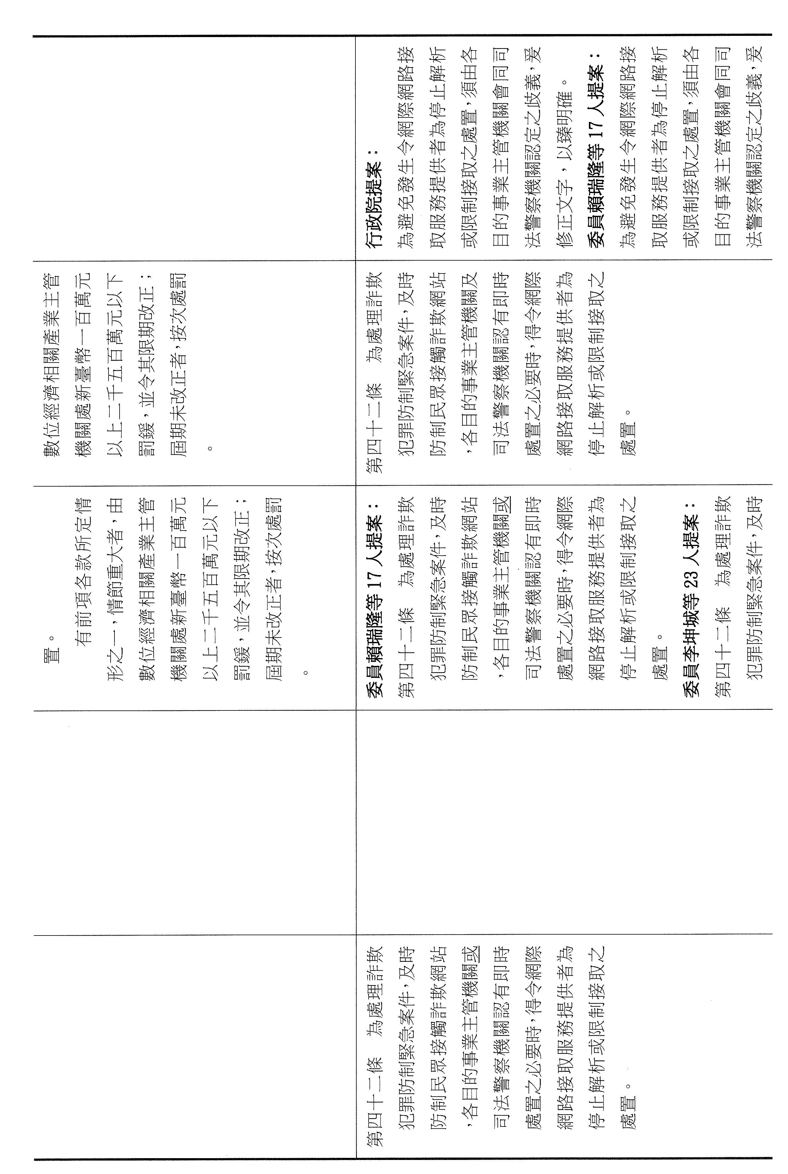 十五、繼續審查委員翁曉玲等24人擬具「詐欺犯罪危害防制條例第四十六條及第四十七條條文修正草案」案。
