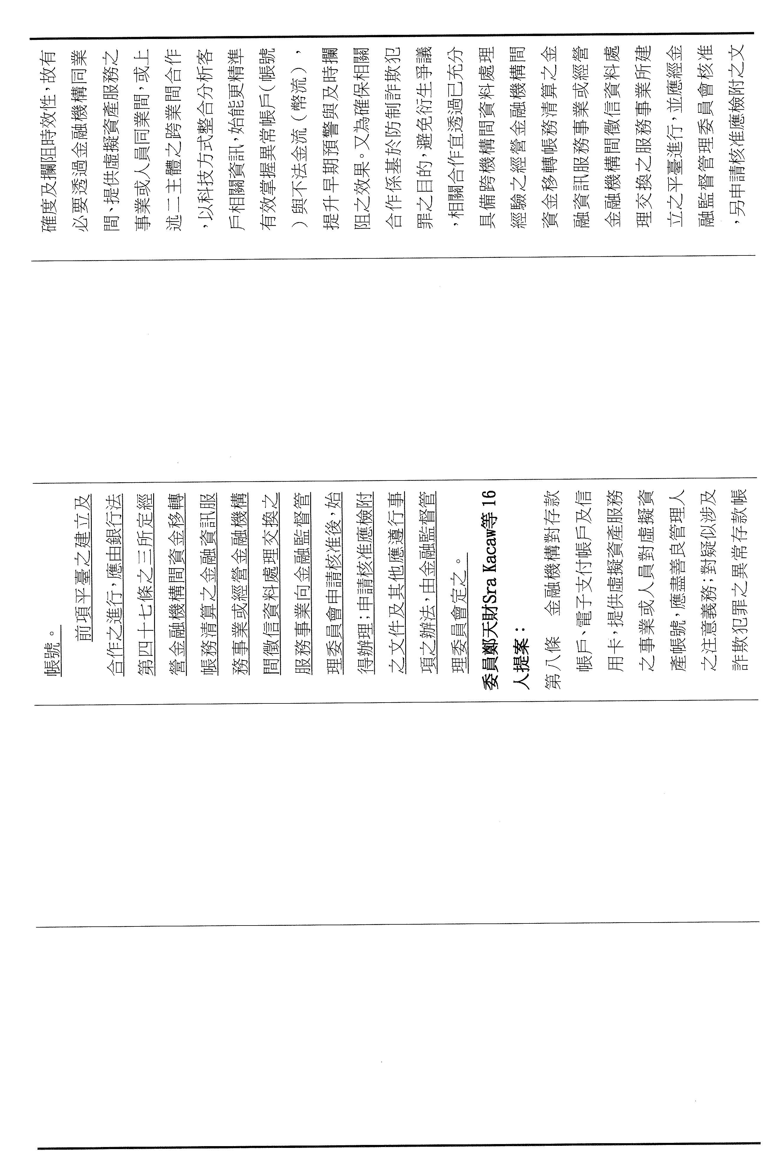 麥委員玉珍:所以我們看了第七條跟第九條的規定,是真的懷疑他們或者通報了才會凍他們的帳戶?但是他們完全不知道是怎麼回事,我是這樣子的意思。