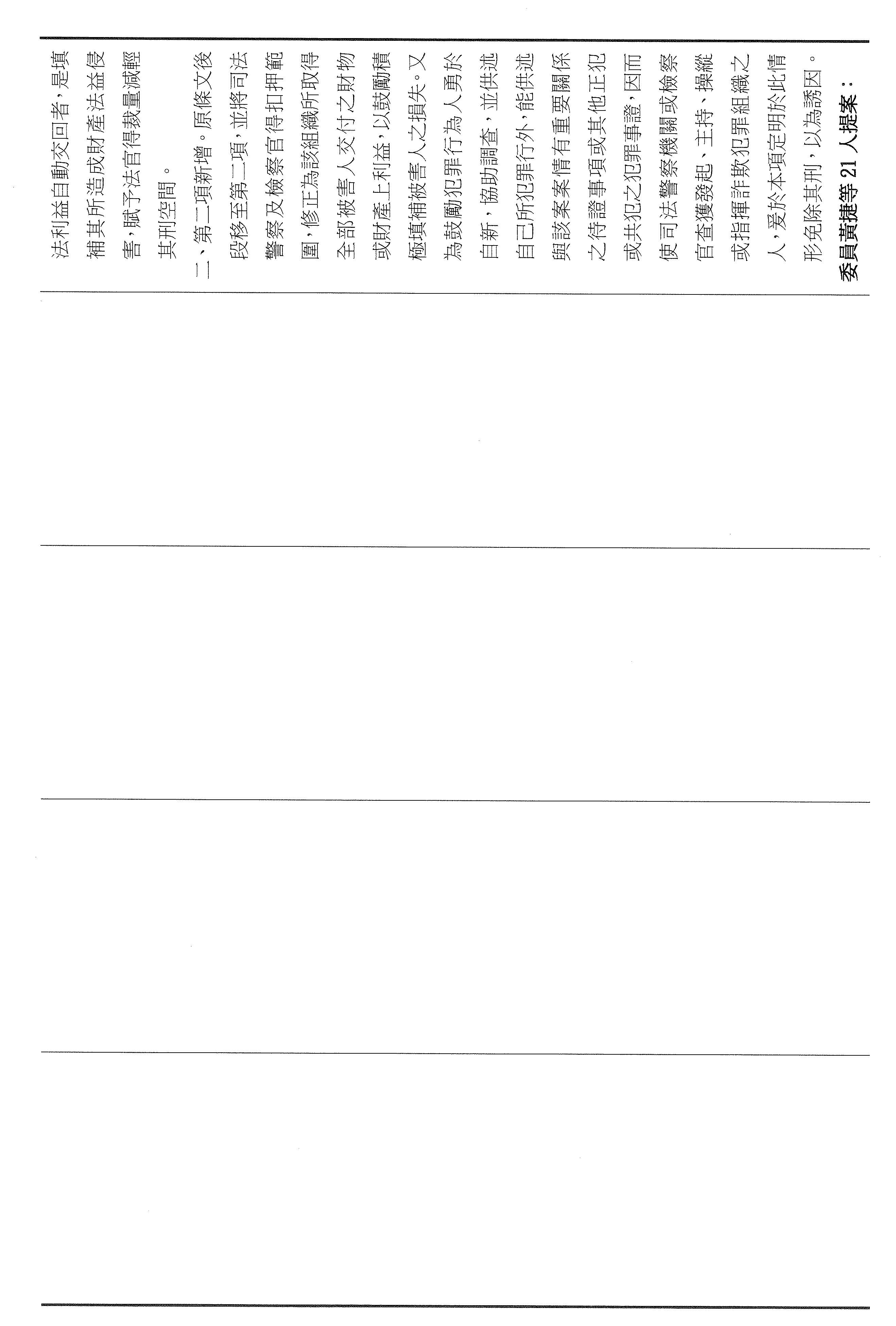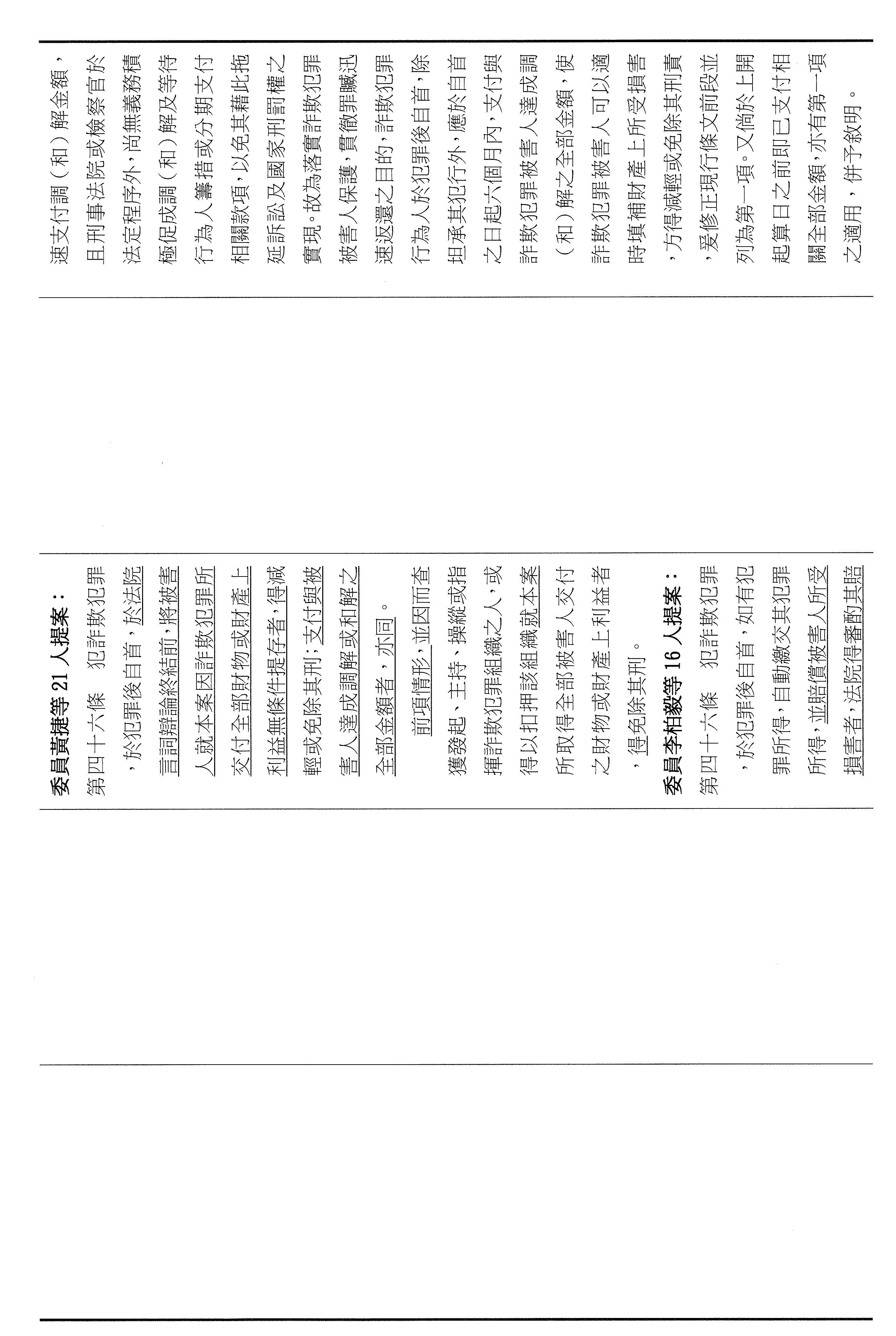 二十一、繼續審查委員黃捷等16人擬具「詐欺犯罪危害防制條例第三十一條、第三十一條之一及第四十條條文修正草案」案。