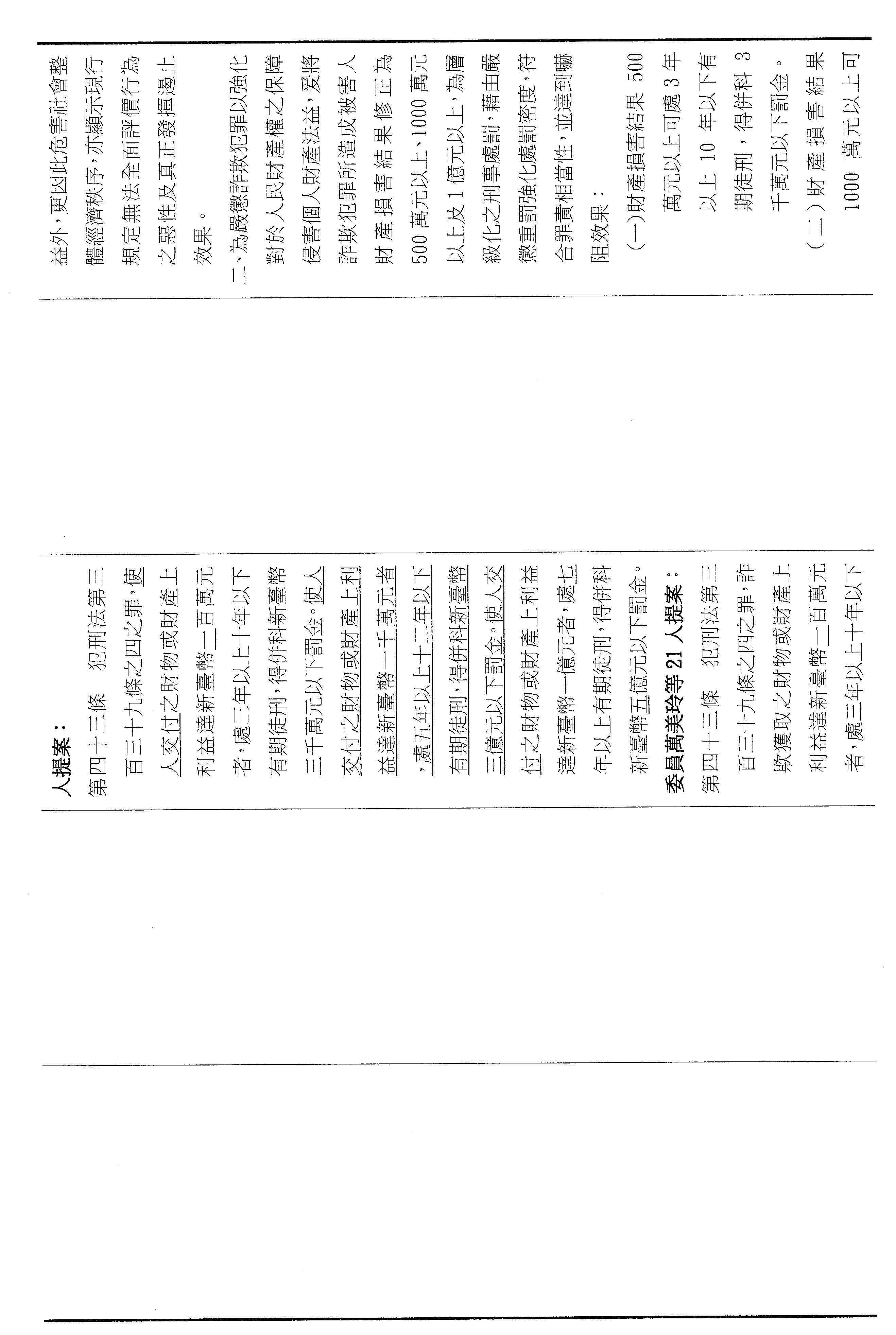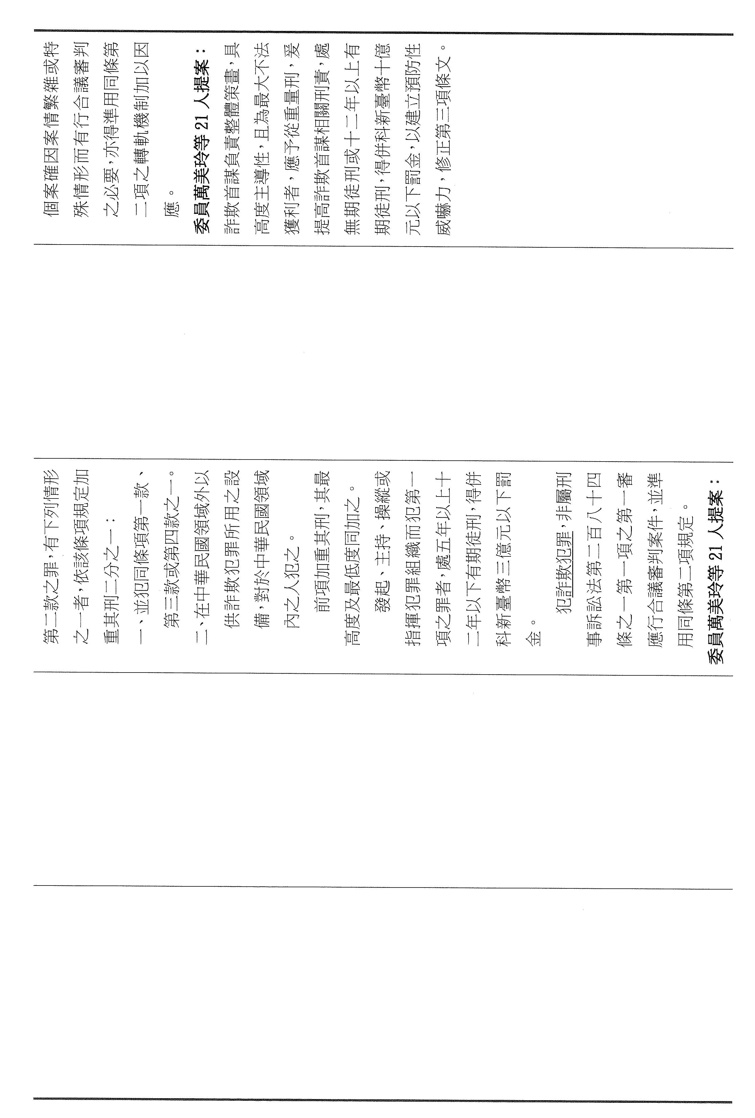 三十四、審查委員萬美玲等21人擬具「詐欺犯罪危害防制條例部分條文修正草案」案。