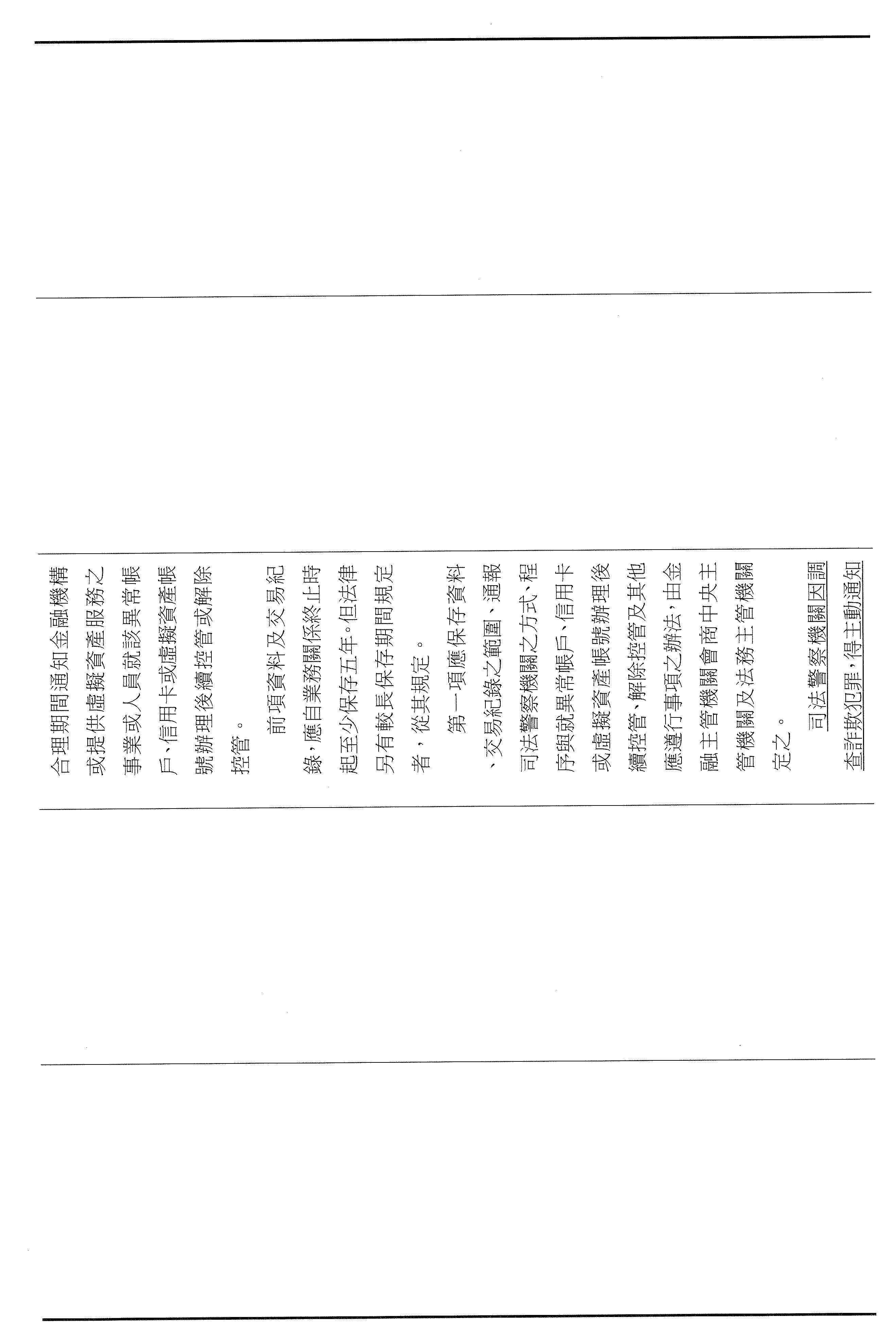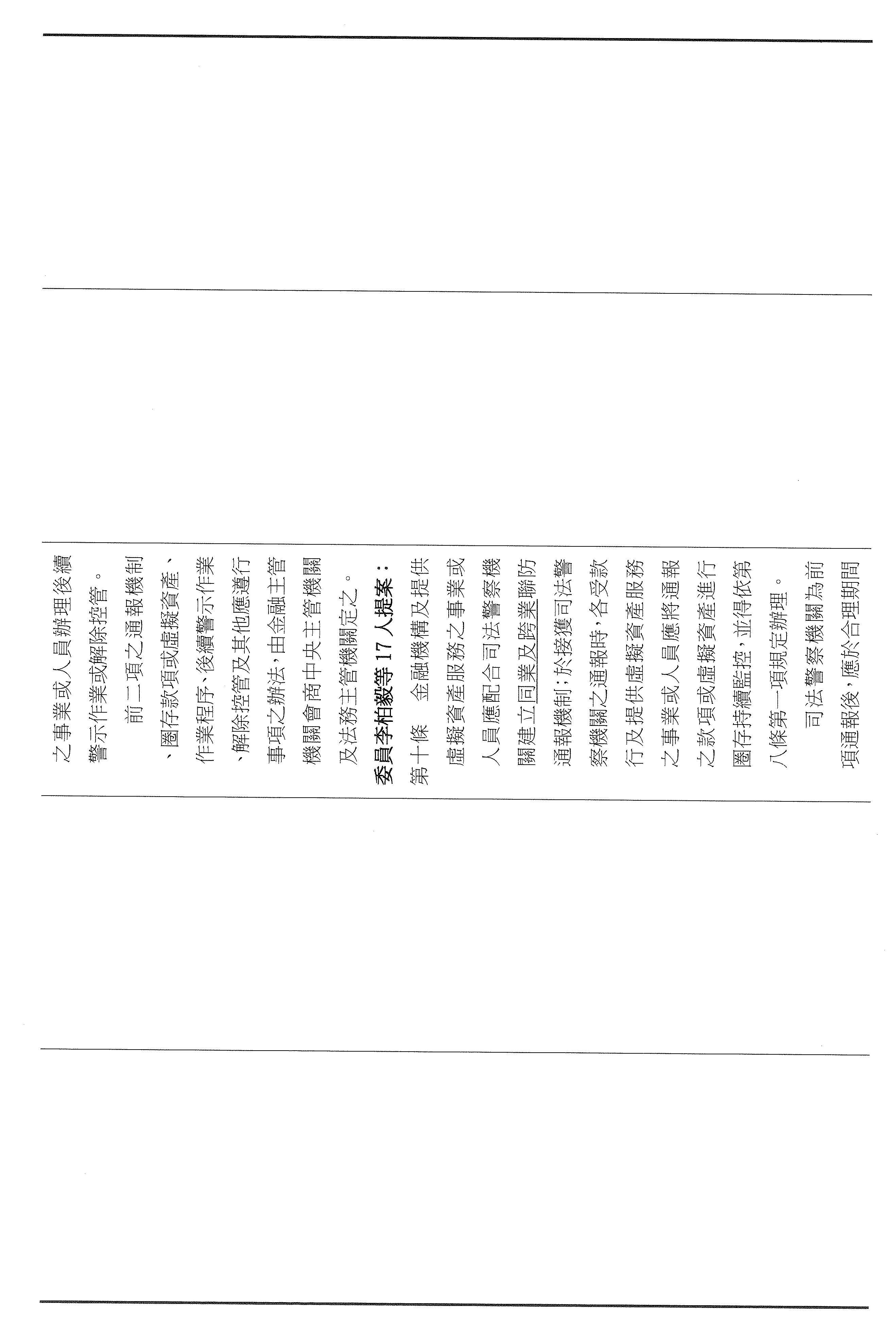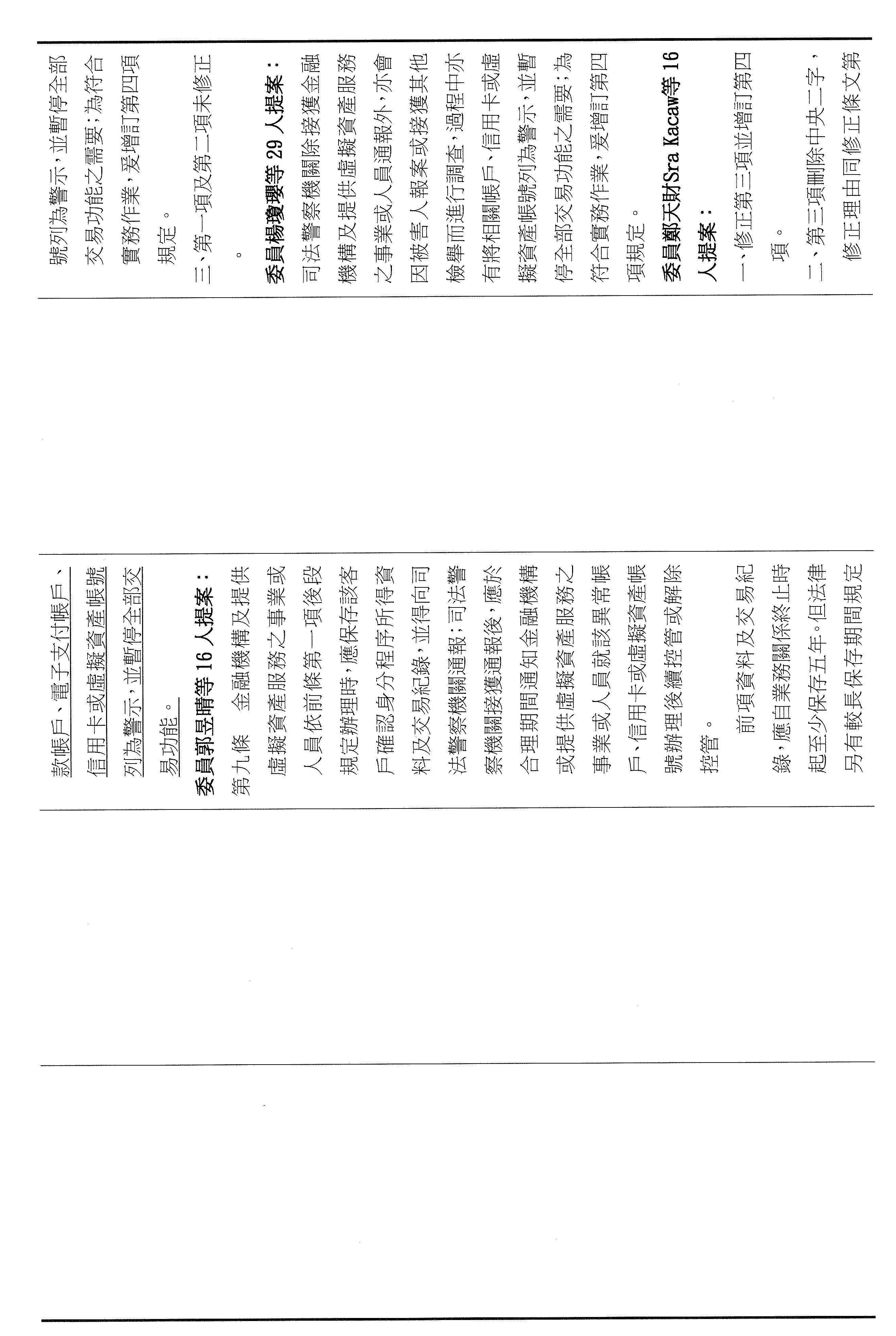第九條的部分,其實就是剛剛跟委員報告的,這個部分是針對已經報案的涉詐帳戶,我們要把它警示,以上。