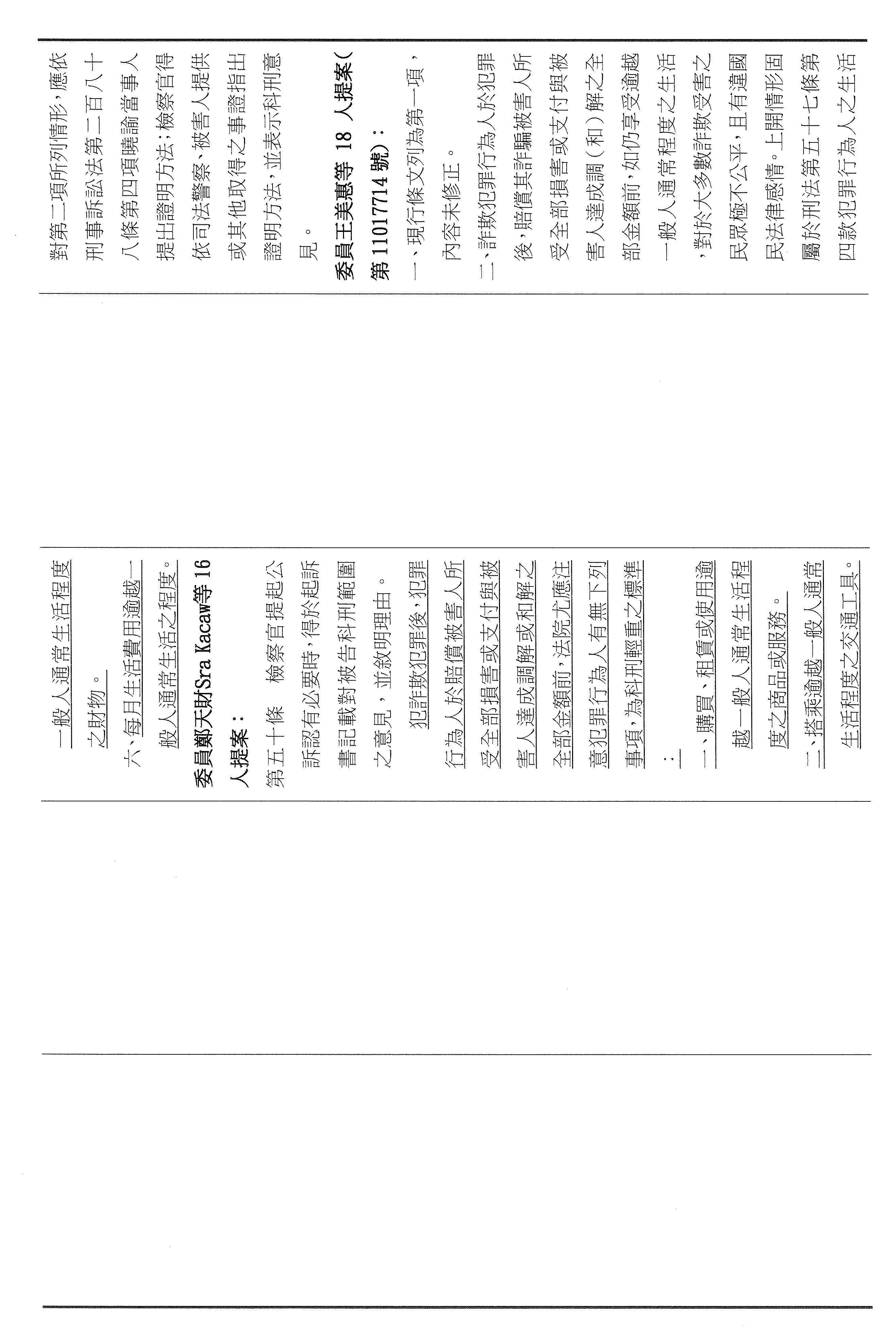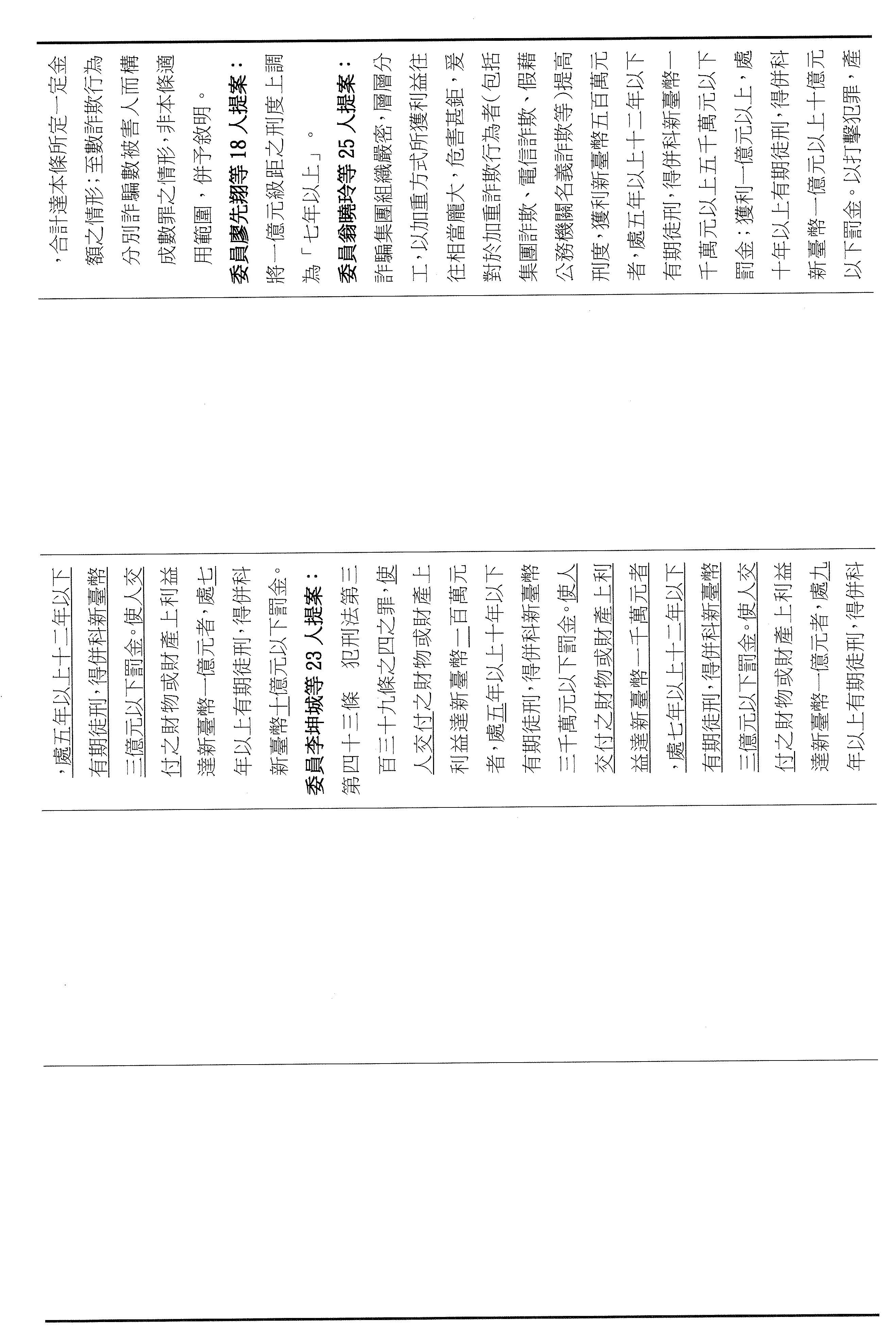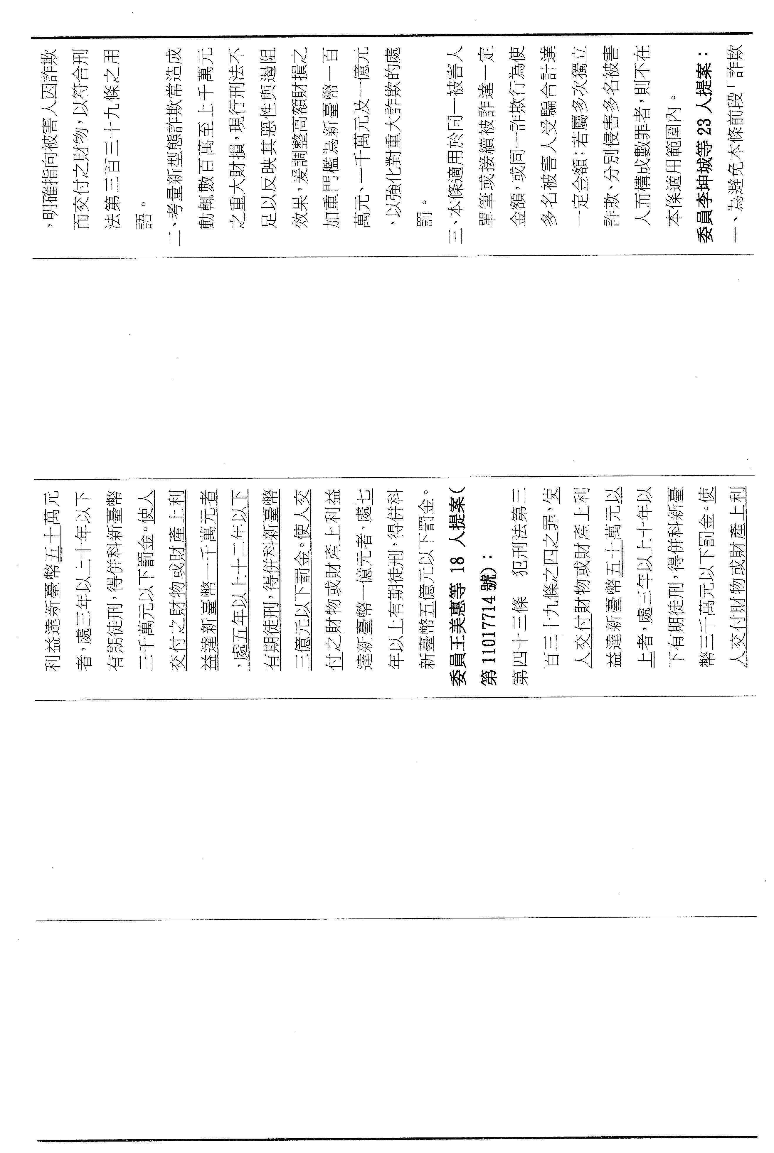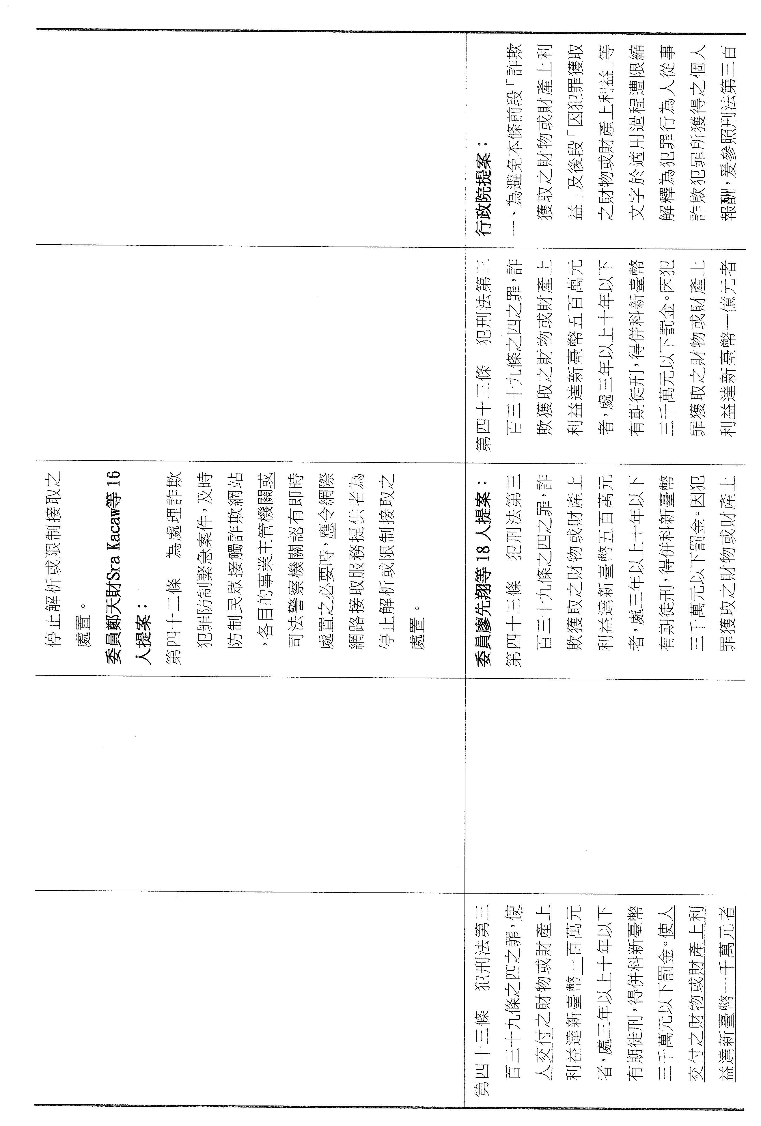三、繼續審查委員廖先翔等18人擬具「詐欺犯罪危害防制條例第四十三條條文修正草案」案。