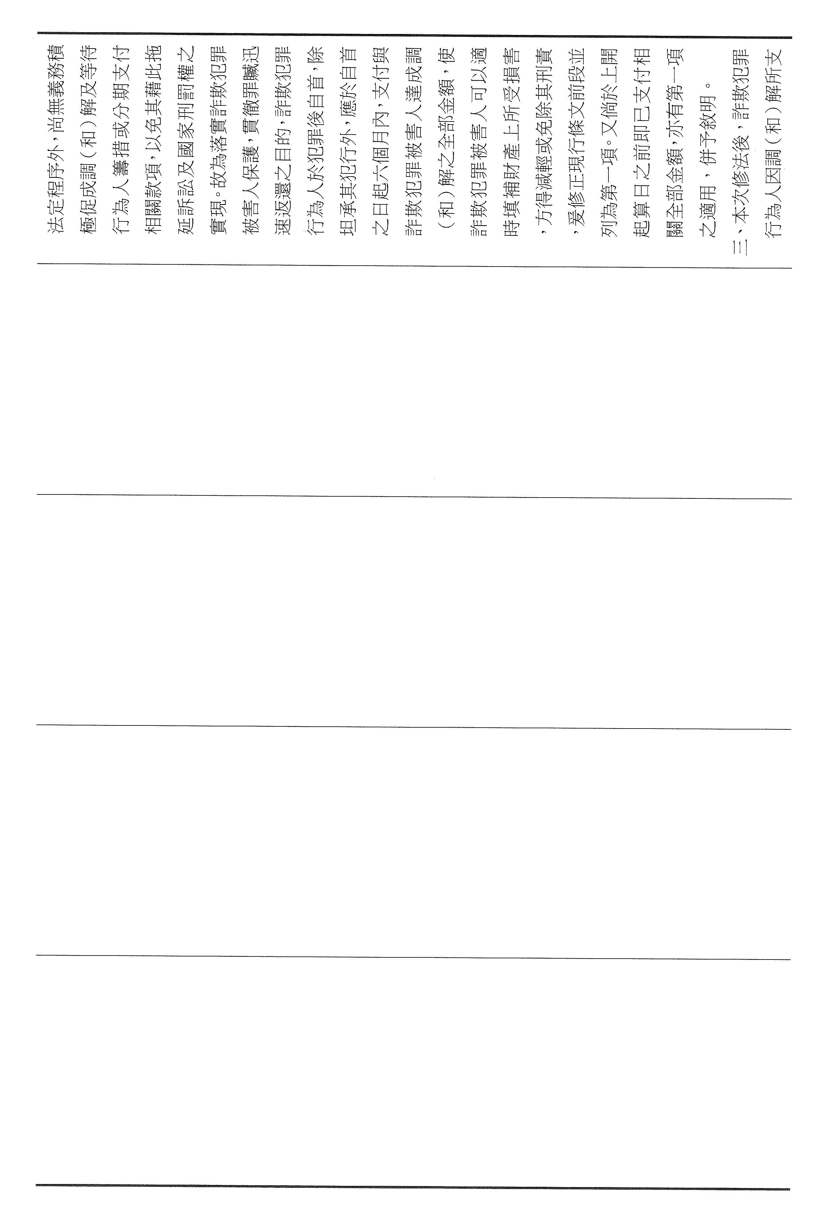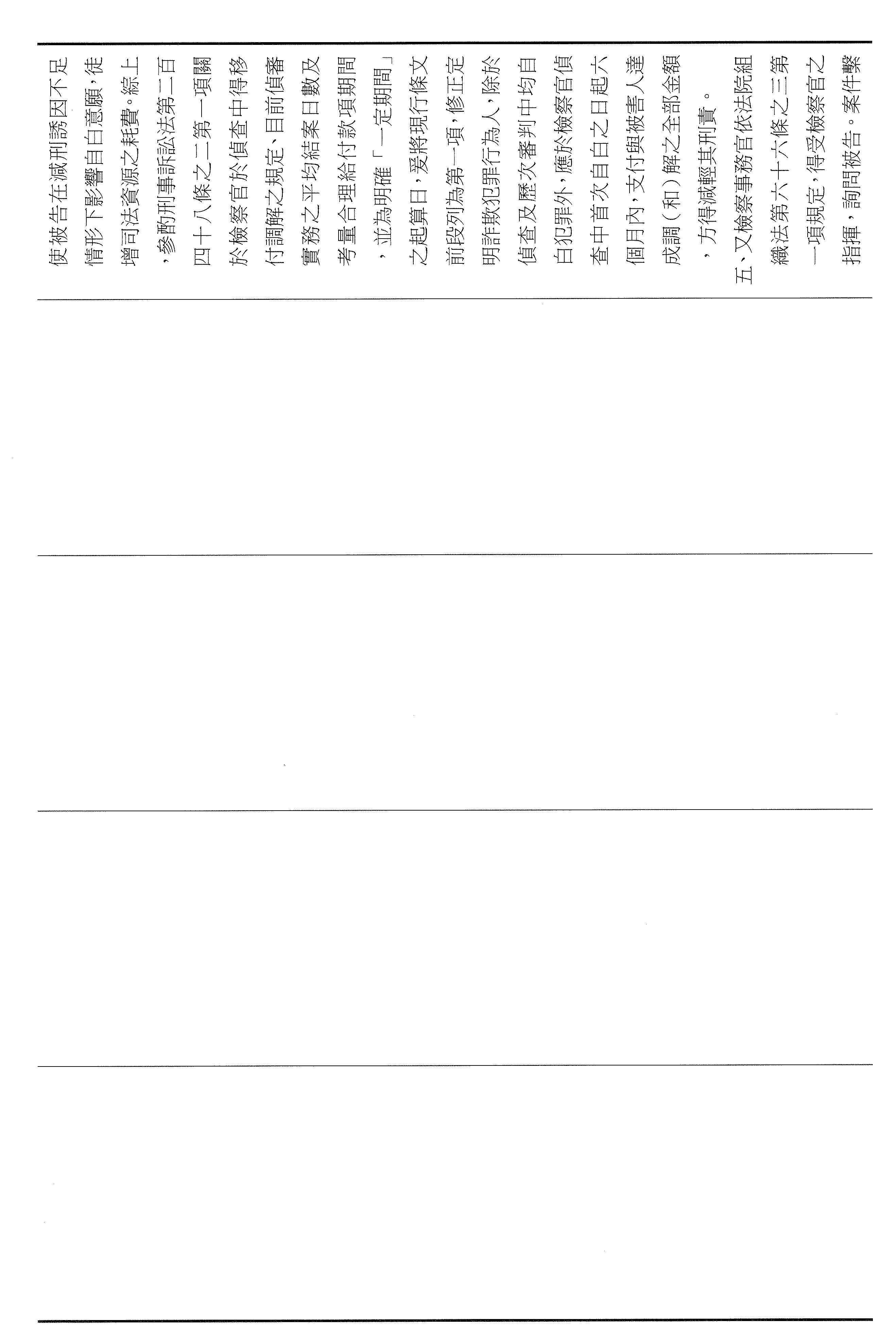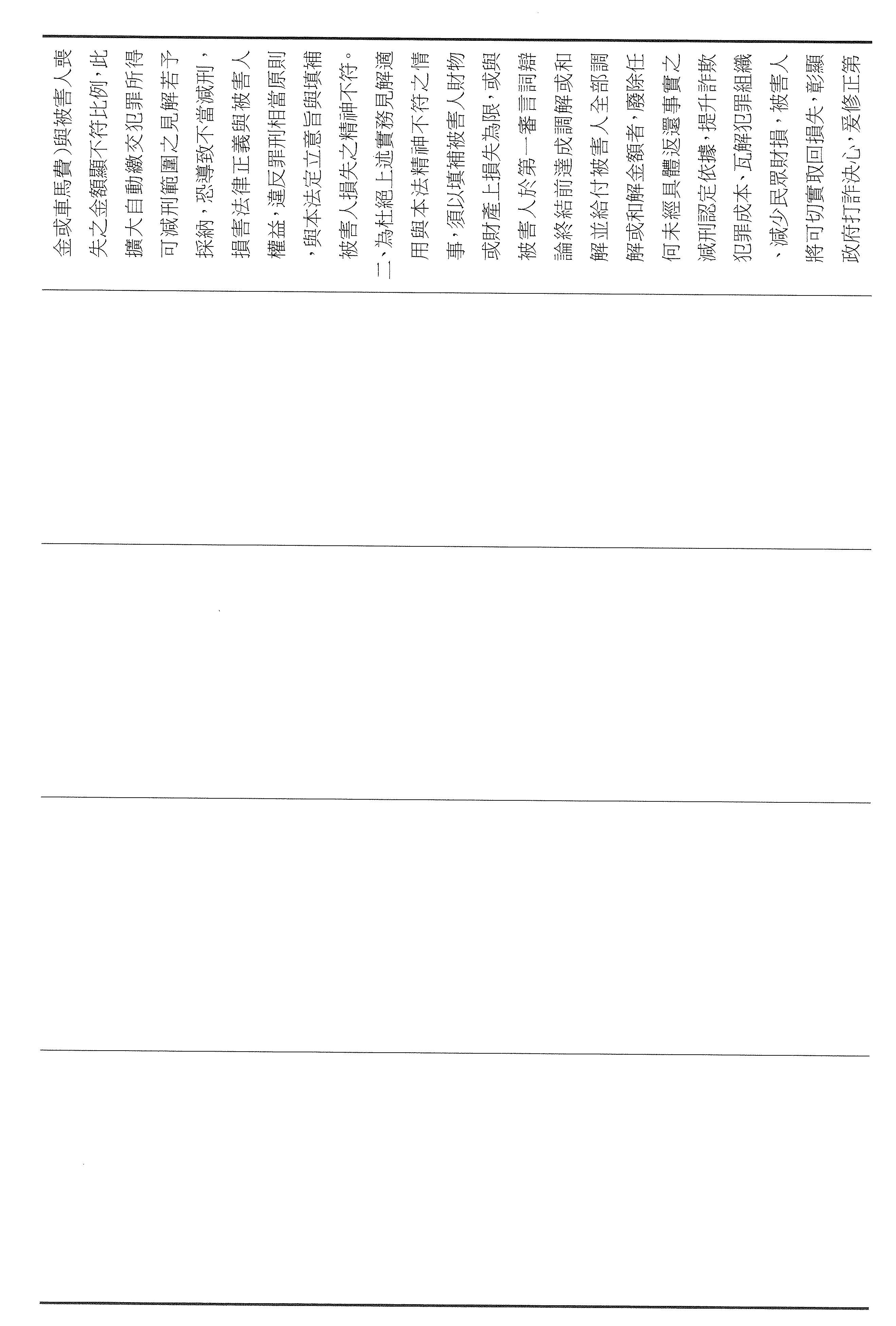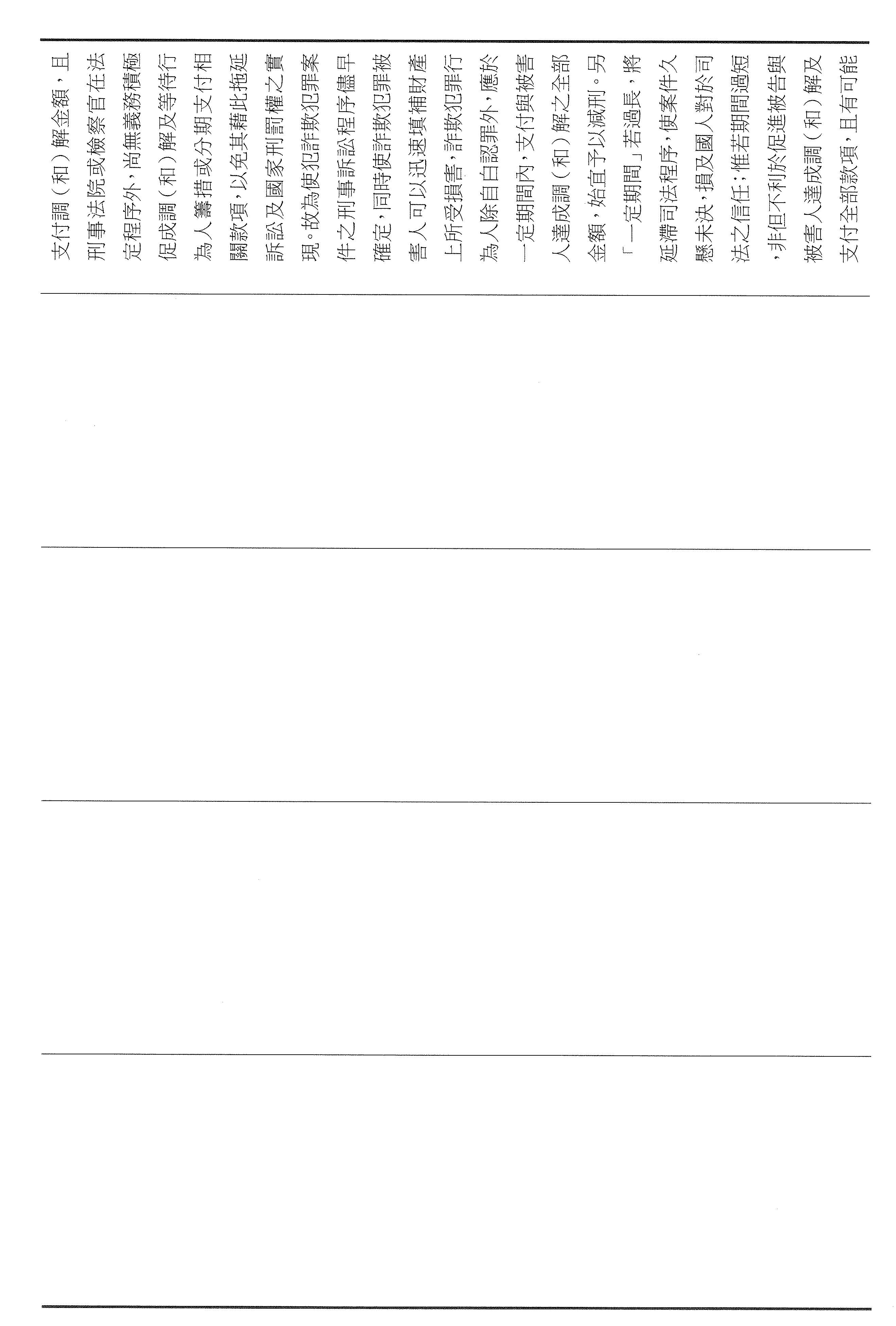 本席這次提案以彌補損害為軸心,將減刑要件具體化、期限化,並把重點從抽象的犯罪所得拉回到可驗證的補償行為,避免行為人以未實際取得財物為由推託返還。其中第四十六條明定,行為人犯罪後自首,應於自首之日起六個月內支付與被害人達成調解與和解的全部金額,始得減輕或免除其刑。第四十七條亦明定,行為人在偵查或歷次審判中均自白者,應於檢察官偵查中首次自白之日起六個月支付前述的全部金額,始得減輕其刑。以明確的期限,避免訴訟程序因等待籌款而一再地拖延,也讓減刑不再只是口頭的表態,而是能夠以實際的全額補償來換取。