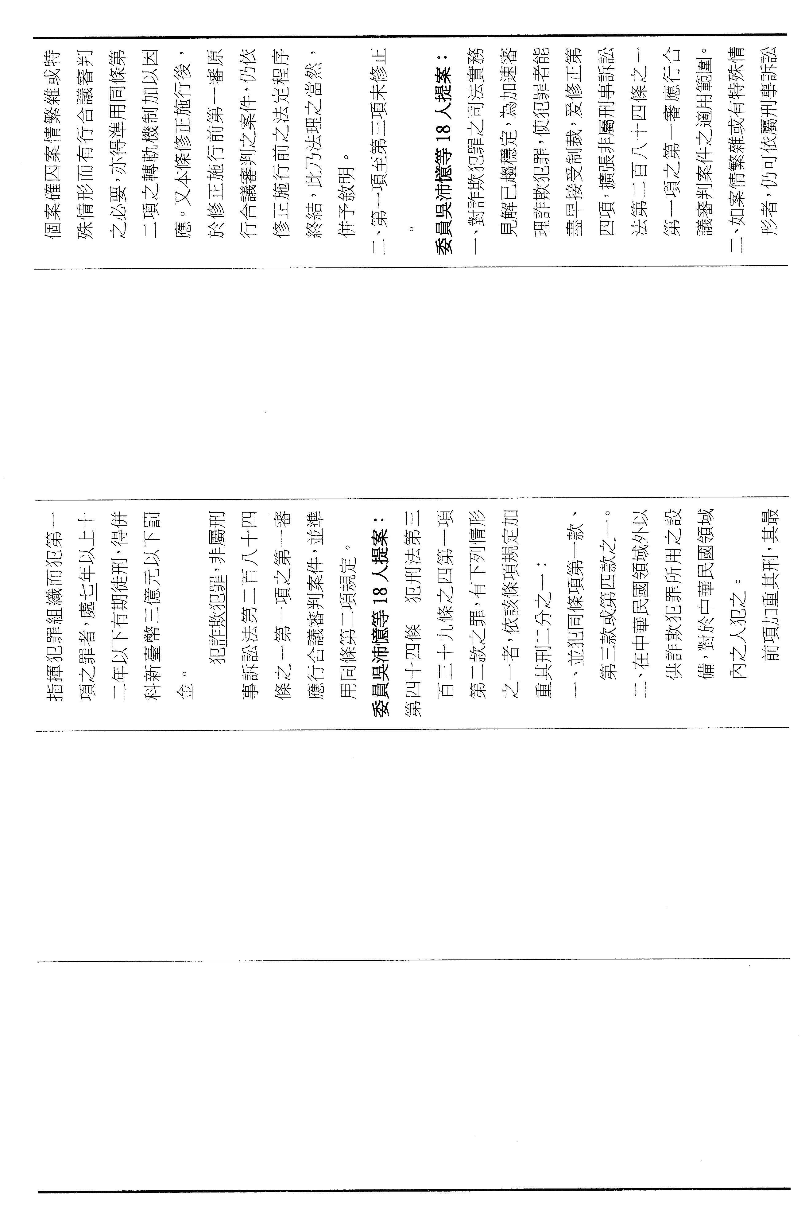 二、繼續審查委員王定宇等18人擬具「詐欺犯罪危害防制條例第五十四條條文修正草案」案。