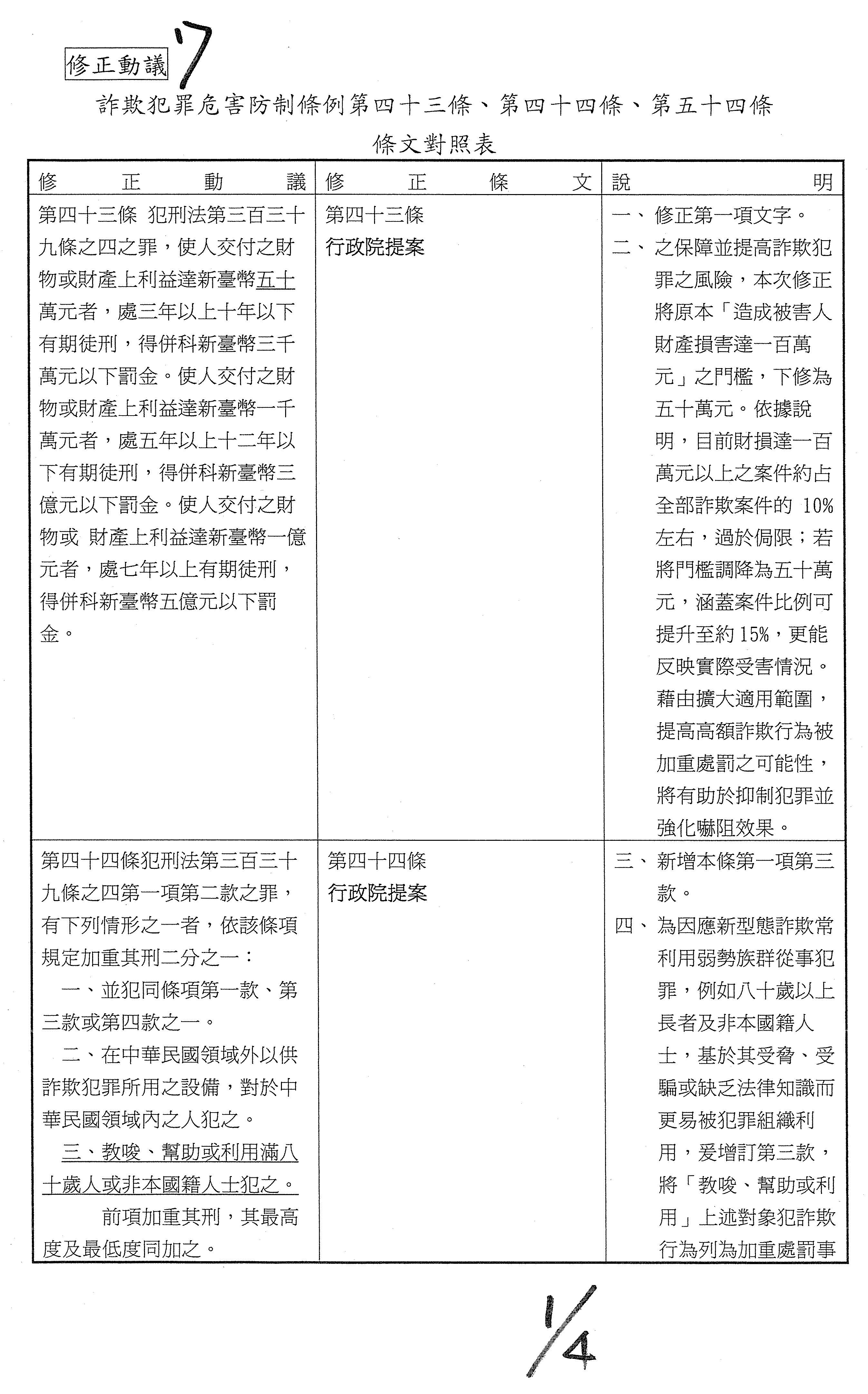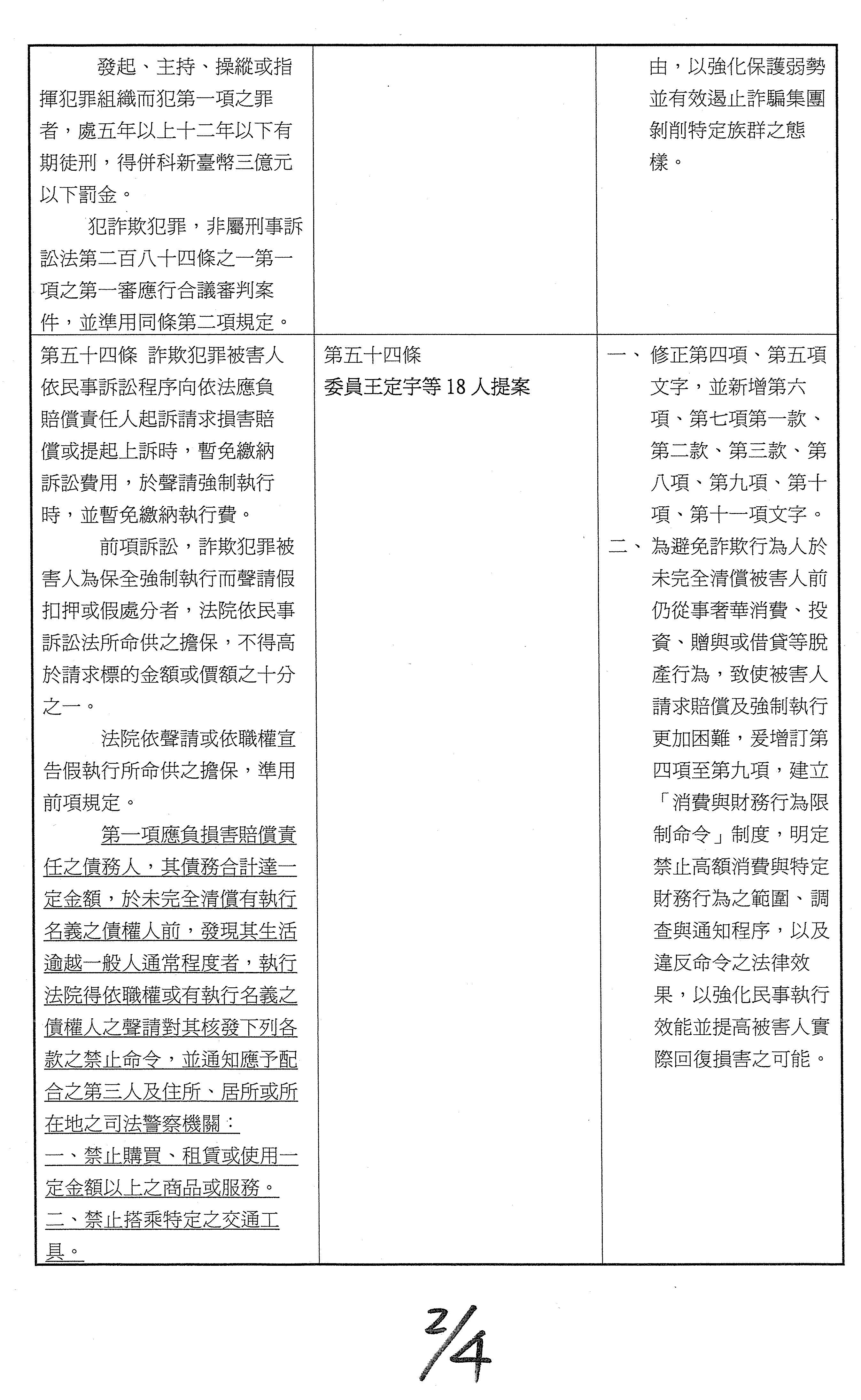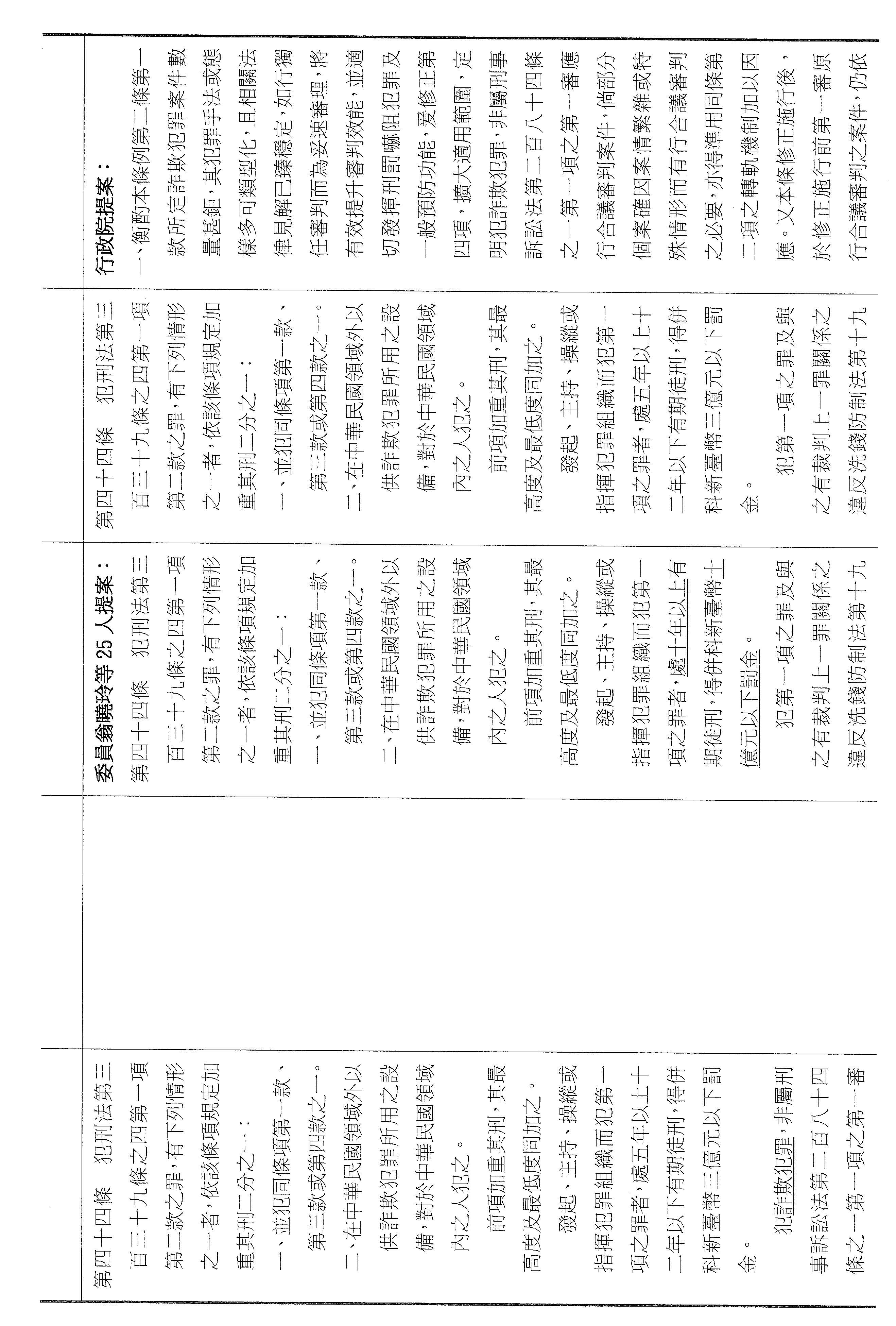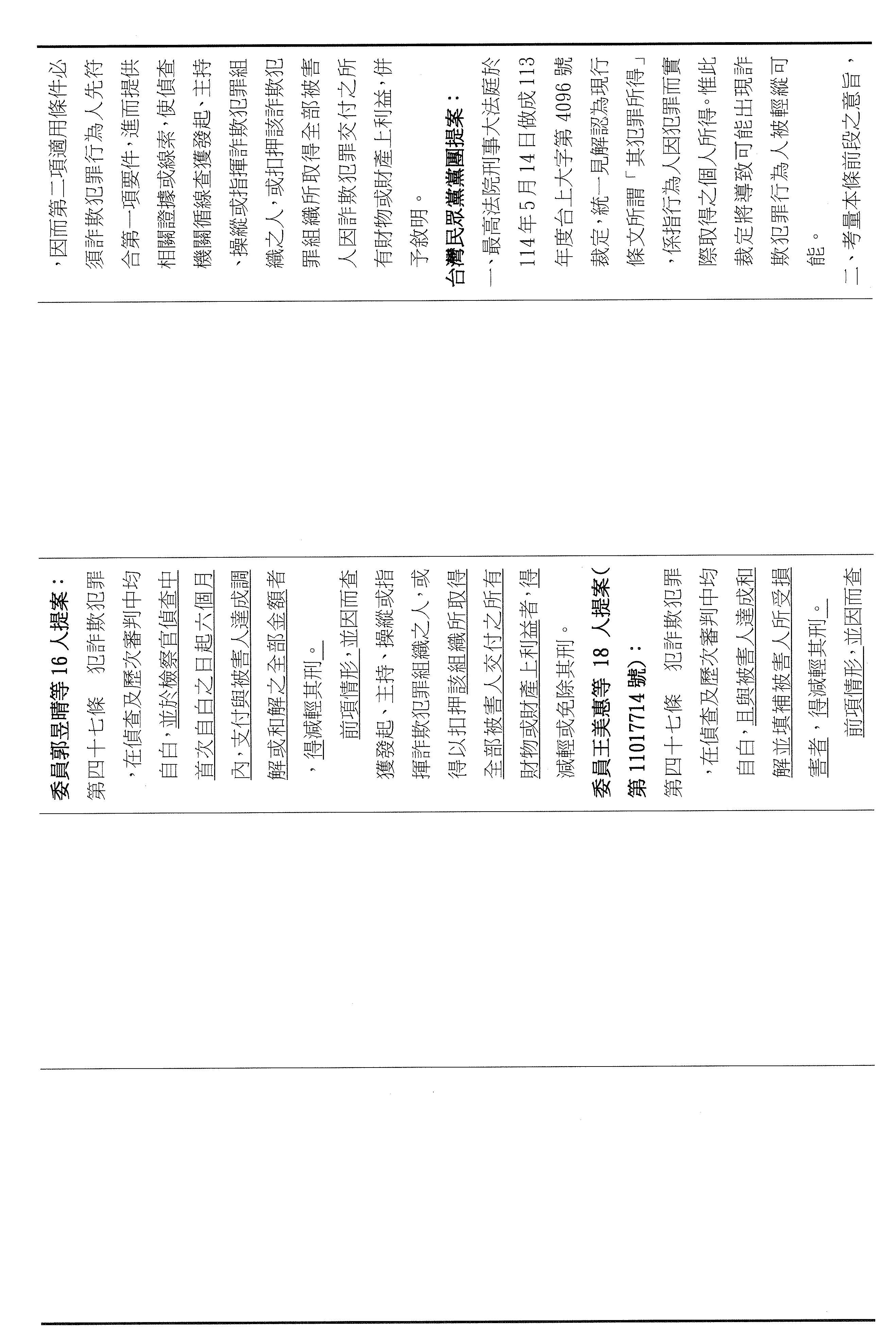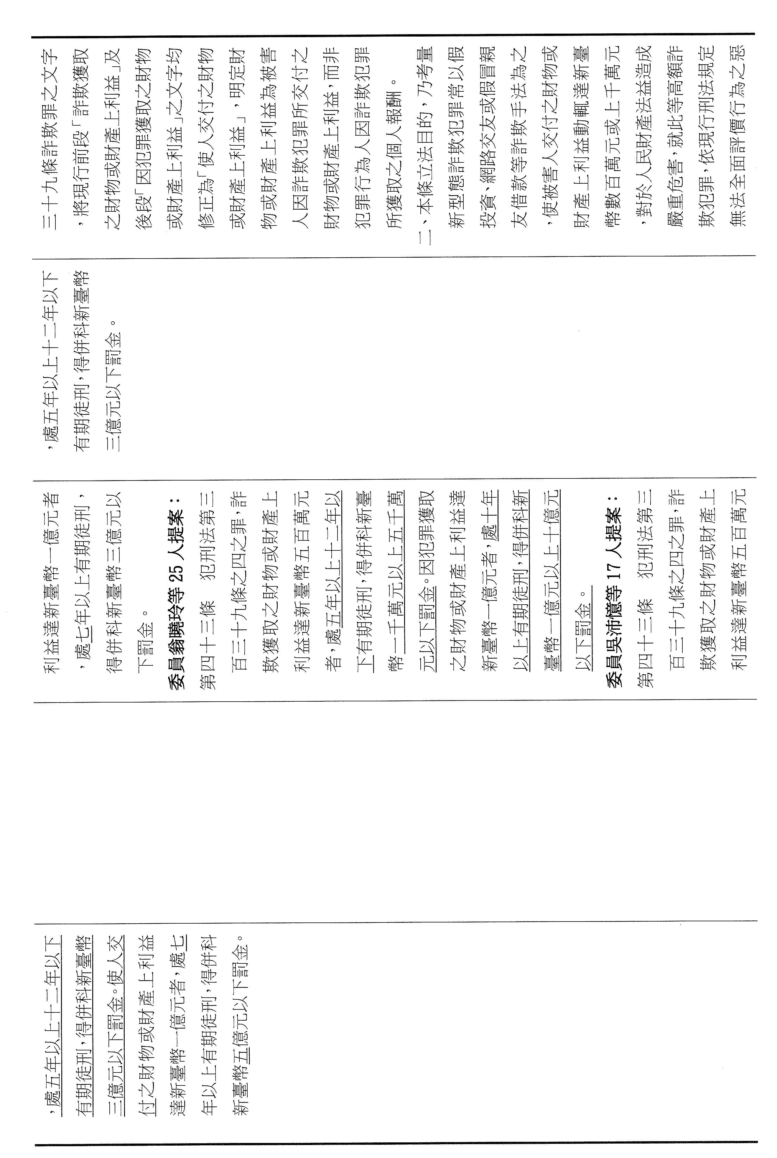 十四、繼續審查委員翁曉玲等25人擬具「詐欺犯罪危害防制條例第四十三條及第四十四條條文修正草案」案。
