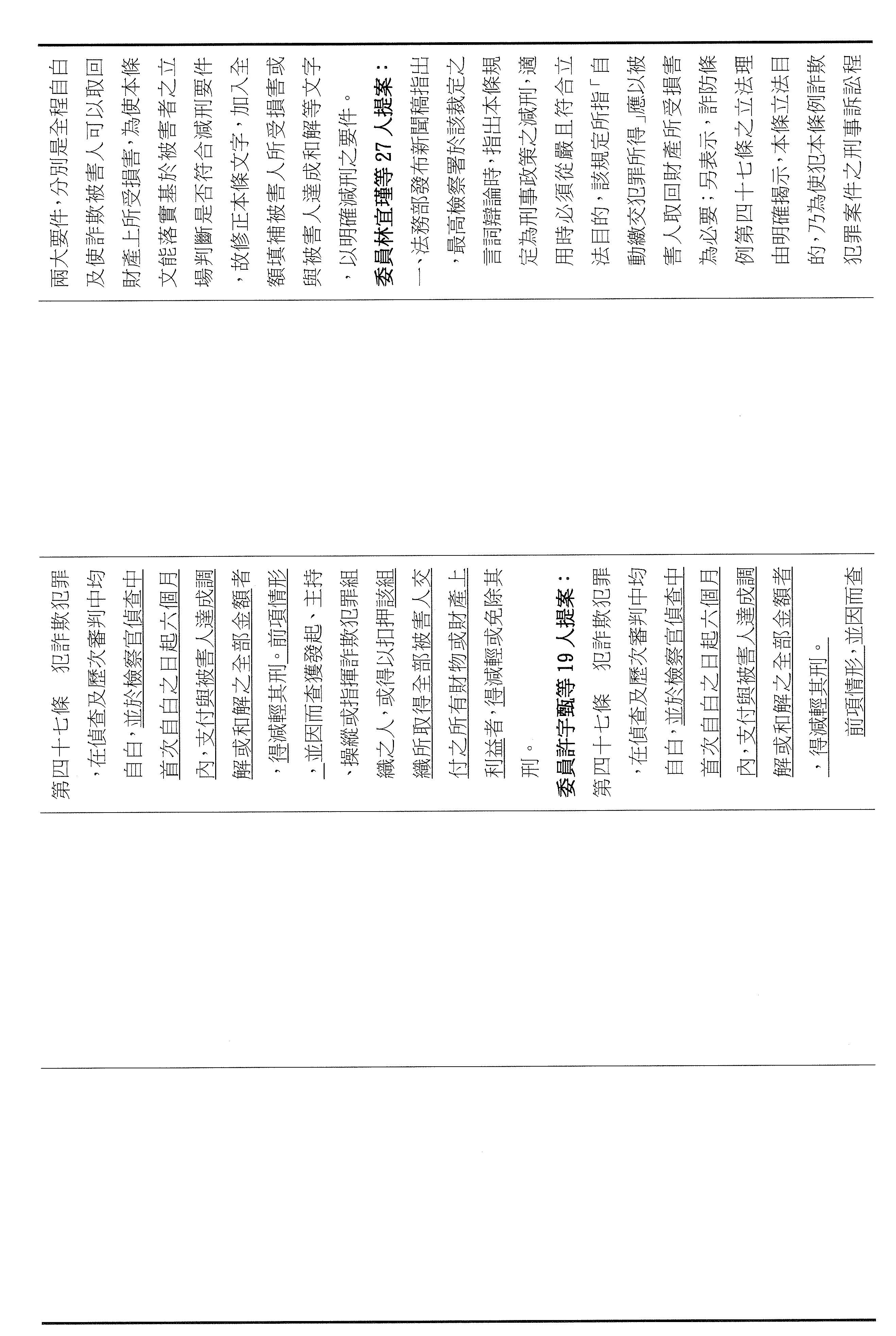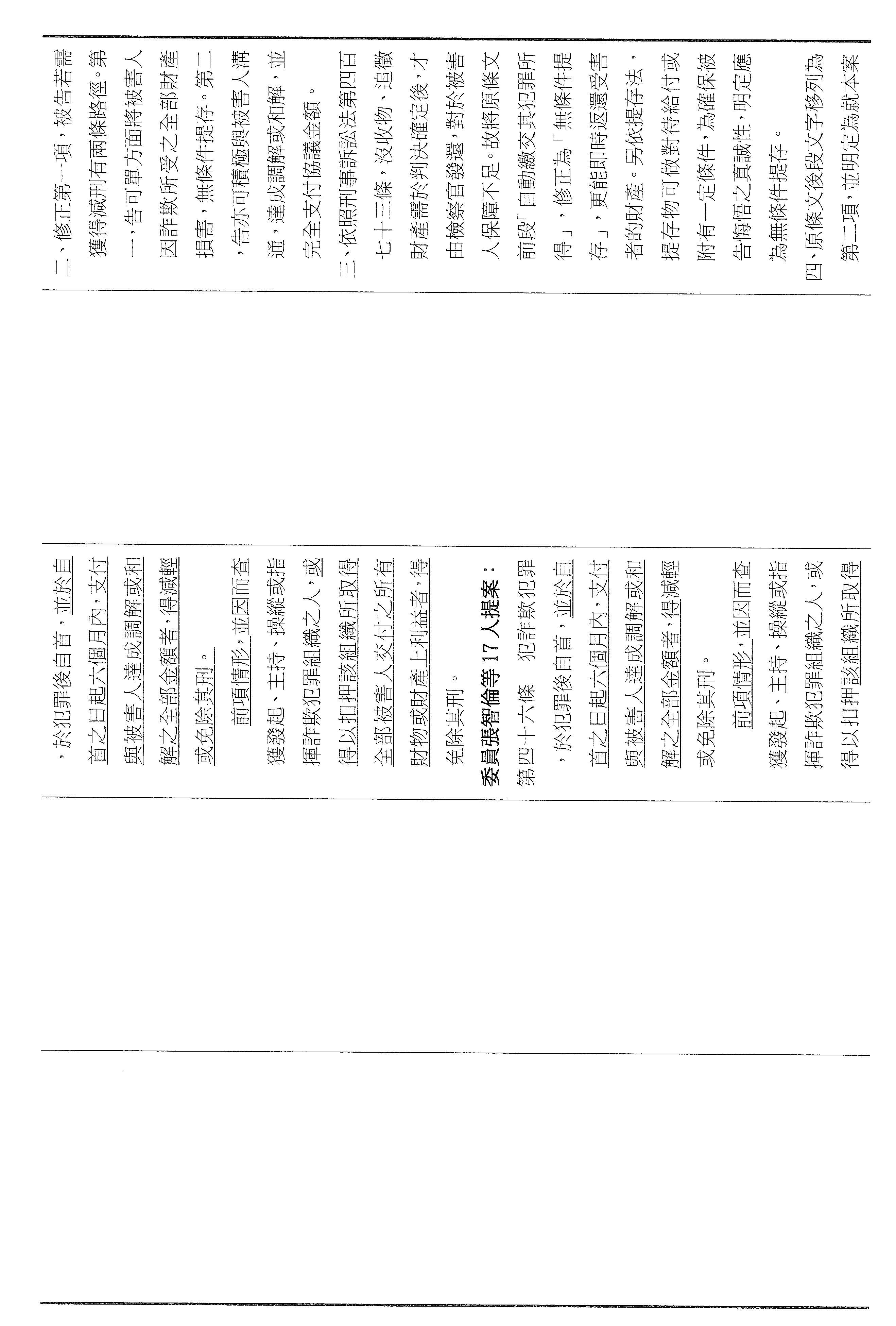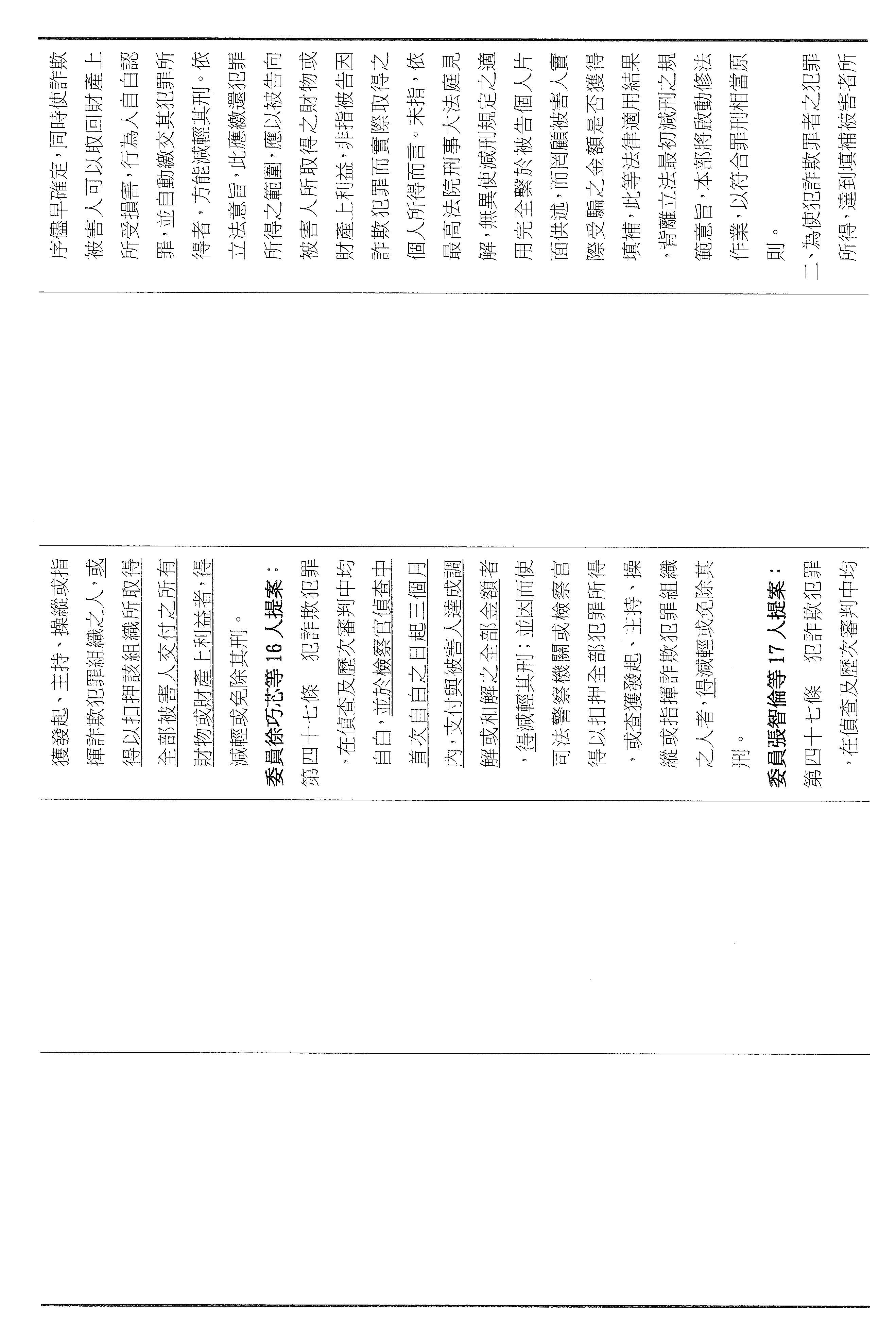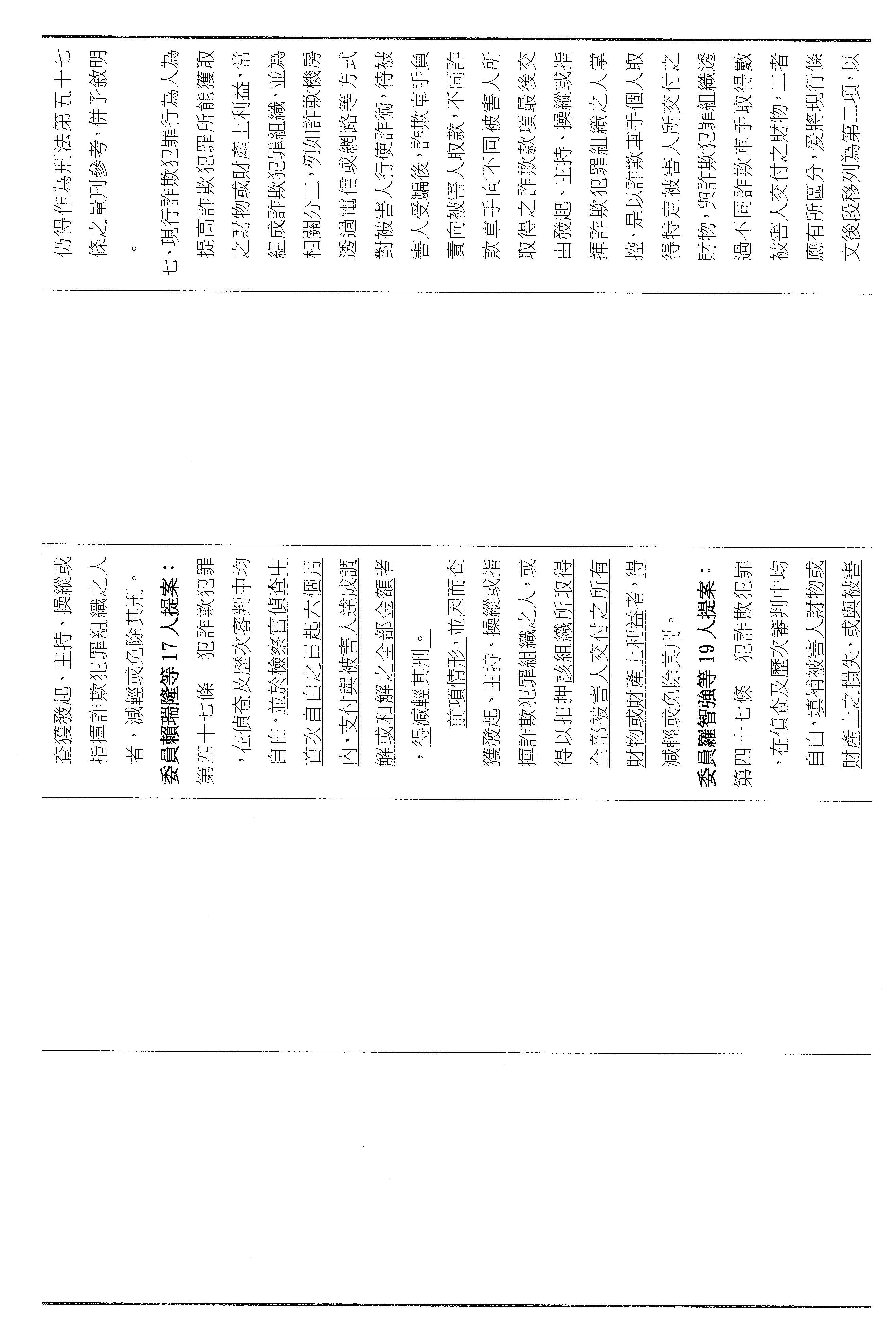 三十一、審查委員張智倫等17人擬具「詐欺犯罪危害防制條例第四十六條及第四十七條條文修正草案」案。