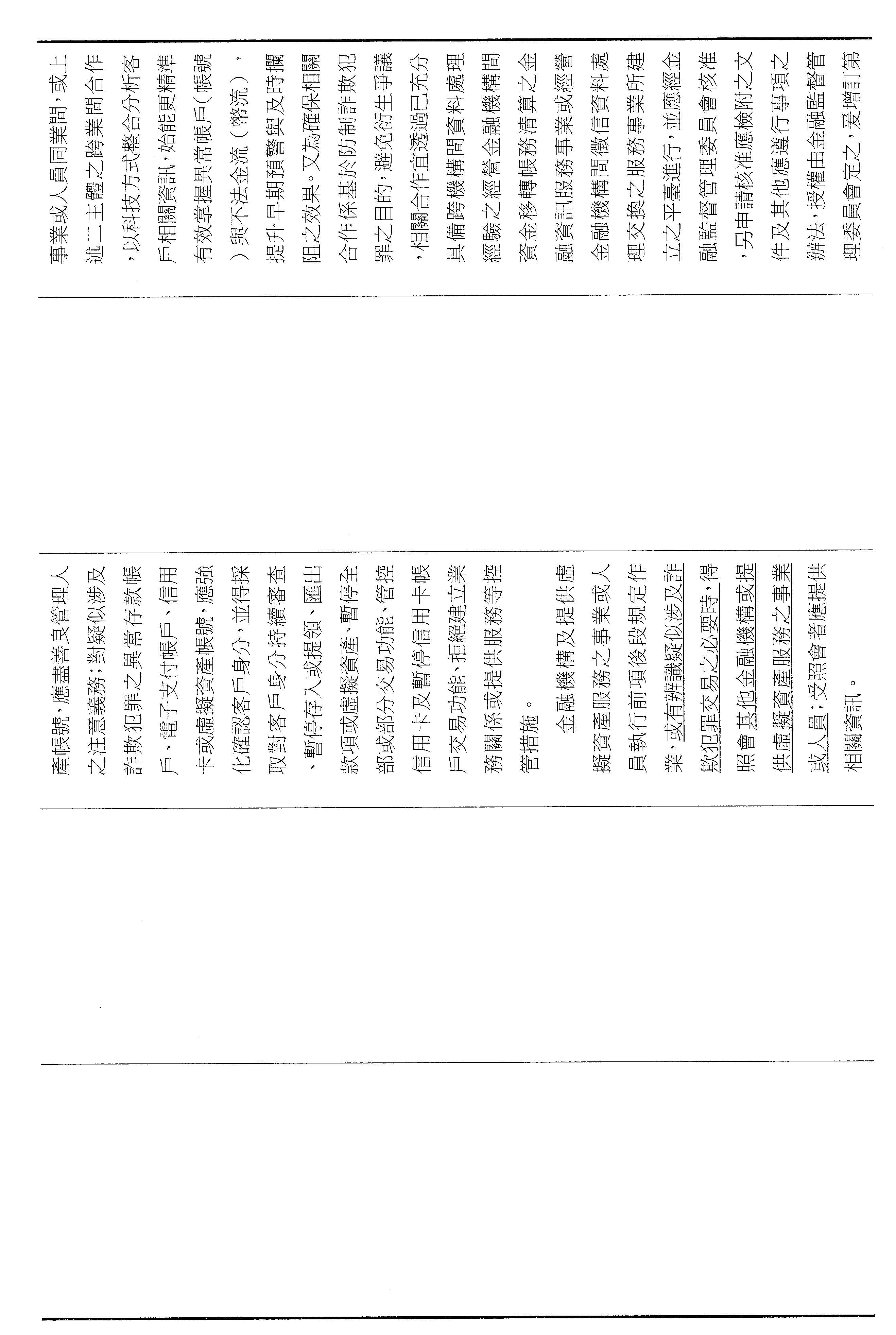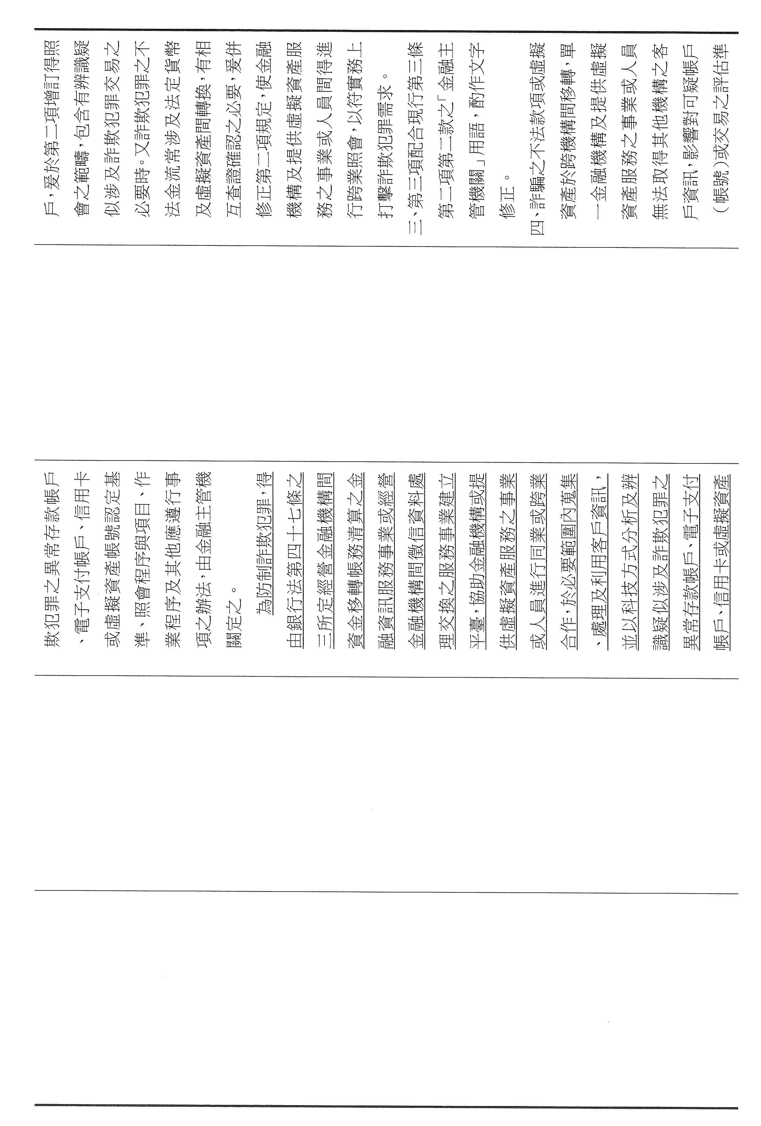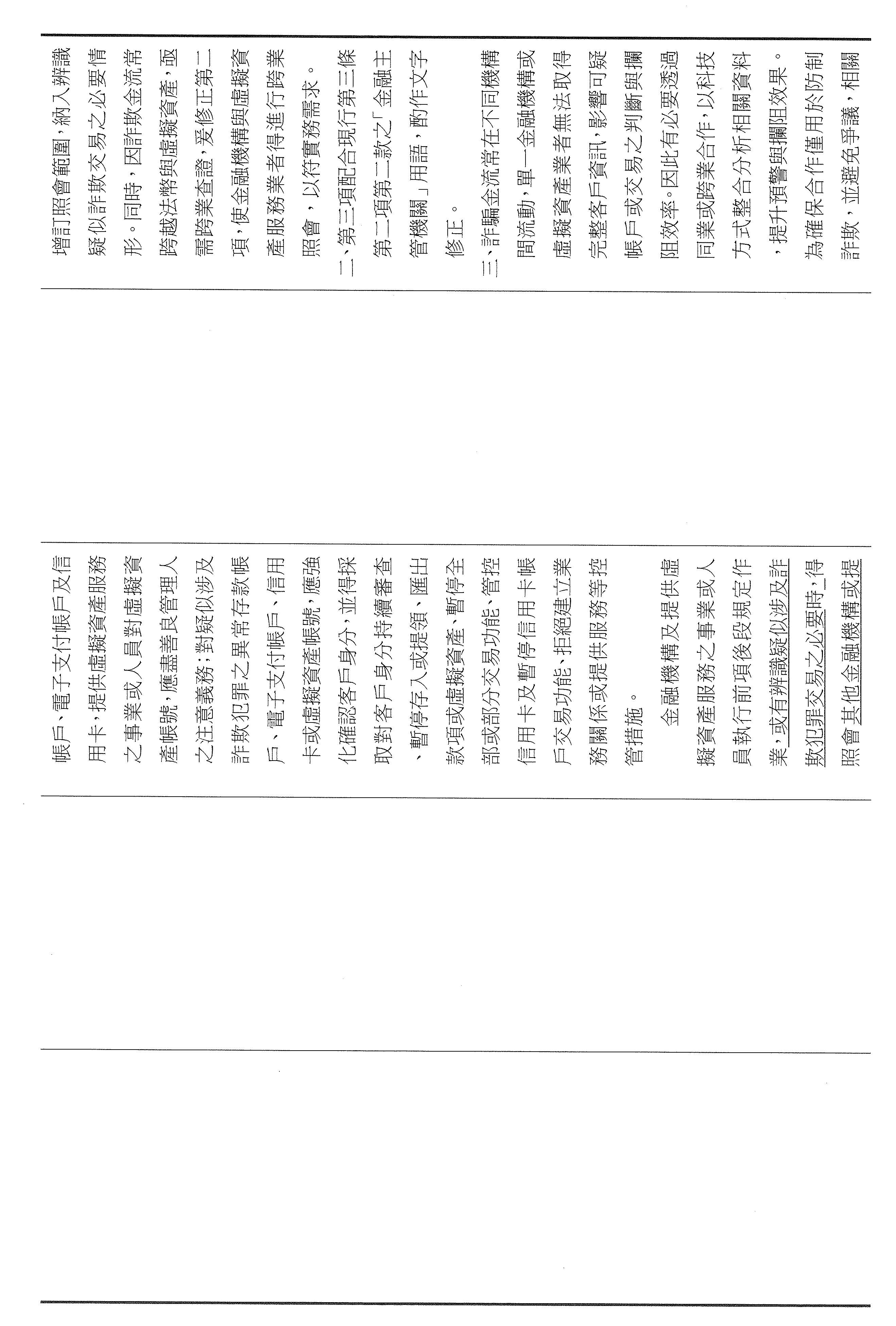 周主任秘書正山:剛才警政署長官的說明已經非常具體和清楚,我們金融機構大概就是配合警政署的警示帳戶制度,其實這個制度也運作一段時間了,現在有明確的法律授權,金融機構會更有依據來處理。