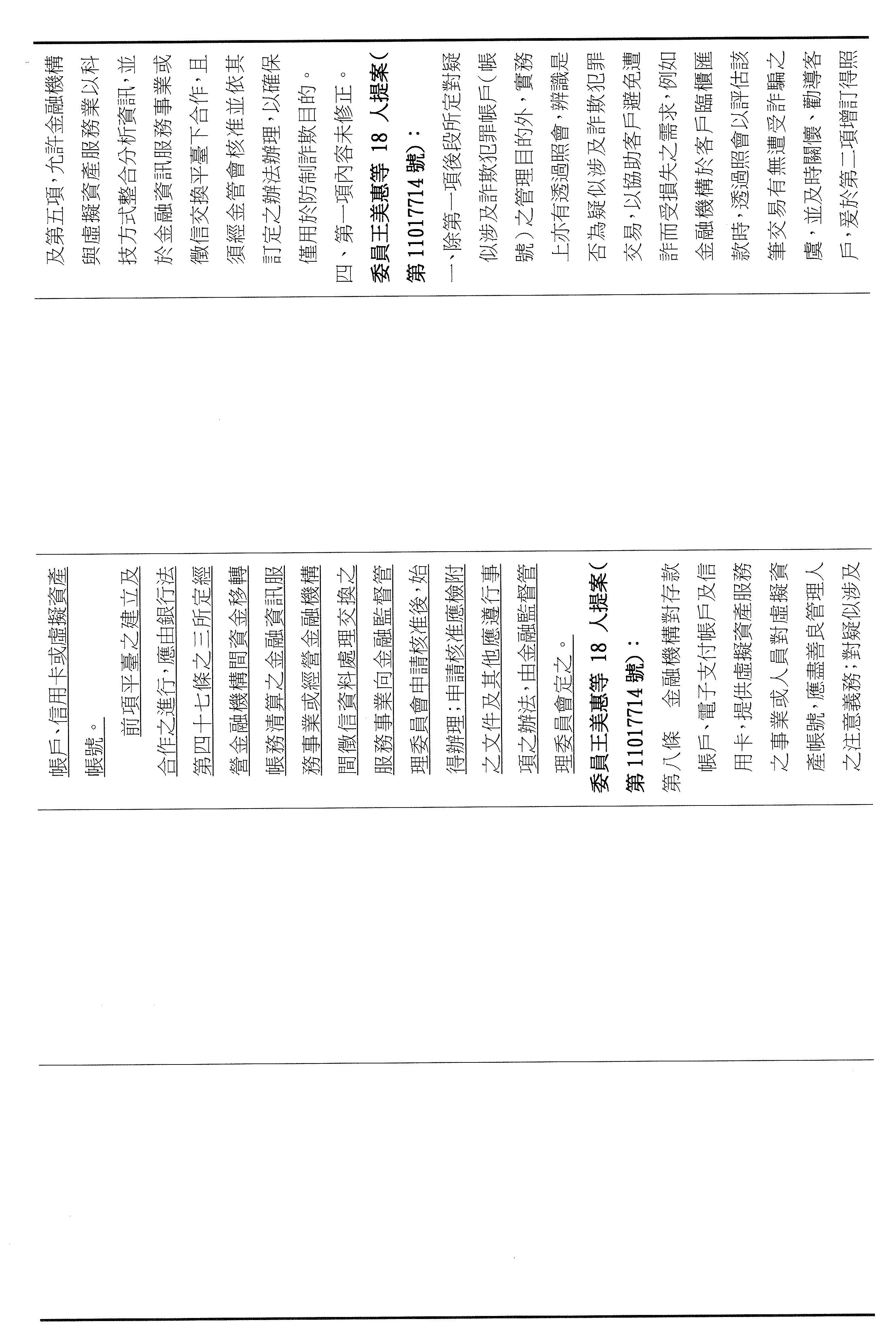 八、繼續審查委員王美惠等18人擬具「詐欺犯罪危害防制條例第四十七條條文修正草案」案。