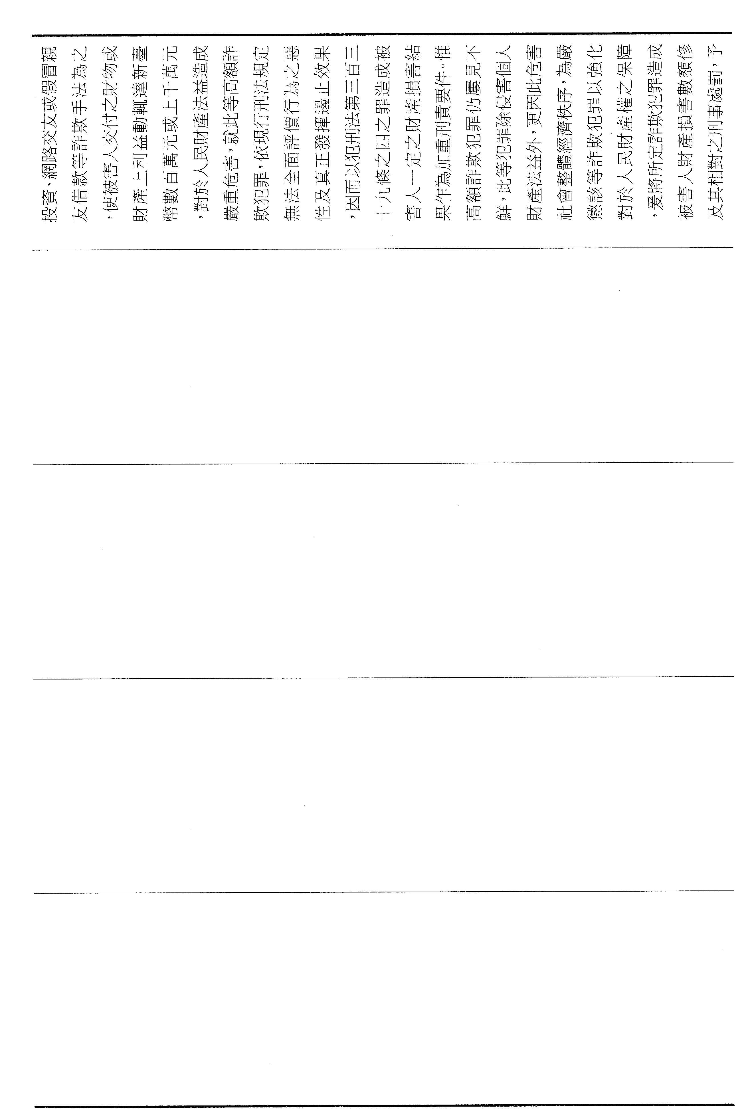 綜上所述,本次修法在回應社會對於打擊詐騙的期待以及期待嚴處犯罪與被害人的保護,懇請各位同仁支持。謝謝。