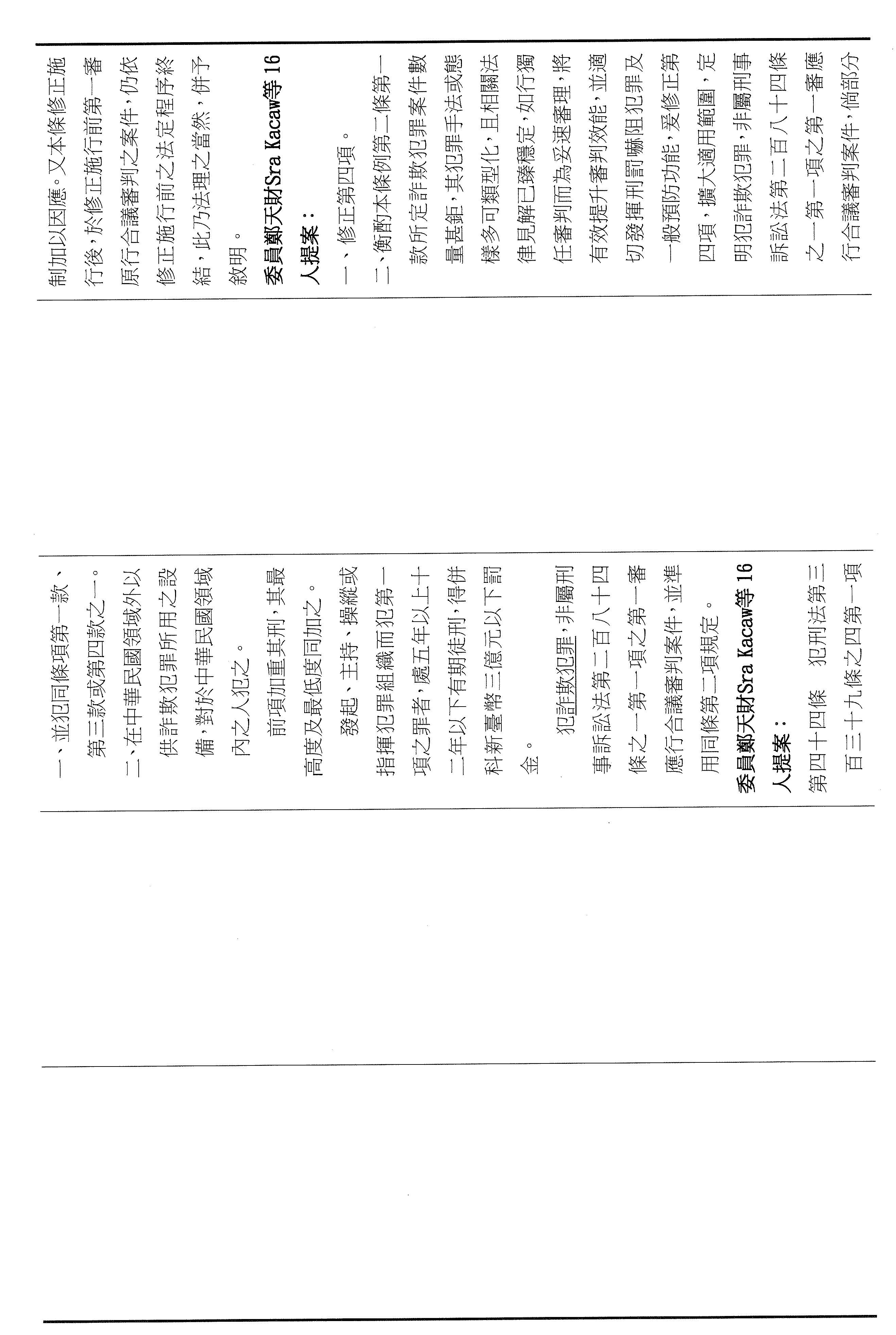三十三、審查委員鄭天財Sra Kacaw等16人擬具「詐欺犯罪危害防制條例部分條文修正草案」案。