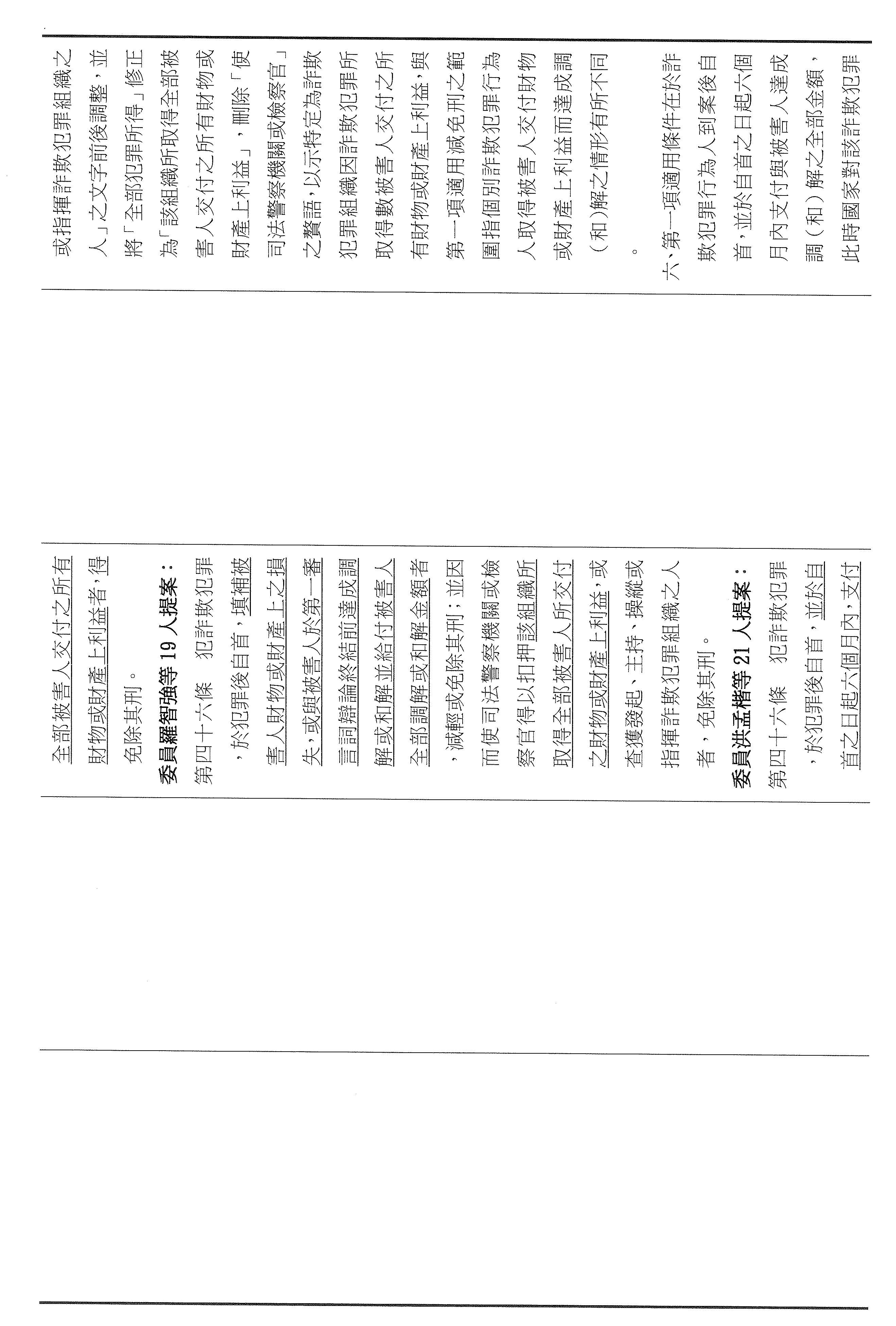 十九、繼續審查委員羅智強等19人擬具「詐欺犯罪危害防制條例第四十六條及第四十七條條文修正草案」案。