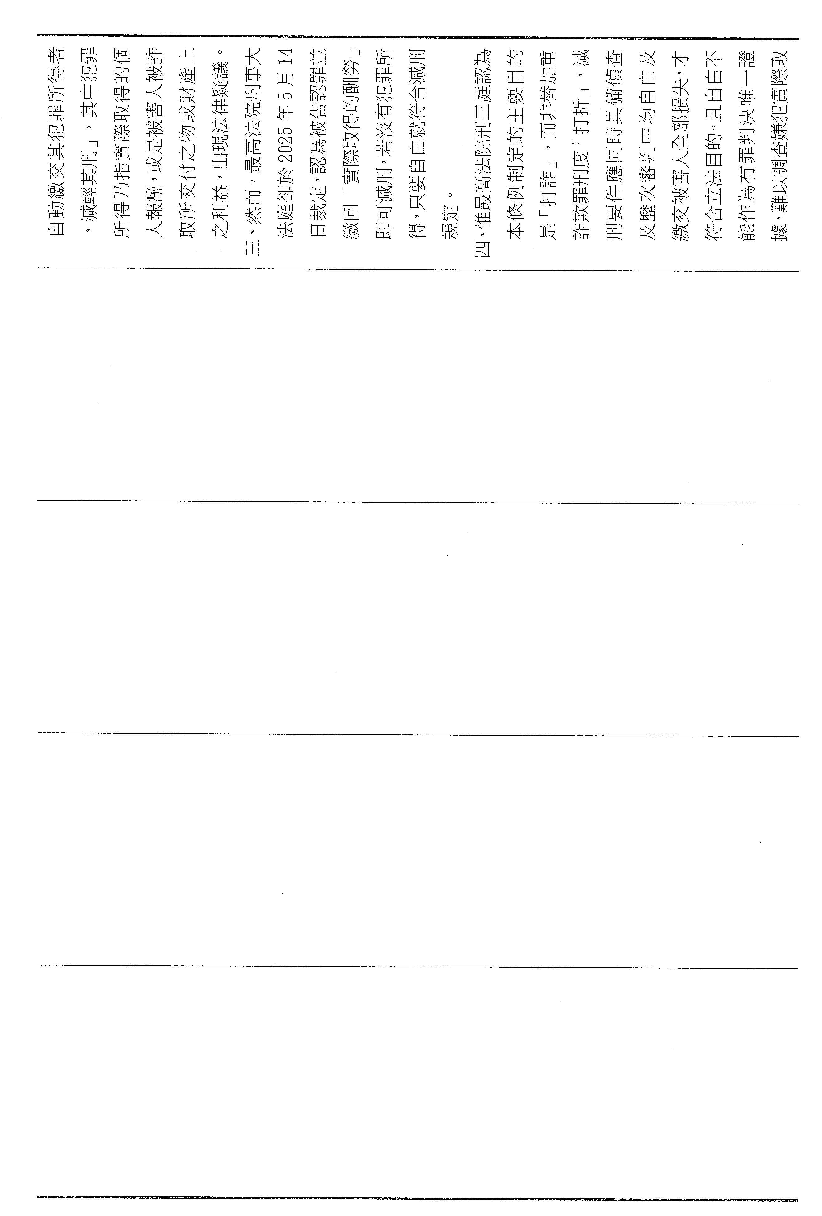 對於被害人而言,實質的賠償與財物的返還遠比單純的提高刑度更有意義,然而實務上卻出現與立法初衷相悖的落差。最高法院刑事大法庭113年度的裁定,以個人實際所得界定犯罪所得的範圍,導致未實際取得財物的車手或機房成員,只要自白便可以取得減刑或免刑的效果,卻未必能夠促成被害人的獲賠,反而可能讓詐騙集團用更細緻的分工來規避責任。當法律的誘因被扭轉,被害人的等待就會被拉長,正義也會被稀釋,只有痛苦會不斷地累積。