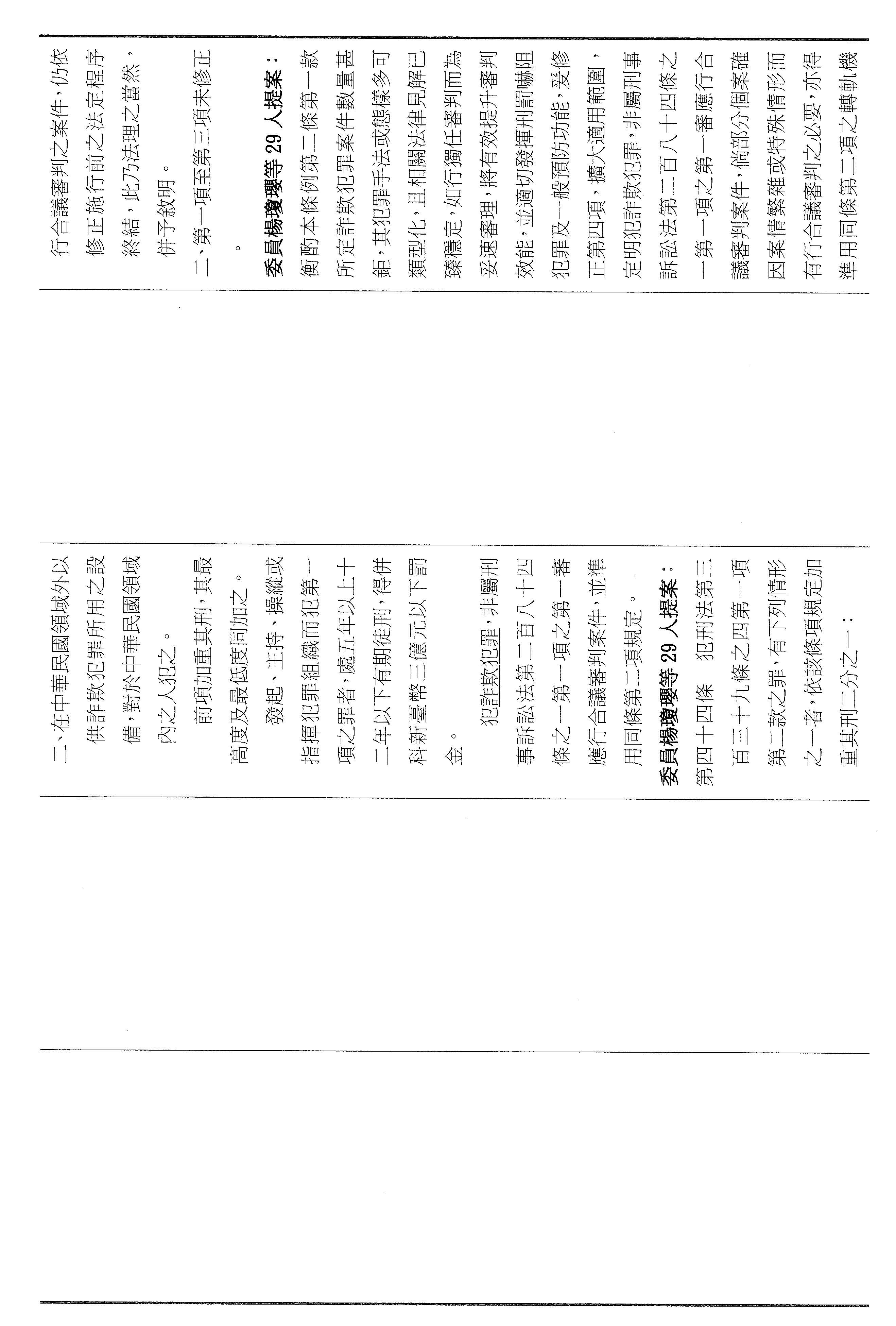 二十九、審查委員許宇甄等19人擬具「詐欺犯罪危害防制條例第四十六條及第四十七條條文修正草案」案。