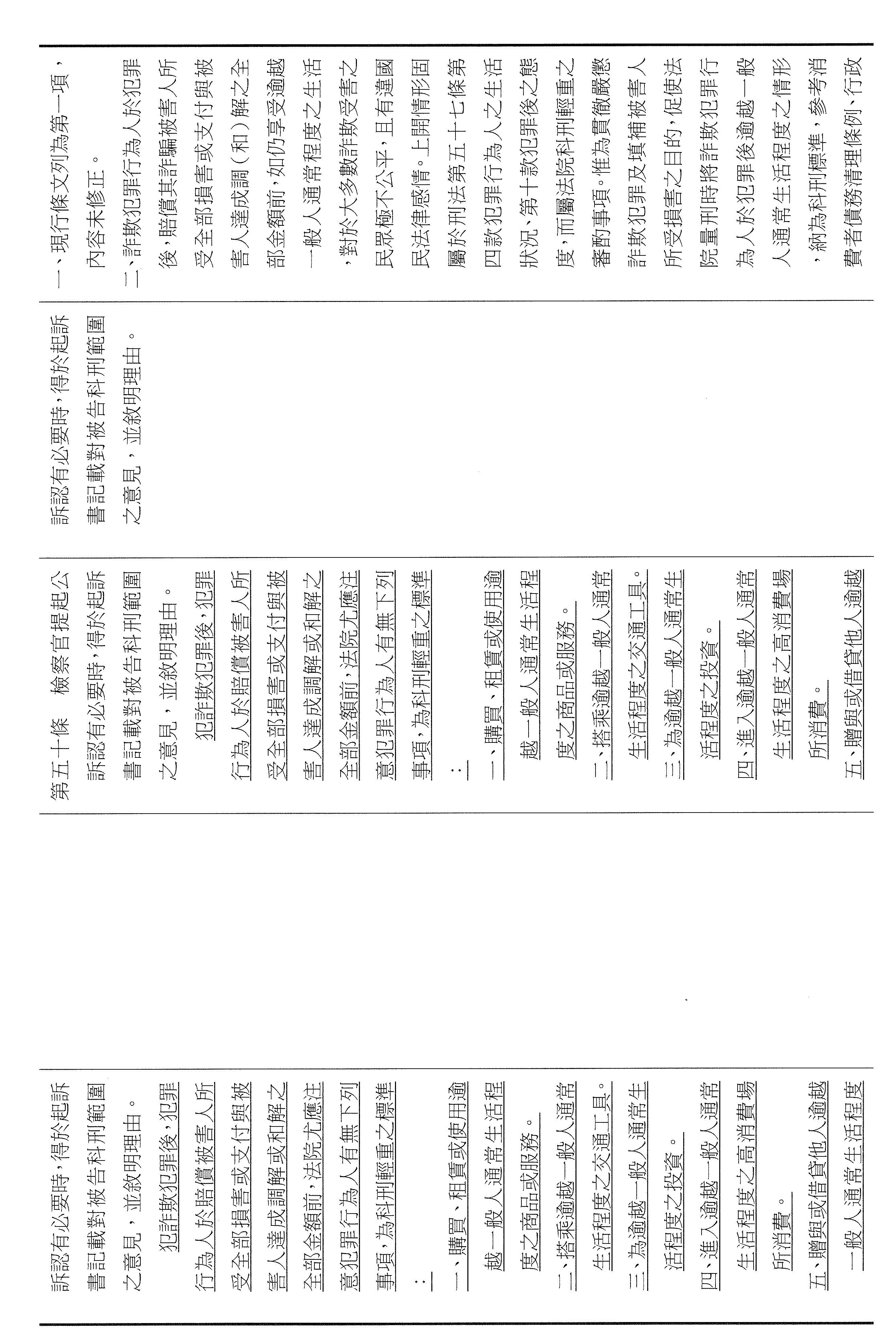 另外,我們也擔心未來如果降到50萬的話,大量的強制辯護案件可能會拖延法院訴訟的進行,會造成沒辦法速審速結,也沒辦法即時保護被害人。再來,如果50萬元以上一律都處三年以上,我們認為這個部分恐怕不符合比例原則或憲法的罪刑相當原則,這在法務部的報告裡面也有提到,所以我們希望能夠尊重行政院的版本,希望委員能夠支持。