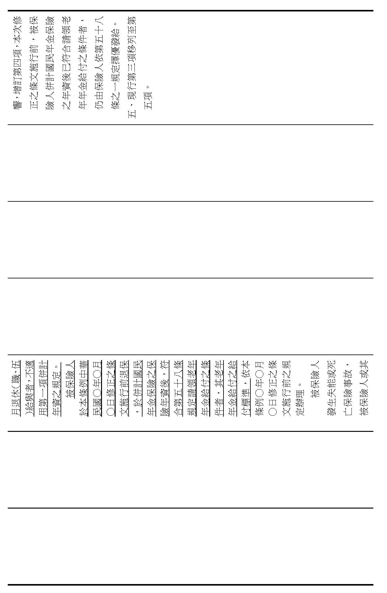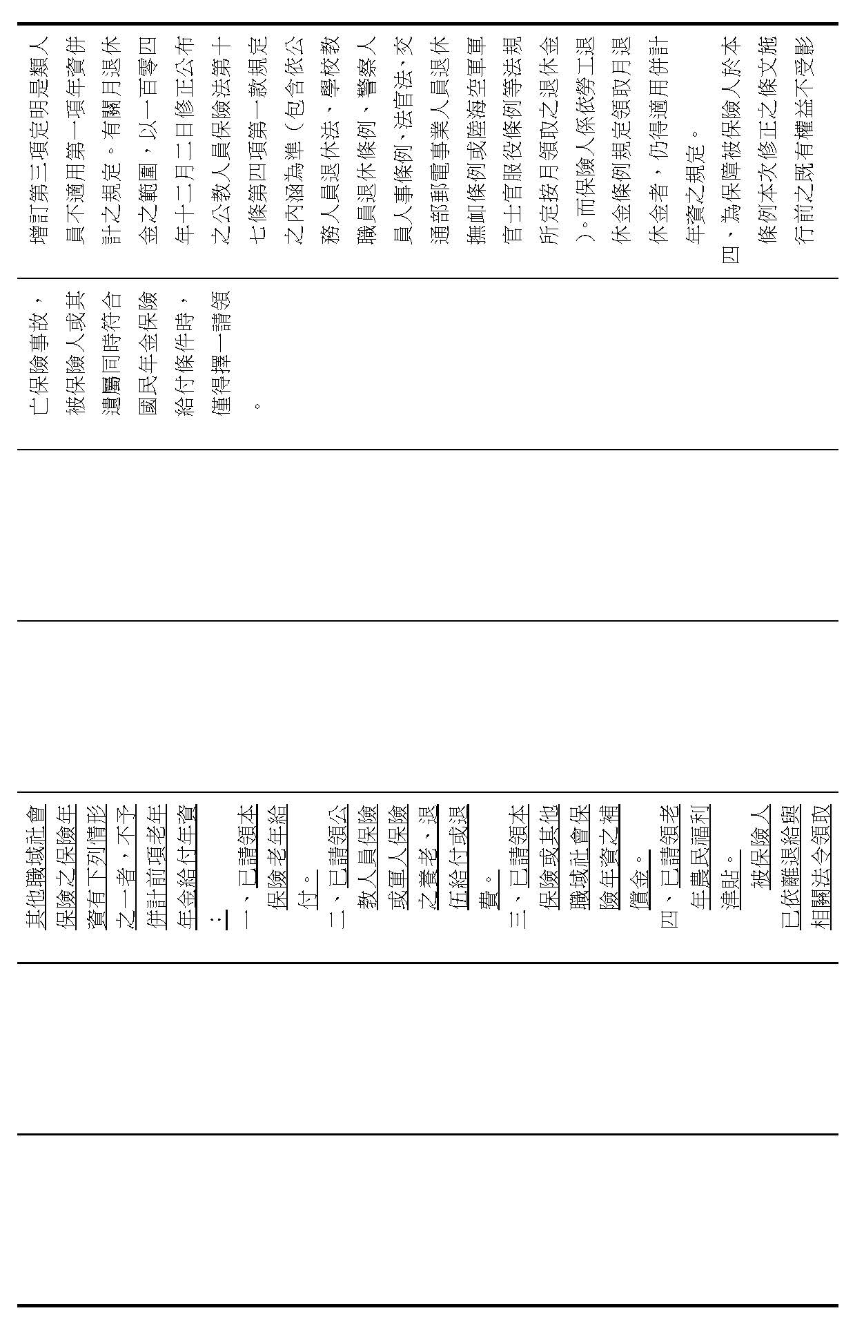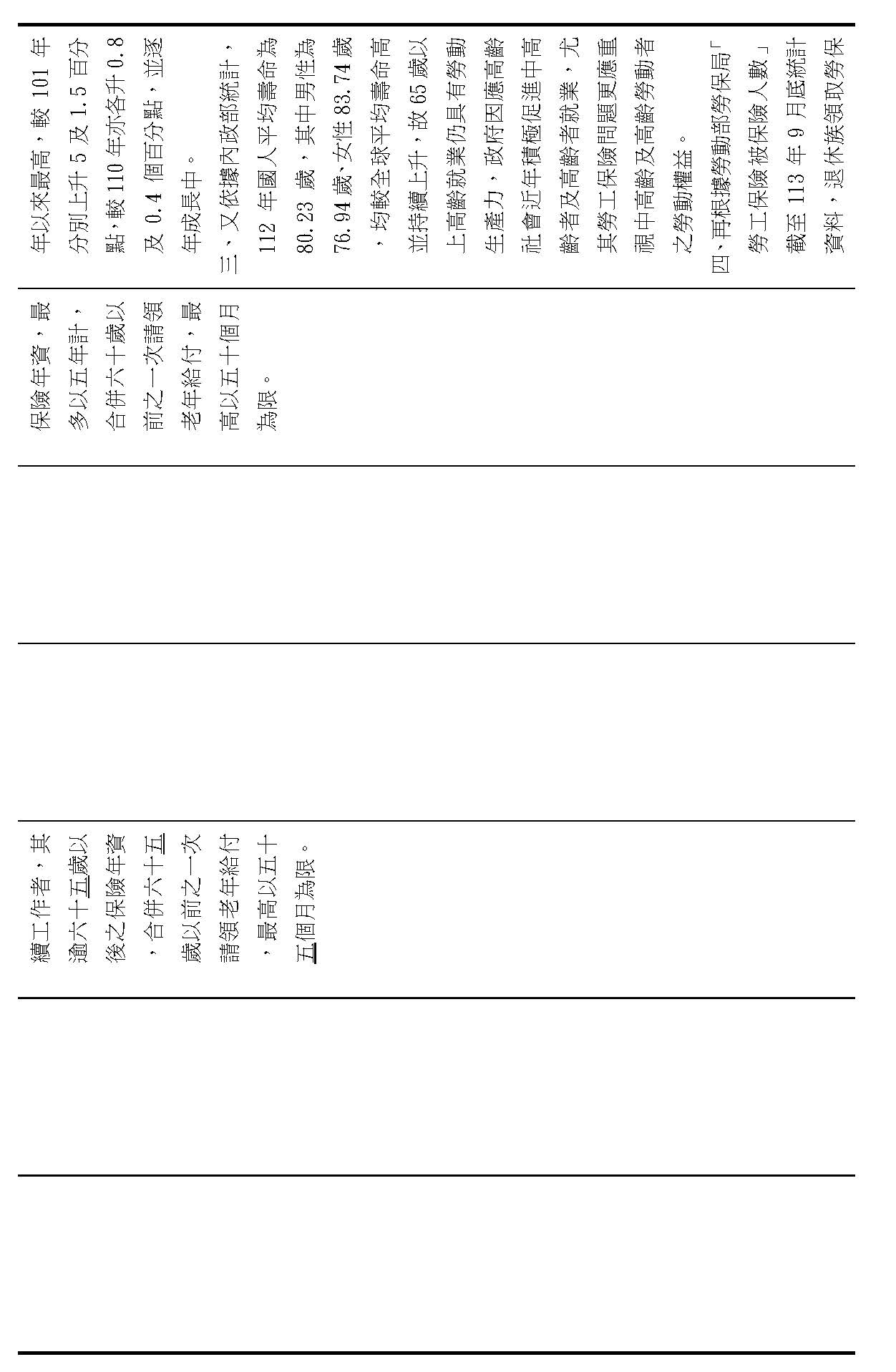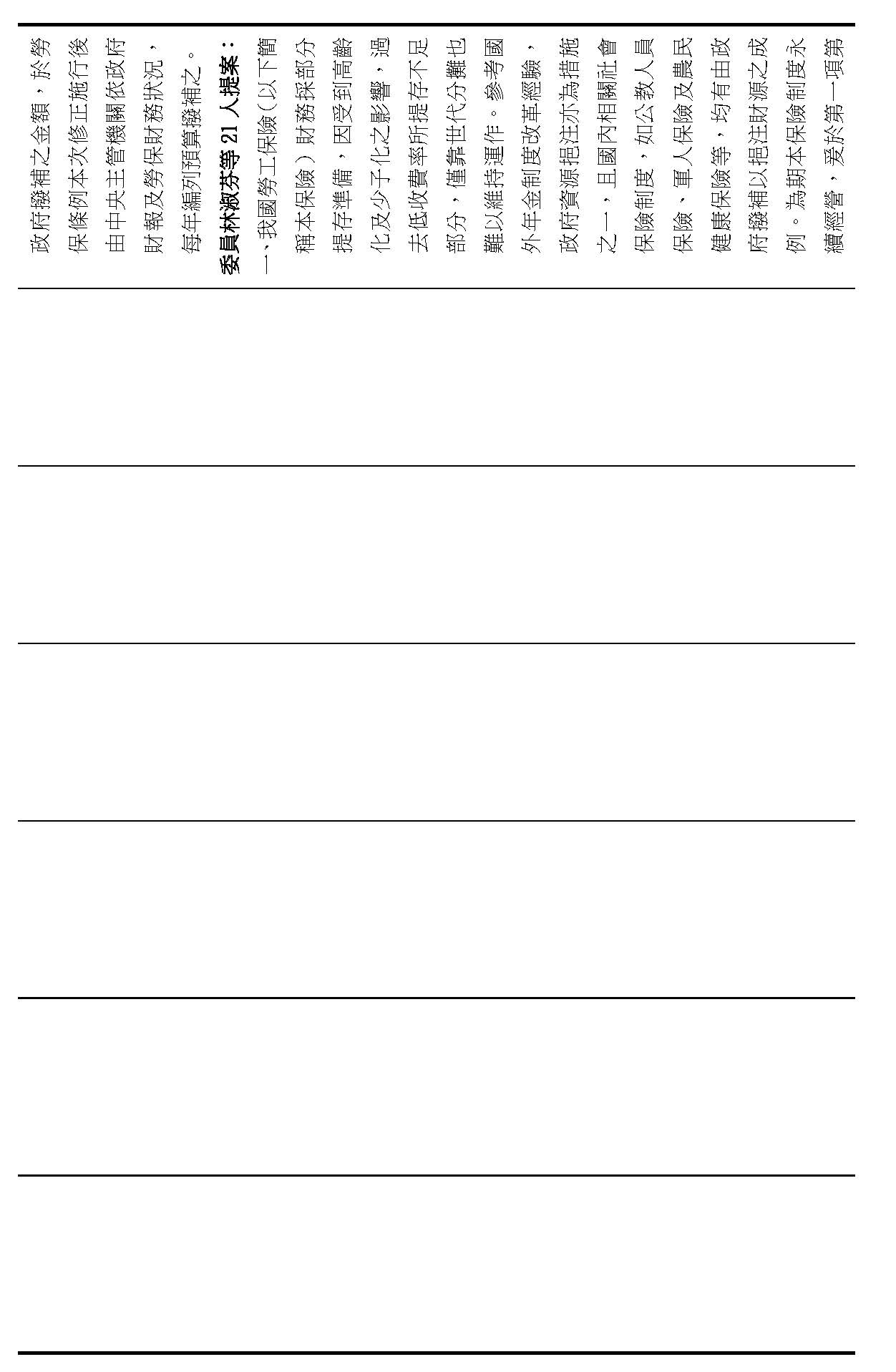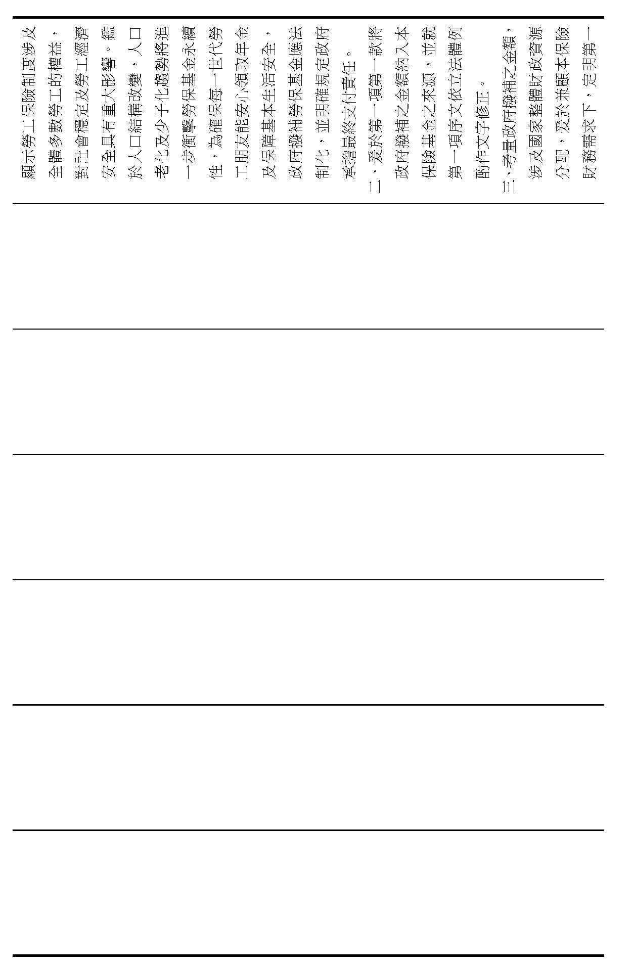 王委員正旭:對,我想委員的想法是很希望能夠對於我們的這些勞工朋友有更好的保障,不過因為提案會涉及到擴大年金整個請領的對象,而且這個請領條件也都有適度的處理,可是在給付標準的修正等等,這是屬於制度上的重大變革,所以會涉及到各個社會保險年金制度的調合、整合跟財務,所以基於政府做整體政策通盤規劃的過程裡面,這部分是不是可以用其他該有的一些處理方式,而不是在這邊做調整,以上跟大家說明,謝謝。