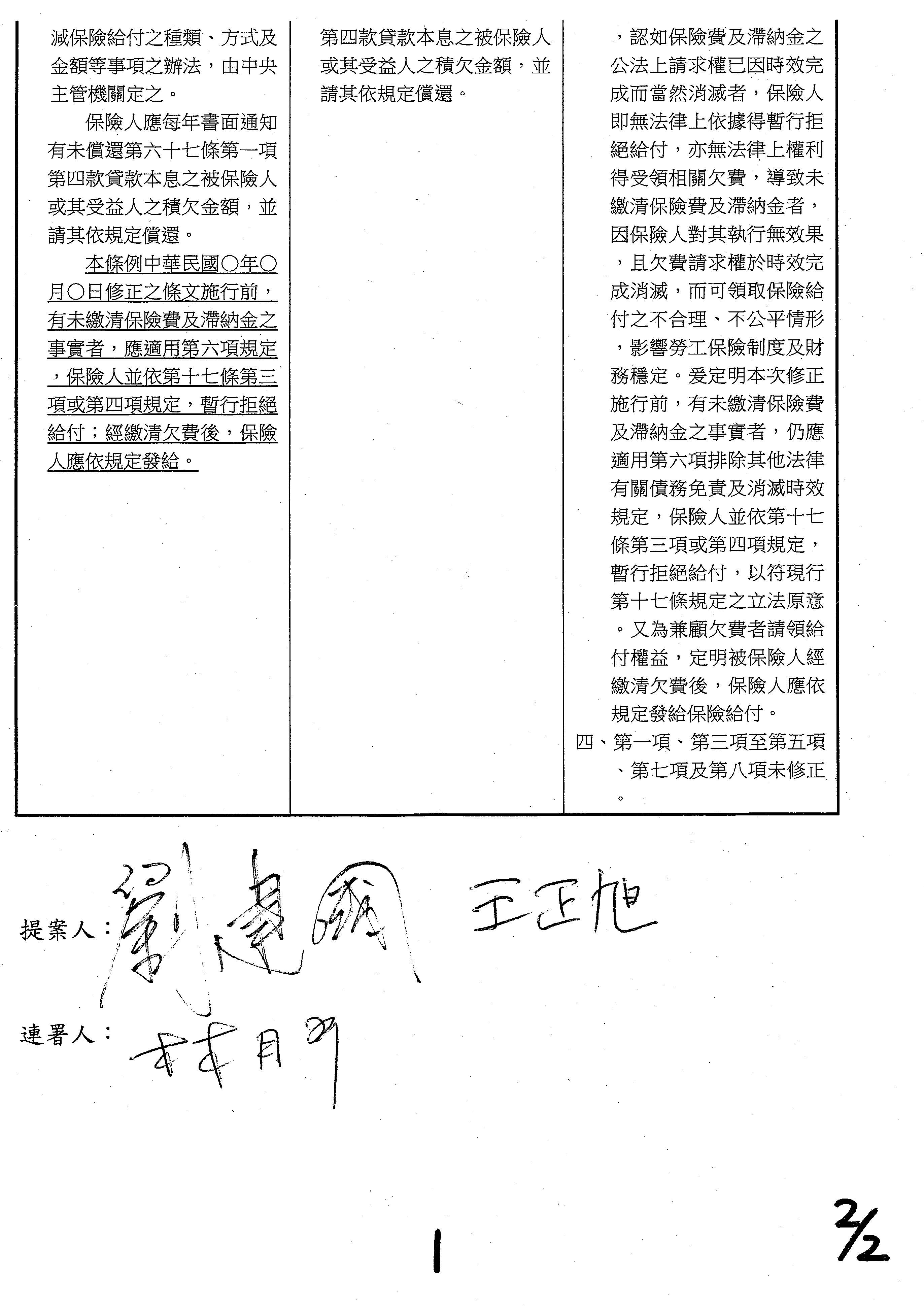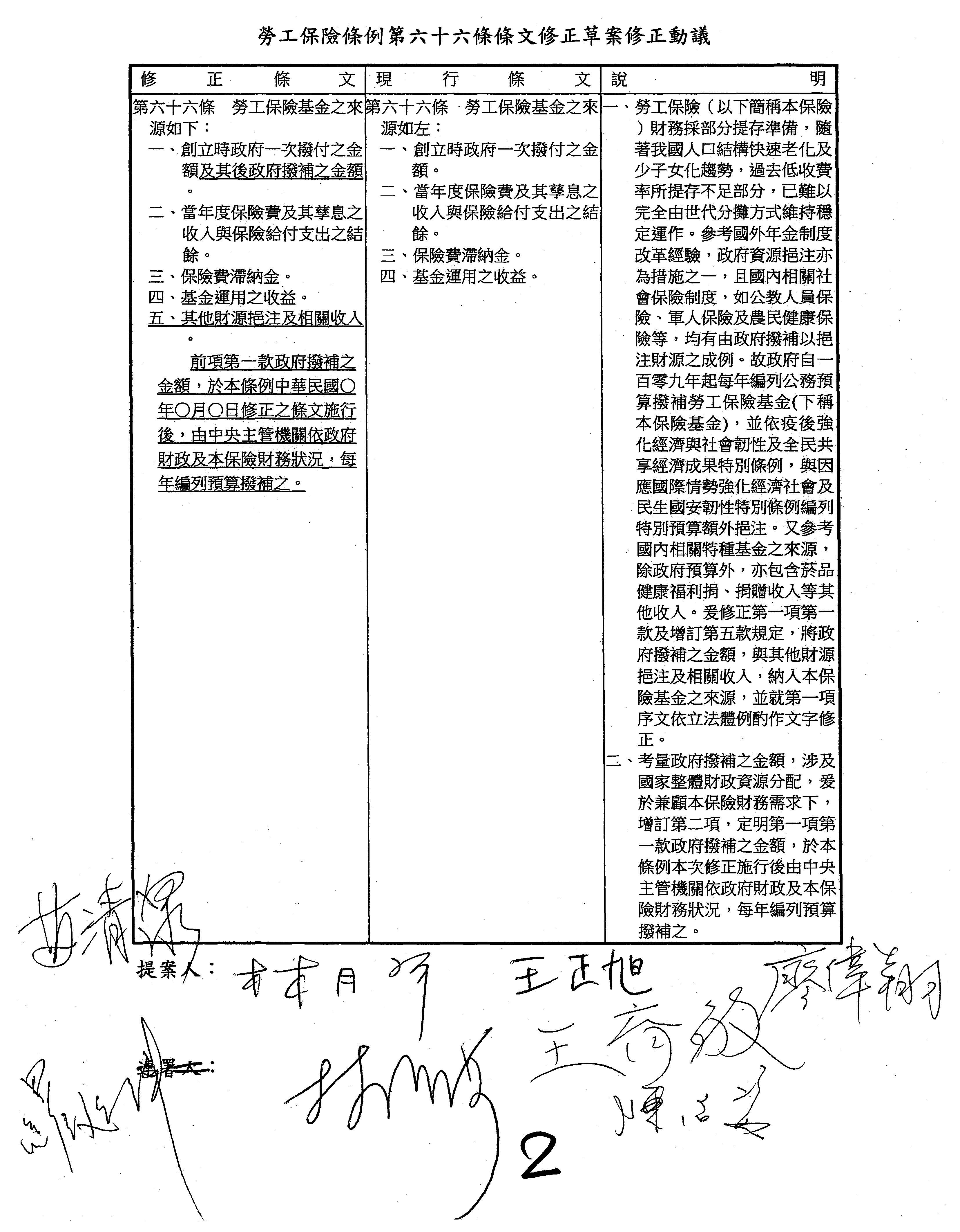 (六)委員王正旭等20人擬具「勞工保險條例第六十六條及第六十九條條文修正草案」案。