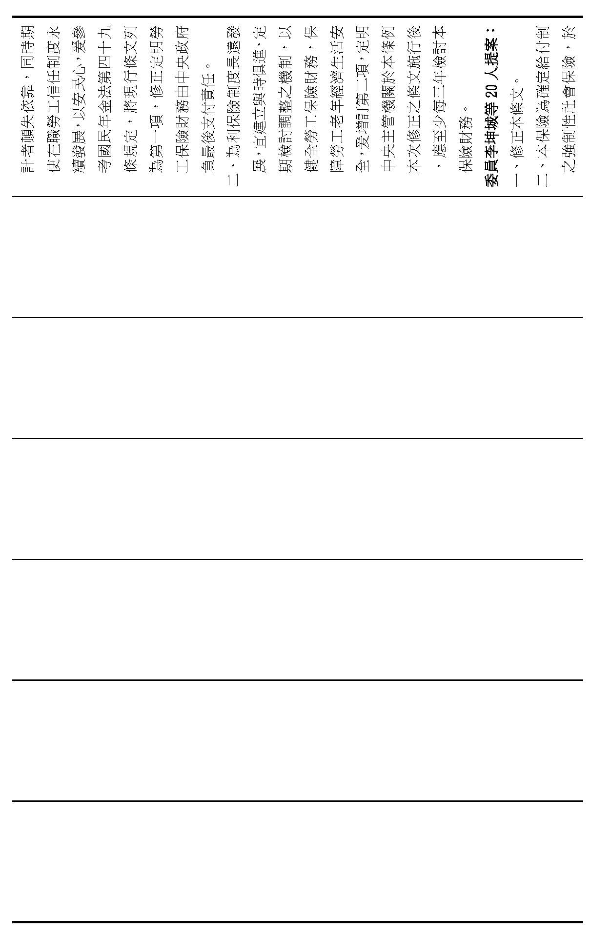 (十一)委員陳俊宇等20人擬具「勞工保險條例第六十六條及第六十九條條文修正草案」案。