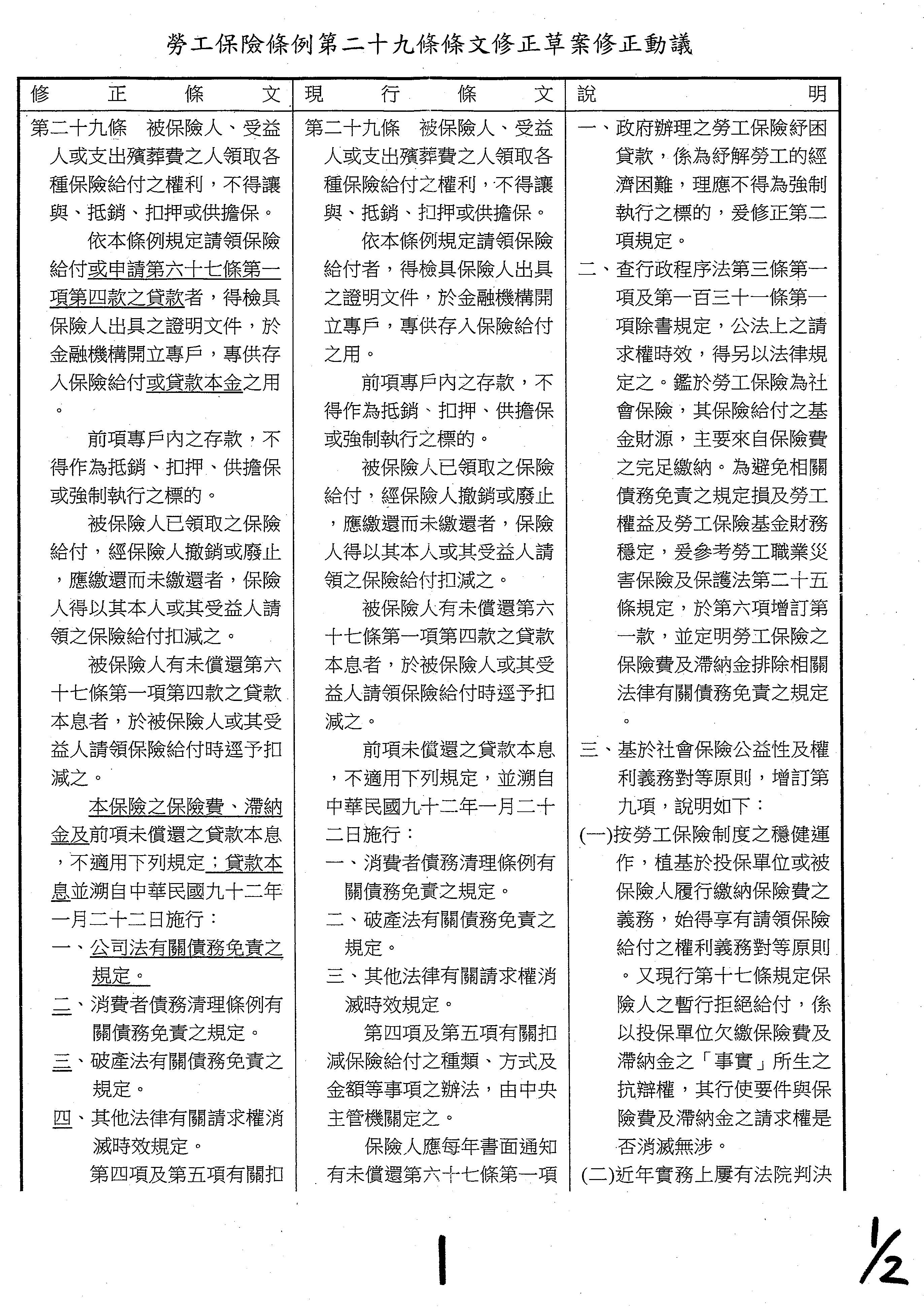(三)委員林國成等32人擬具「勞工保險條例第六十六條及第六十九條條文修正草案」案。