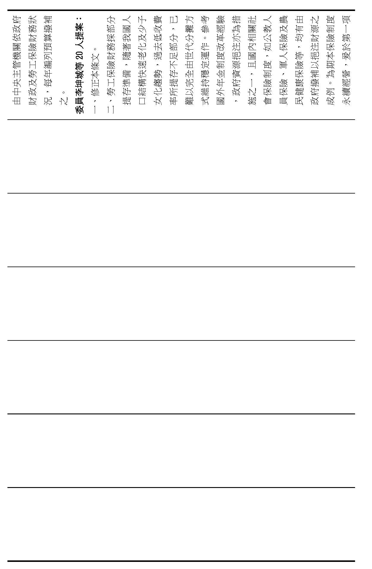 (四)委員王育敏等20人擬具「勞工保險條例第六十六條及第六十九條條文修正草案」案。