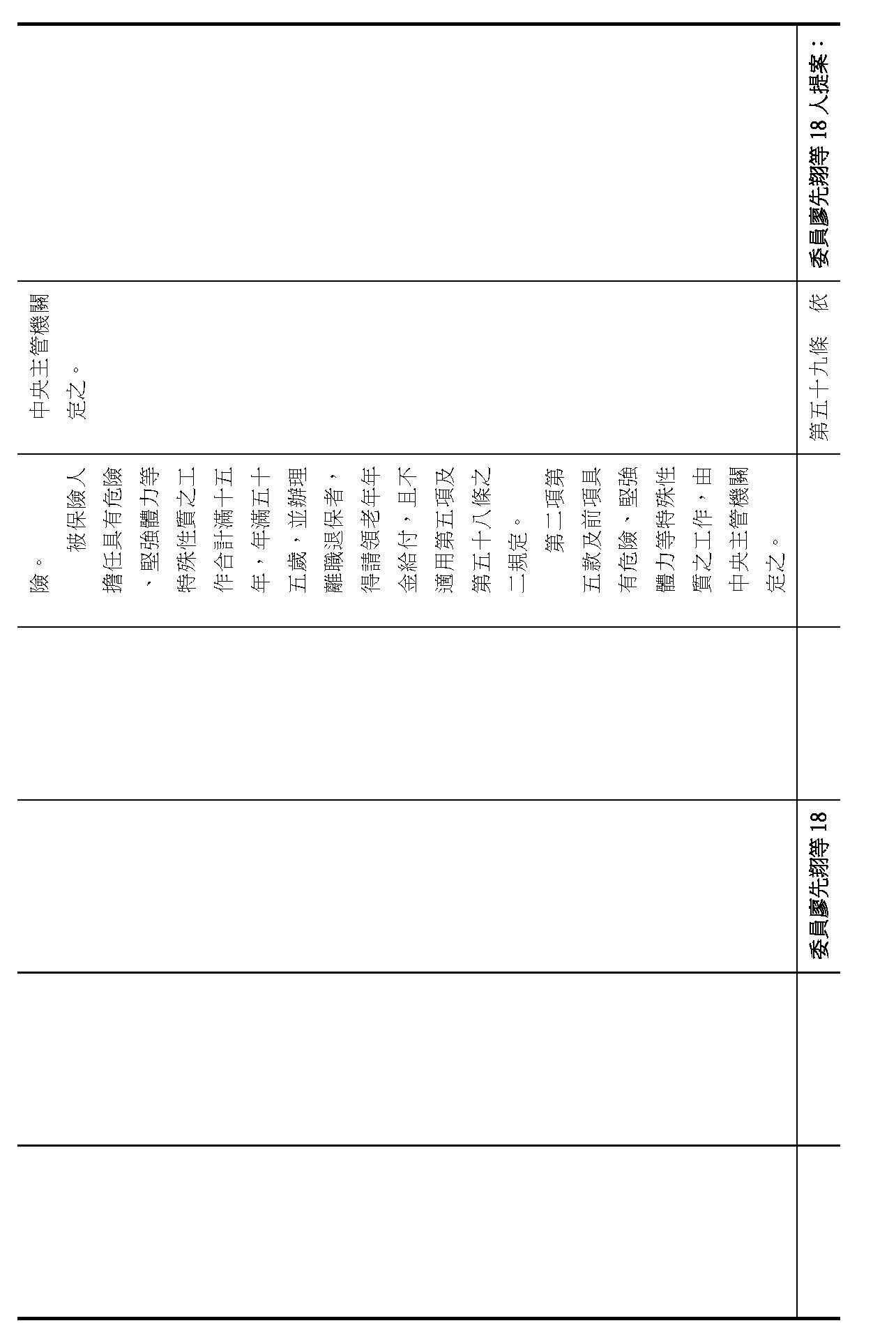 (十八)委員馬文君等18人擬具「勞工保險條例第六十六條及第六十九條條文修正草案」案。
