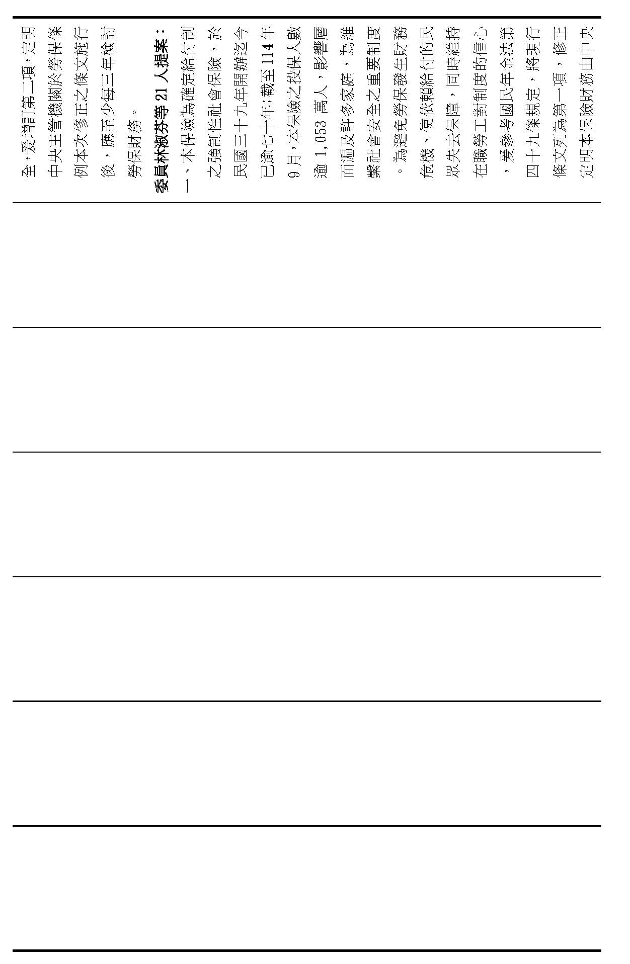 (二十一)委員郭國文等18人擬具「勞工保險條例第六十六條及第六十九條條文修正草案」案。
